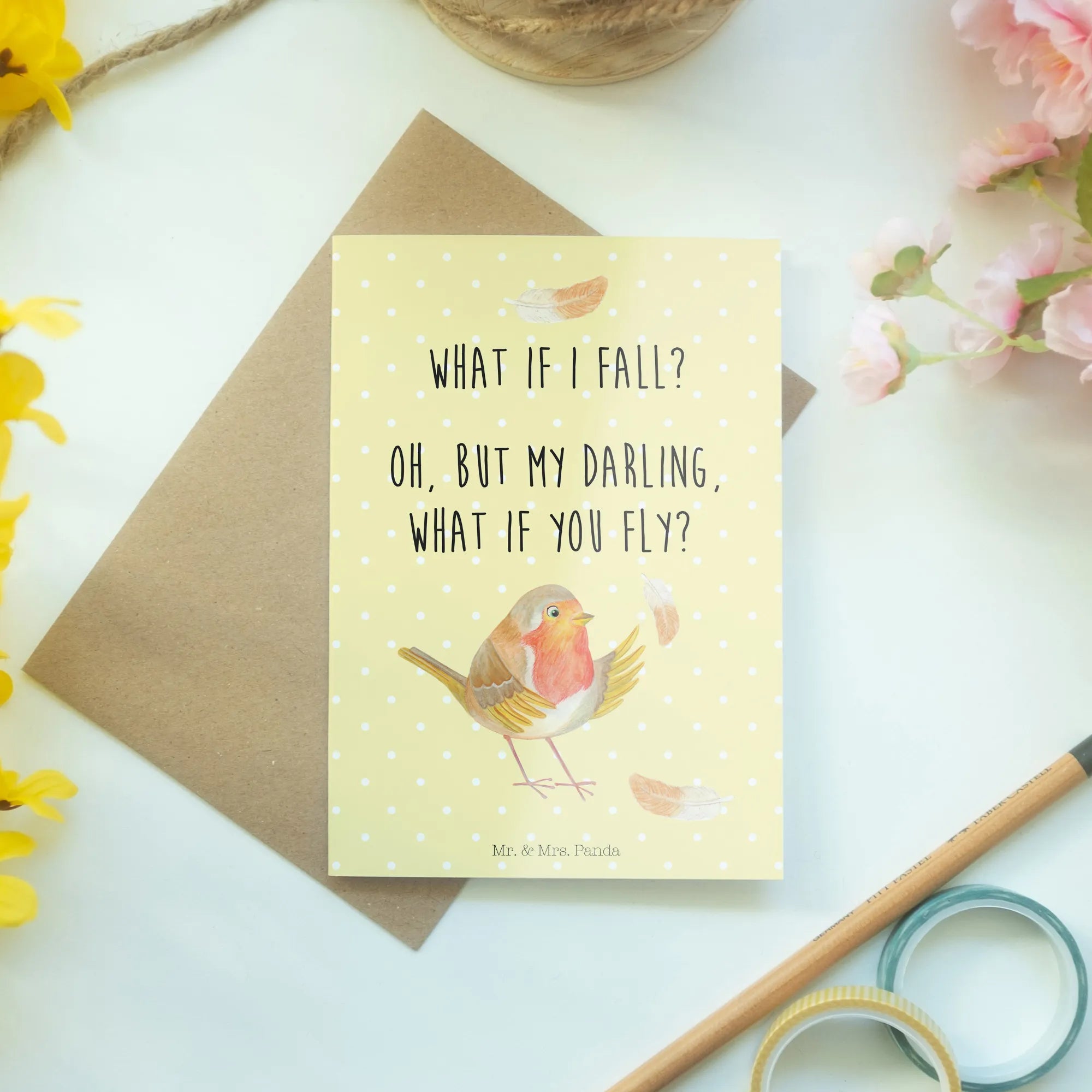 Kartka okolicznościowa rudzik Pióra - z napisem - Pastelowy żółty