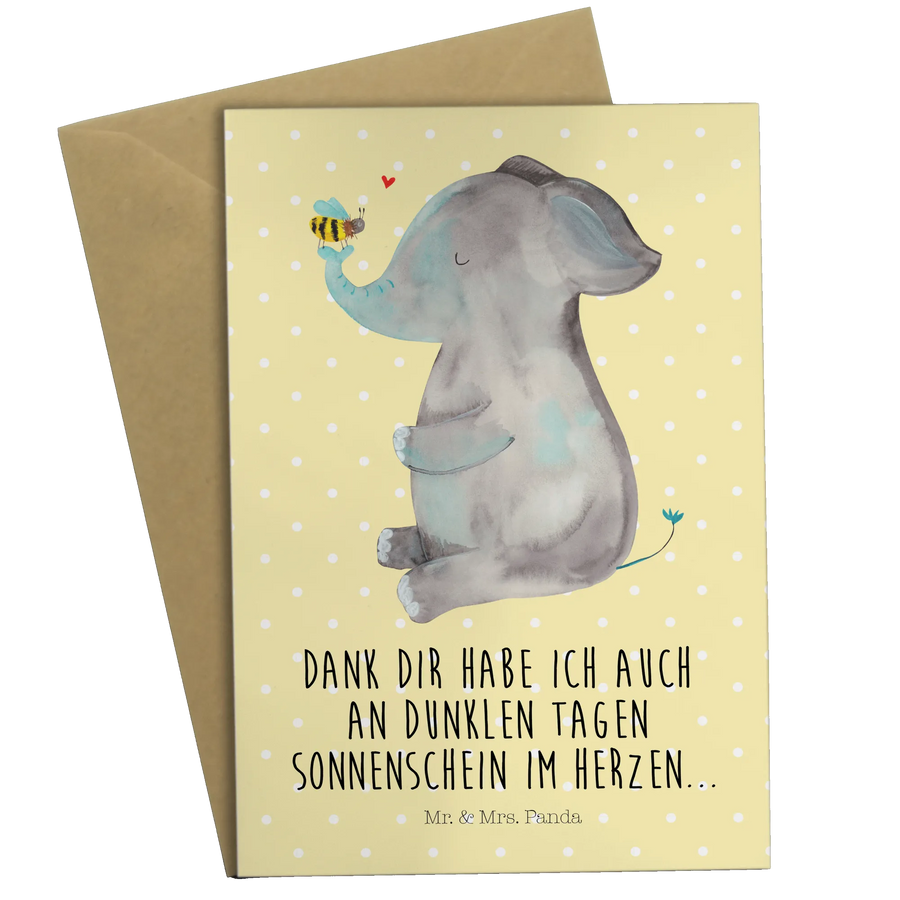 Kartka okolicznościowa słoń pszczoła - z napisem - Pastelowy żółty