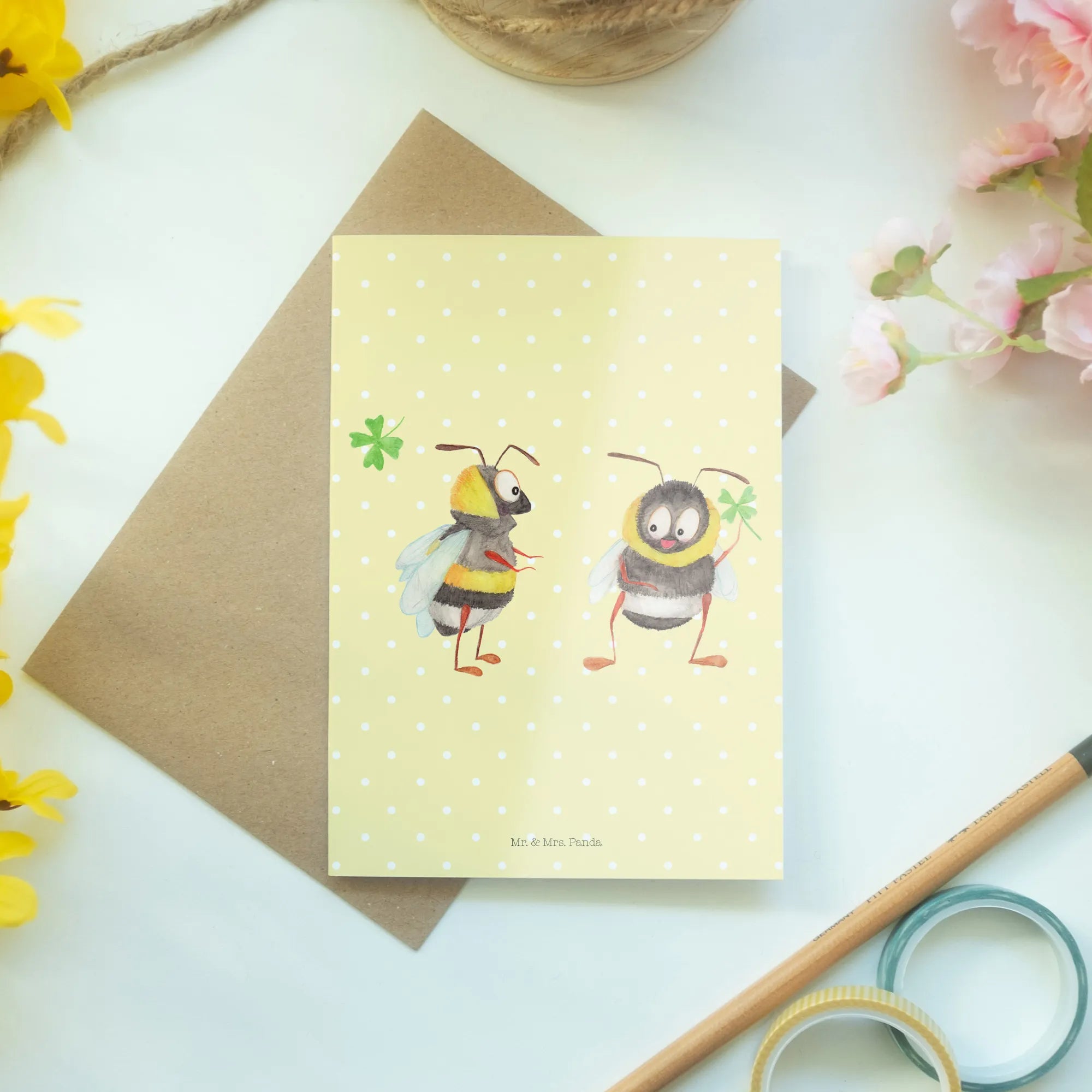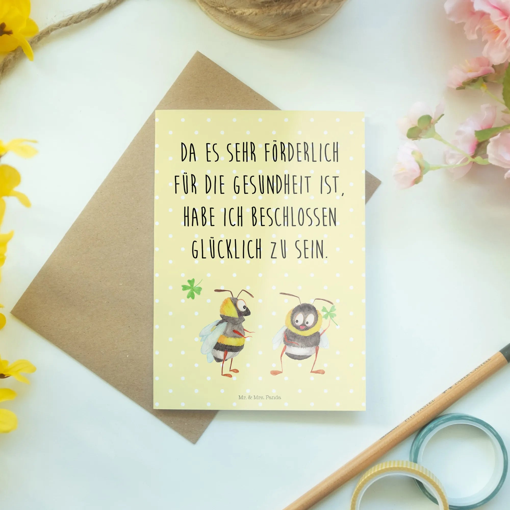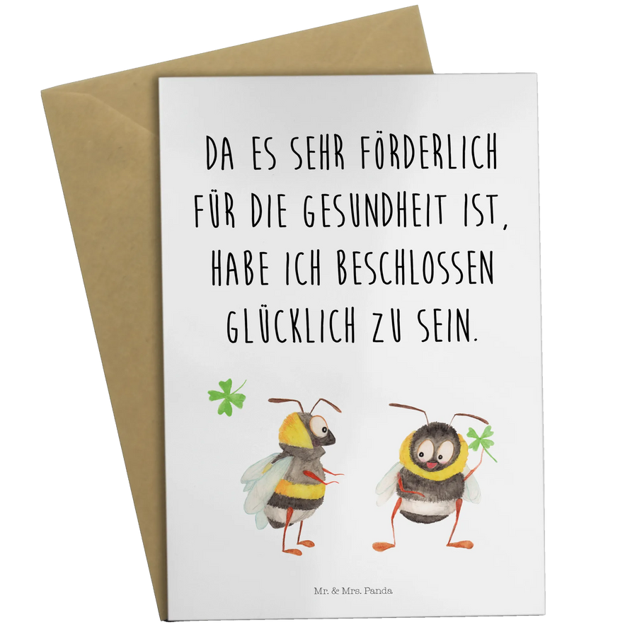 Kartka okolicznościowa Trzmiele koniczyna - z napisem - biały