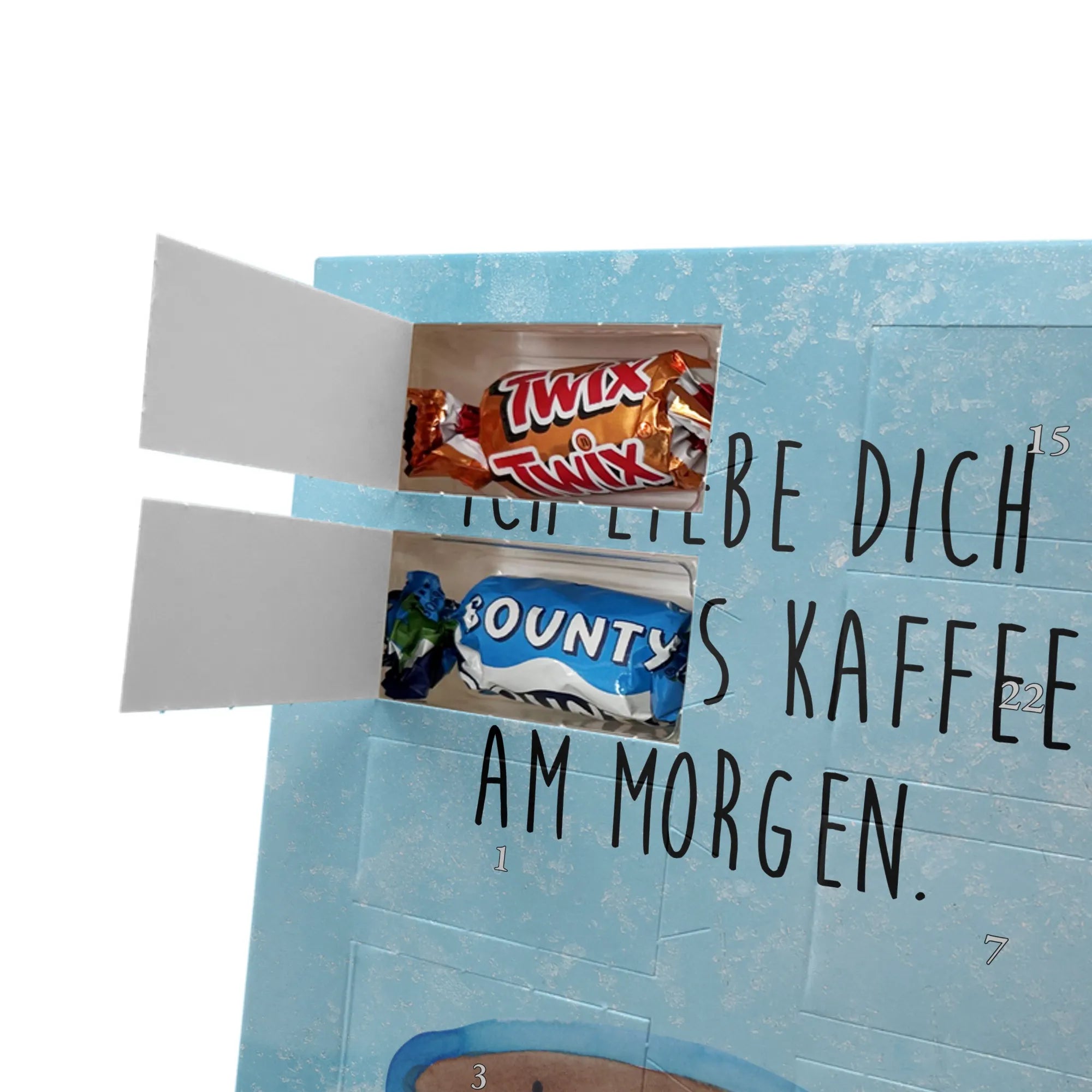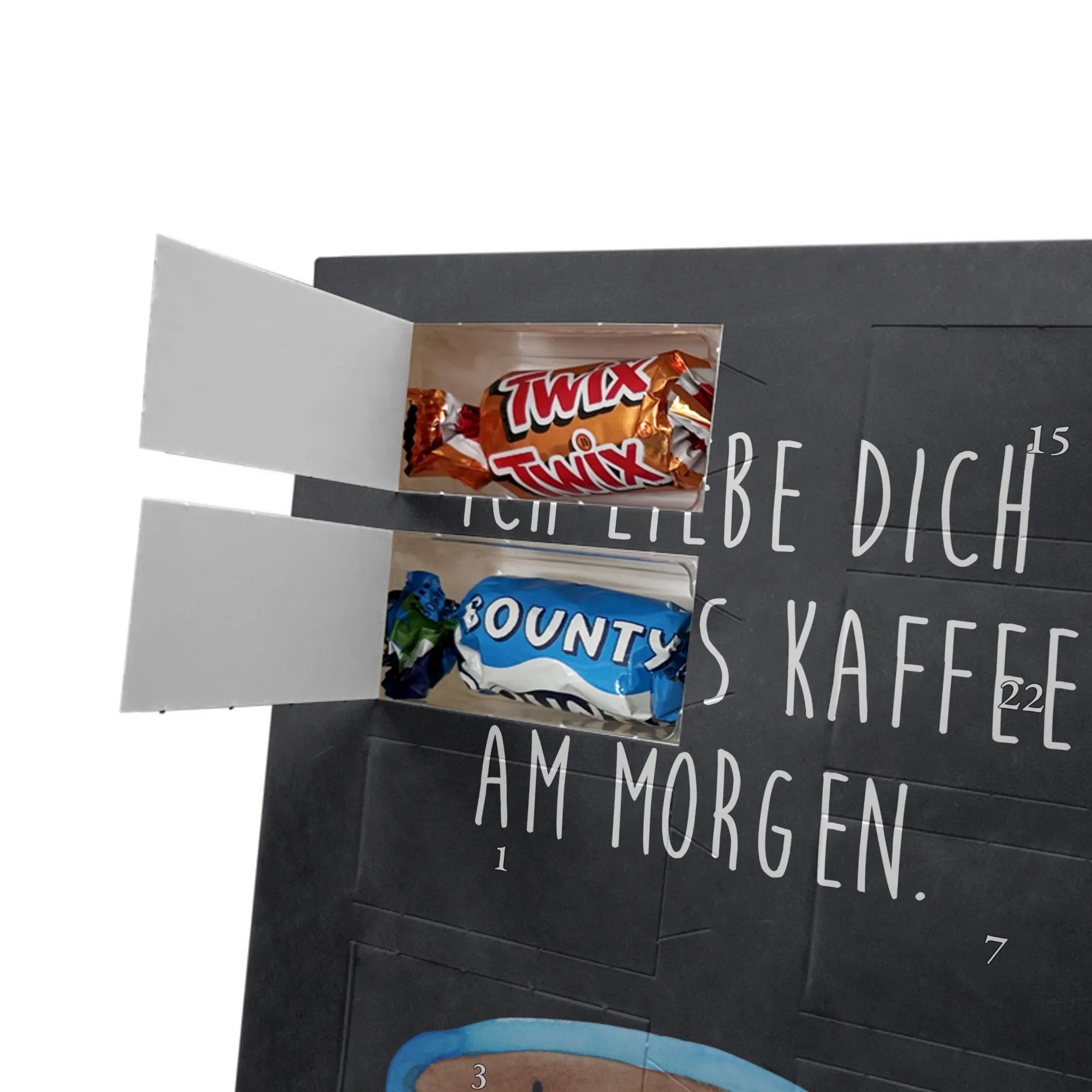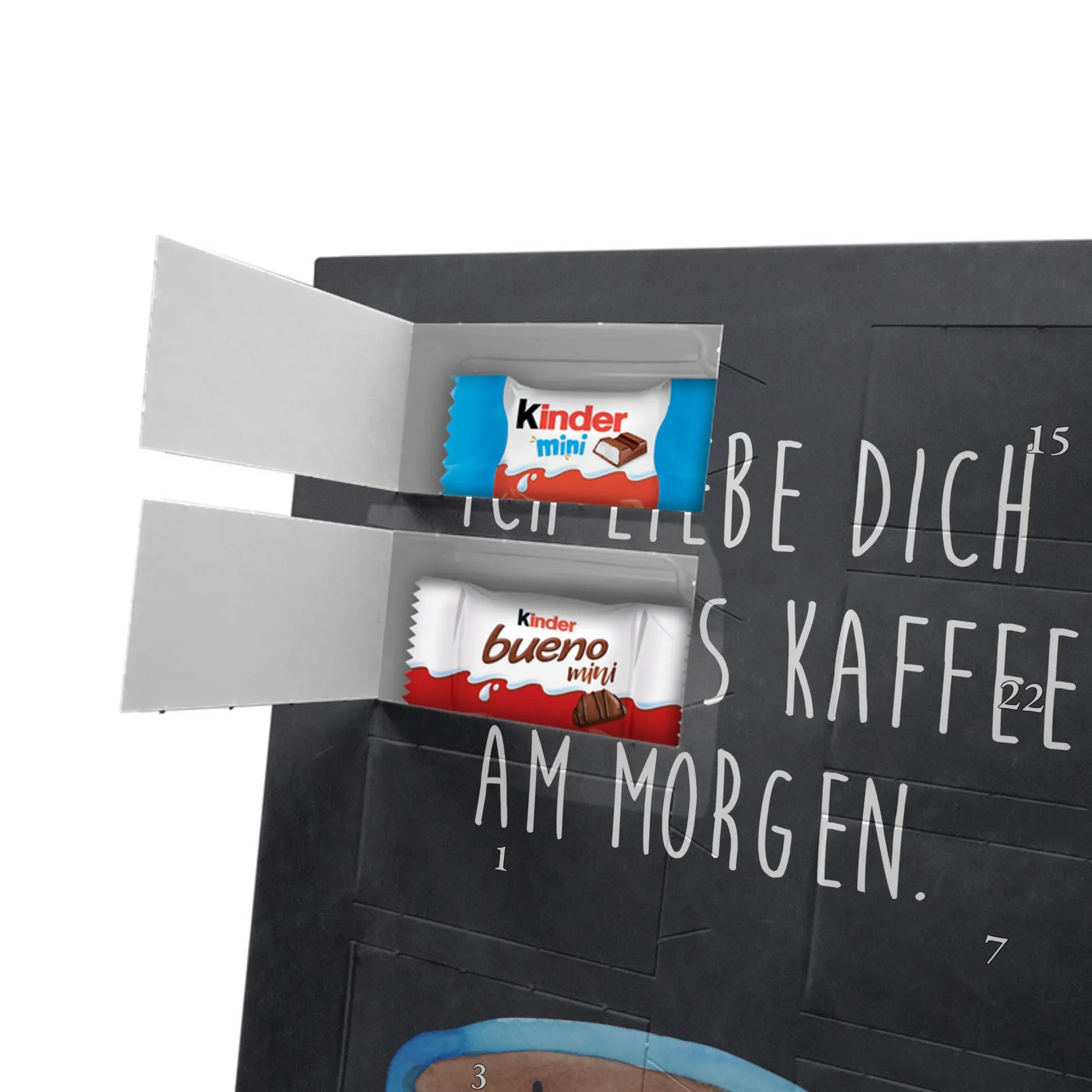 Suchst Du ein Geschenk, das Herzen erwärmt und die Vorfreude auf Weihnachten täglich steigert? Unser Adventskalender kombiniert liebevolles Design, persönliche Erinnerung und süßen Genuss. Die fröhliche Tasse mit dem Spruch „Ich liebe dich mehr als Kaffee am Morgen.“ sorgt für Schmunzeln und ist das perfekte Geschenk für Kaffeeliebhaber, Paare und Freunde mit Humor.