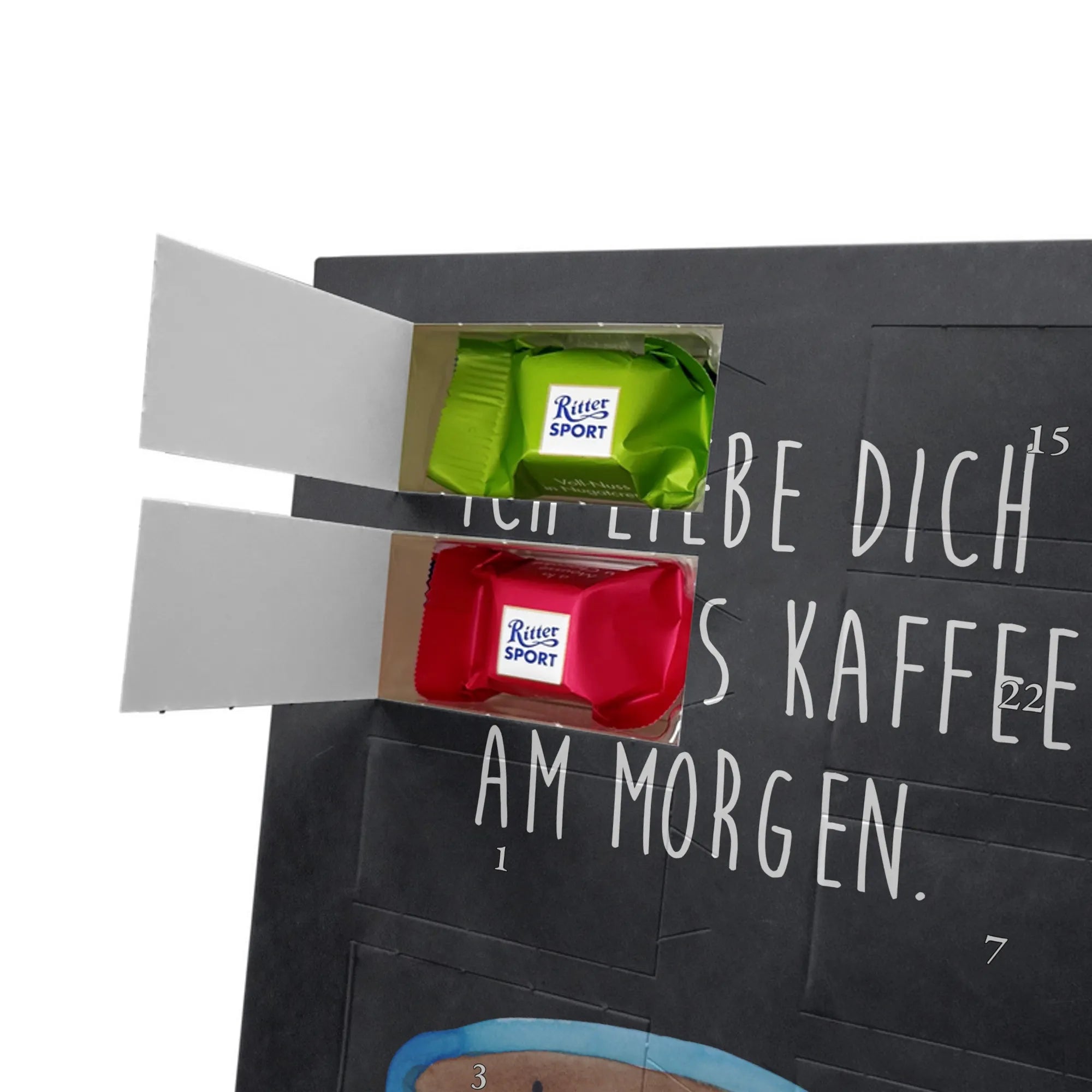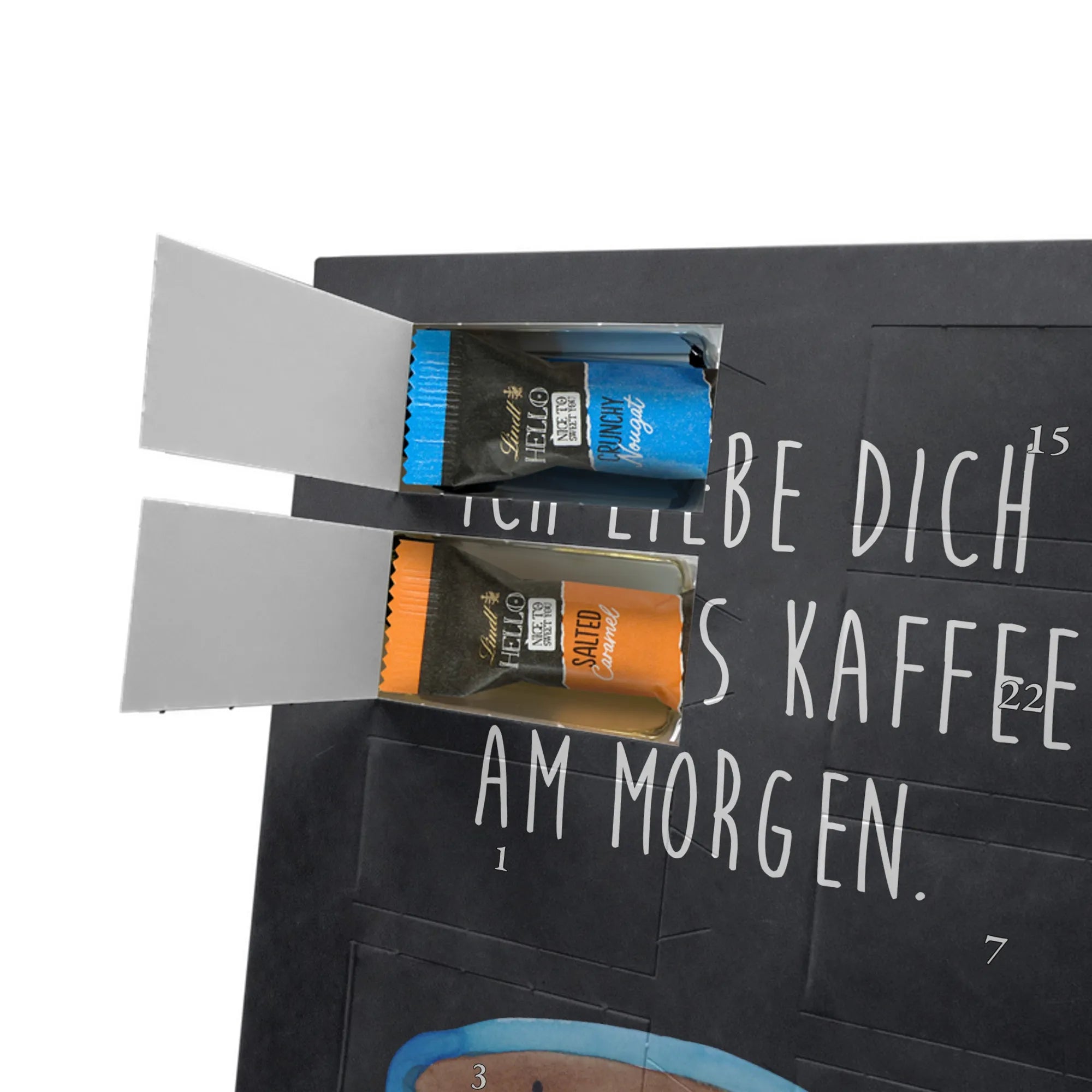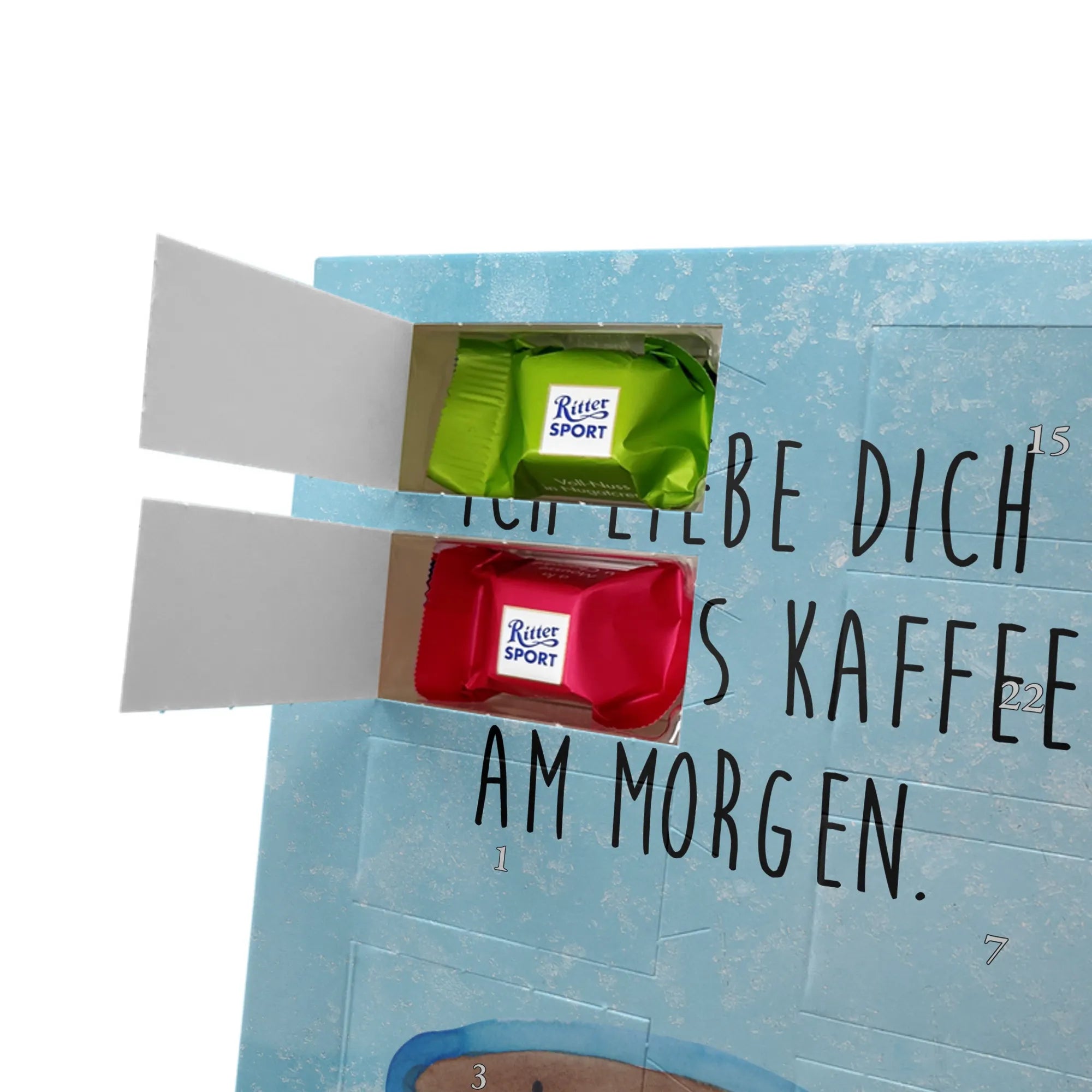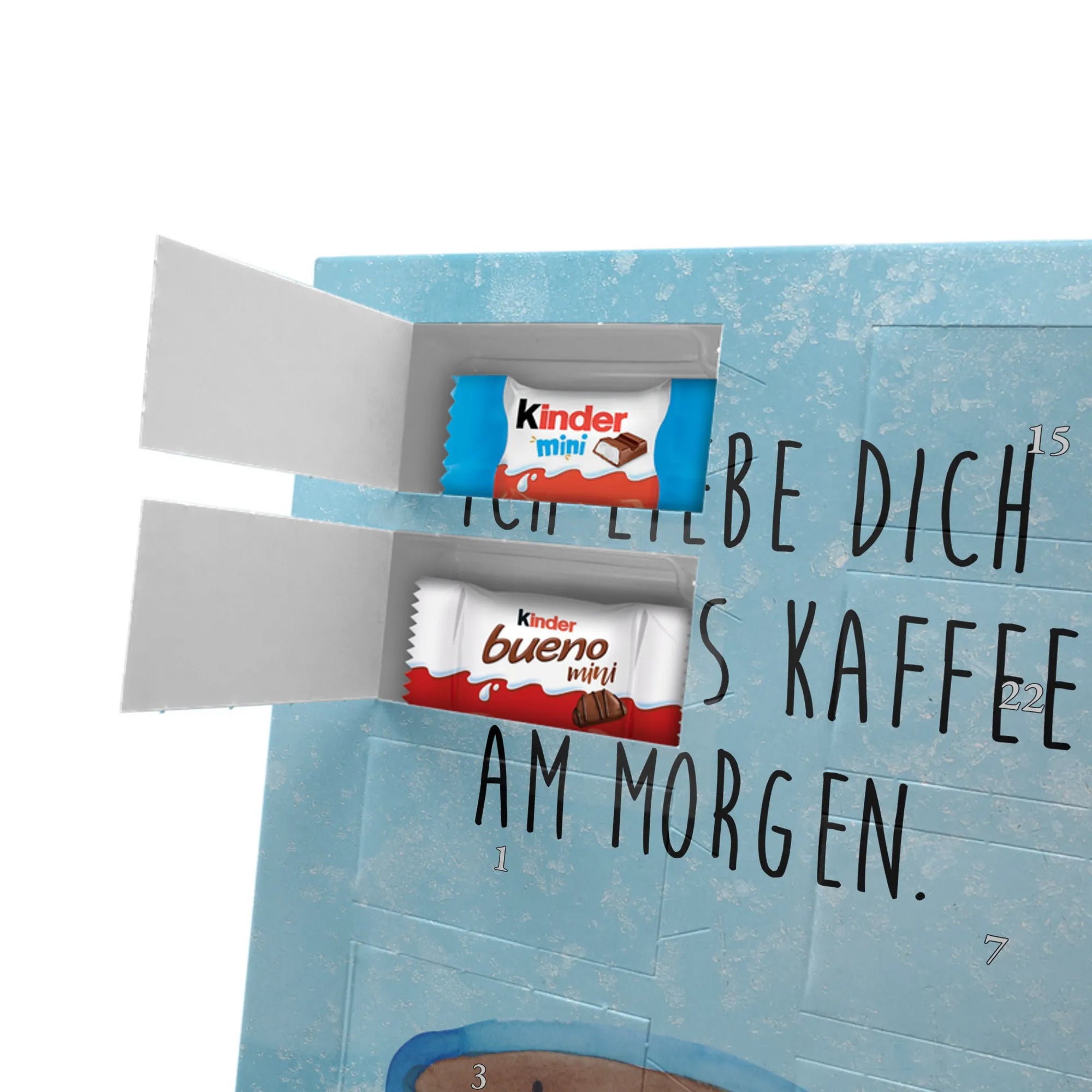 Suchst Du ein Geschenk, das Herzen erwärmt und die Vorfreude auf Weihnachten täglich steigert? Unser Adventskalender kombiniert liebevolles Design, persönliche Erinnerung und süßen Genuss. Die fröhliche Tasse mit dem Spruch „Ich liebe dich mehr als Kaffee am Morgen.“ sorgt für Schmunzeln und ist das perfekte Geschenk für Kaffeeliebhaber, Paare und Freunde mit Humor.