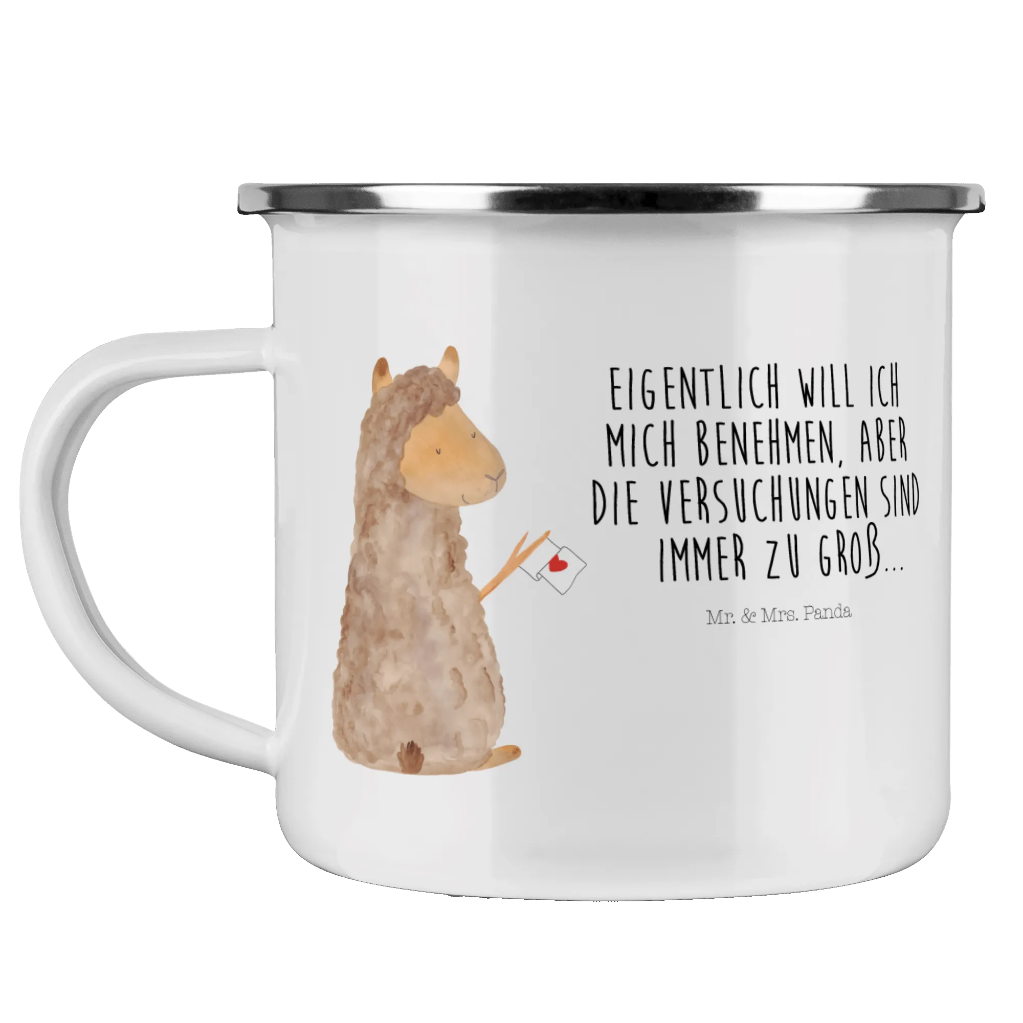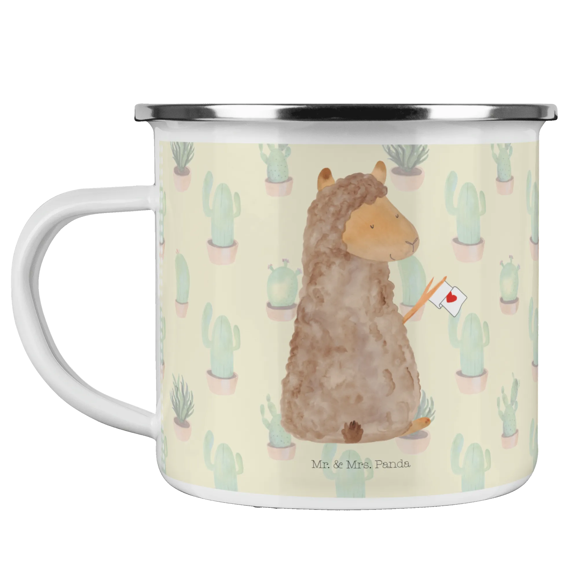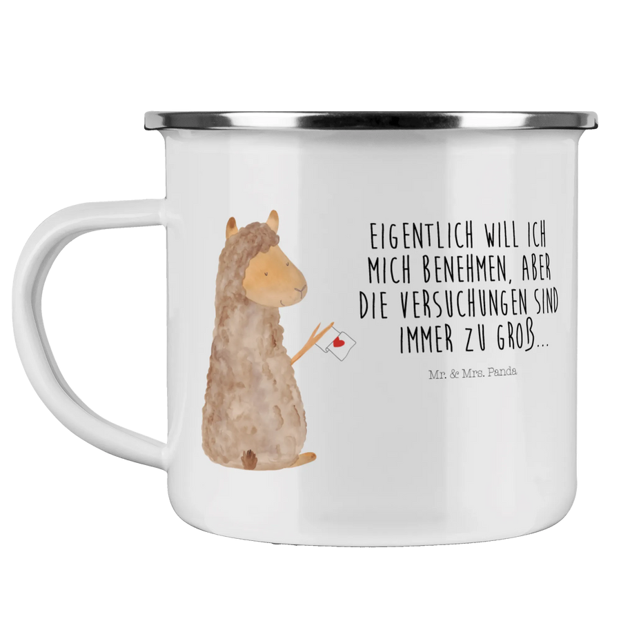 Kempingowy kubek emaliowany alpaka flaga - z napisem - Biały