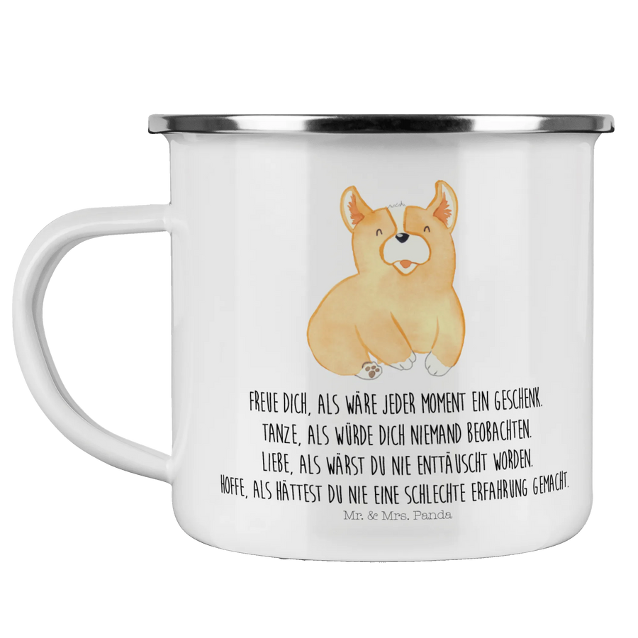 Kempingowy kubek emaliowany Corgi - z napisem - Biały