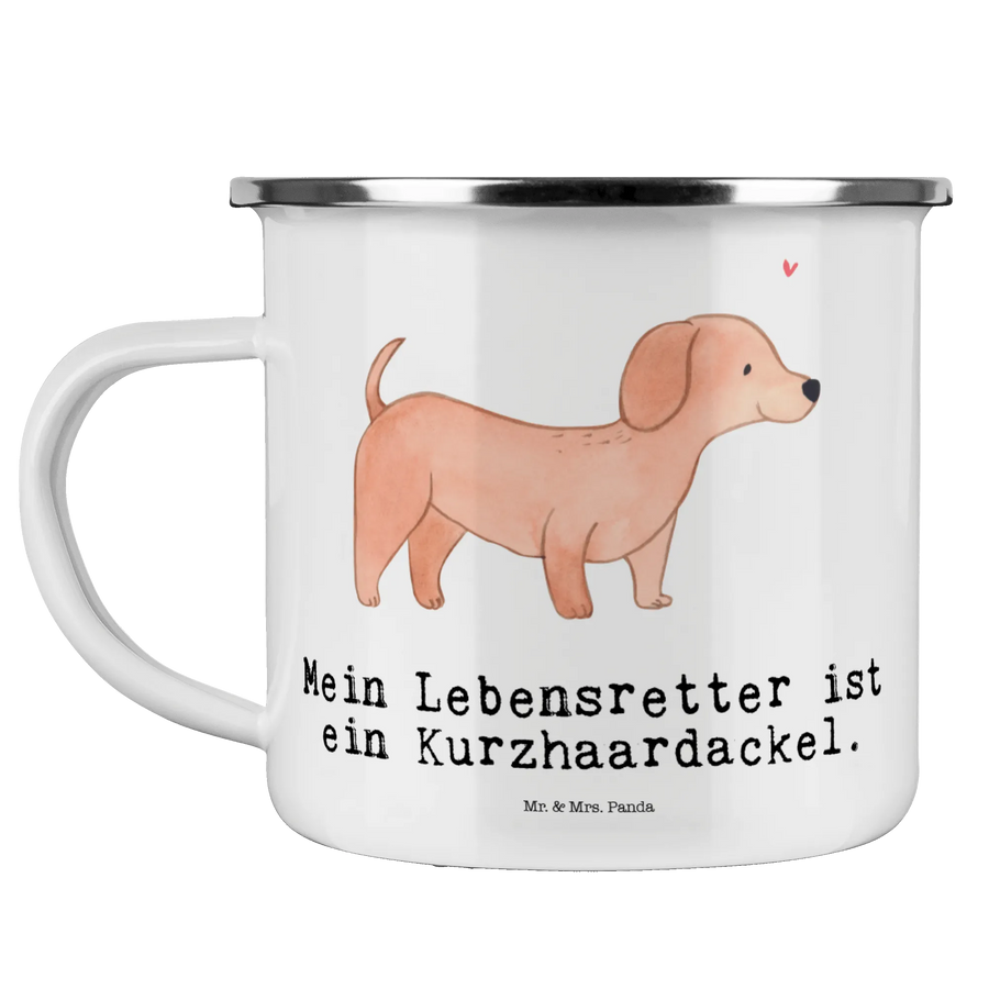 Kempingowy kubek emaliowany Jamnik krótkowłosy Ratownik Pies, rasa psa, pies rasowy, właściciel psa, prezent, miłośnik zwierząt, dawanie, szczeniak