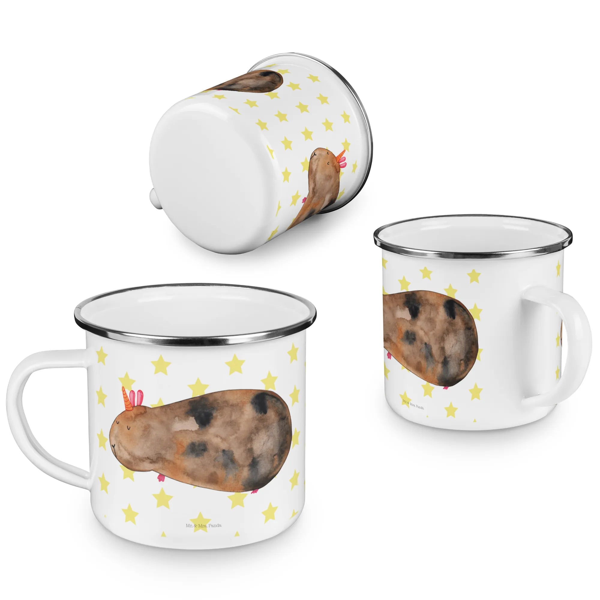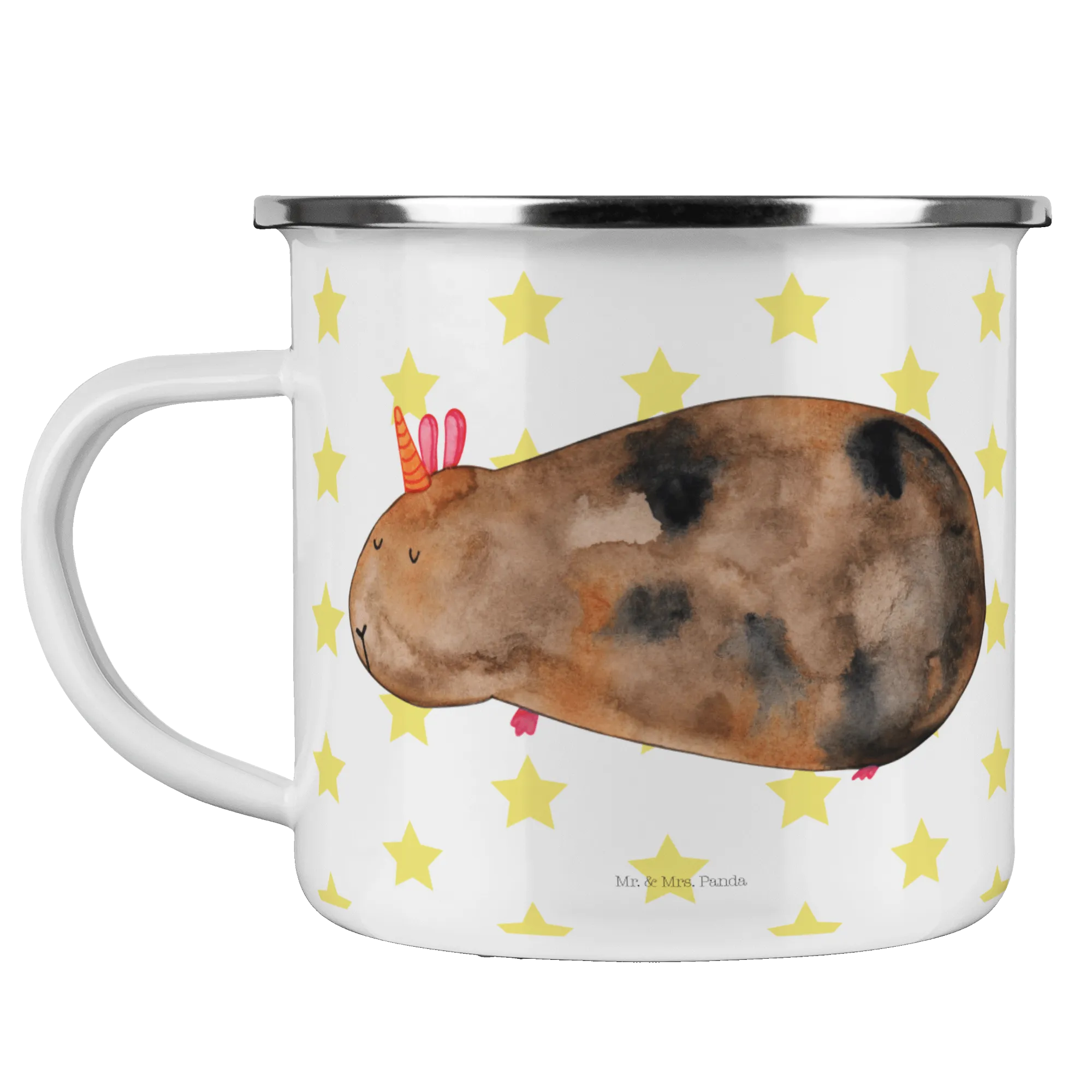 Kempingowy kubek emaliowany Jednorożec świnka morska - z napisem - biały