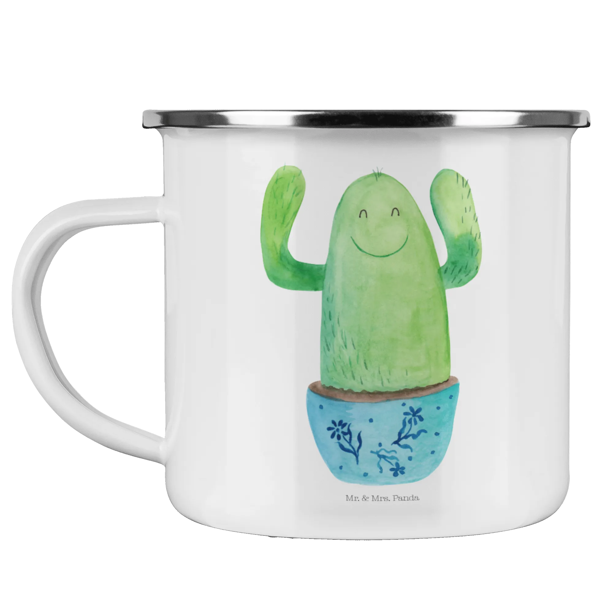Kempingowy kubek emaliowany kaktus Szczęśliwy - z napisem