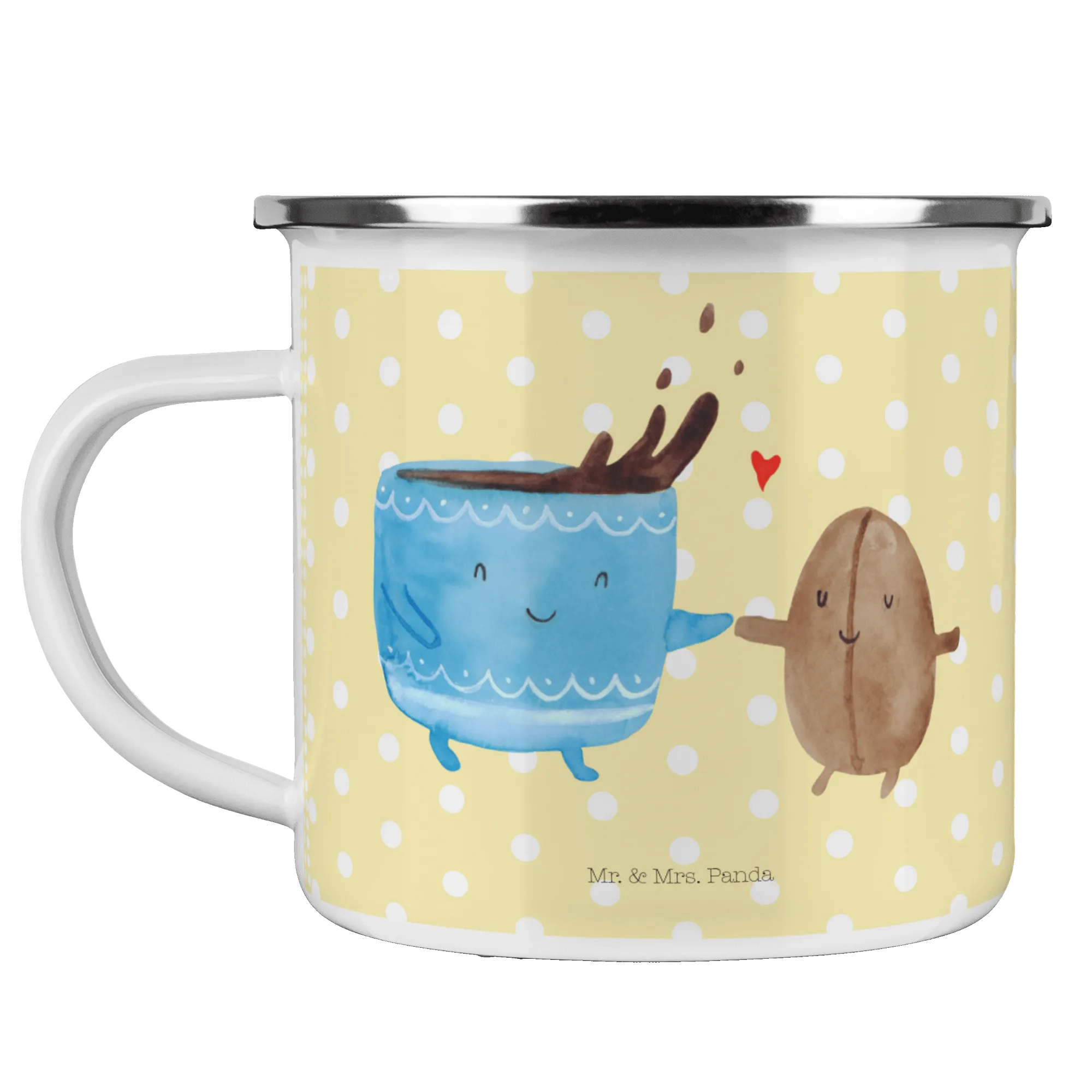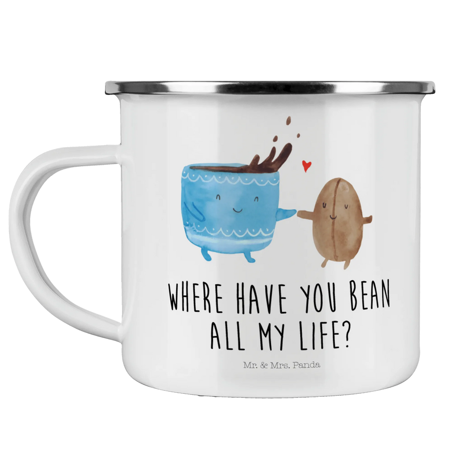 Kempingowy kubek emaliowany kawa ziarno - z napisem - Biały