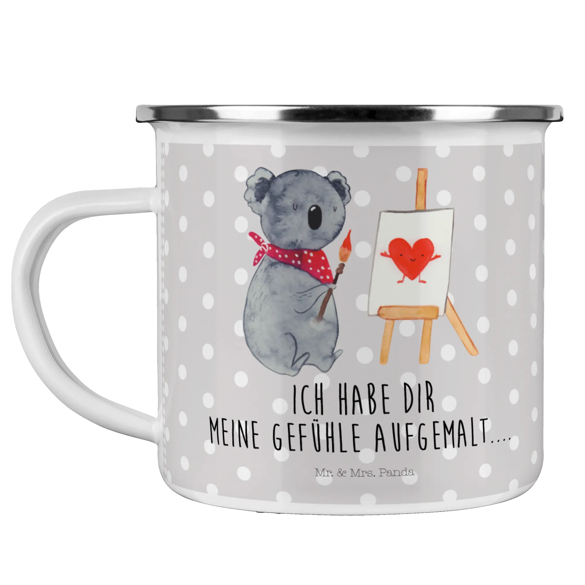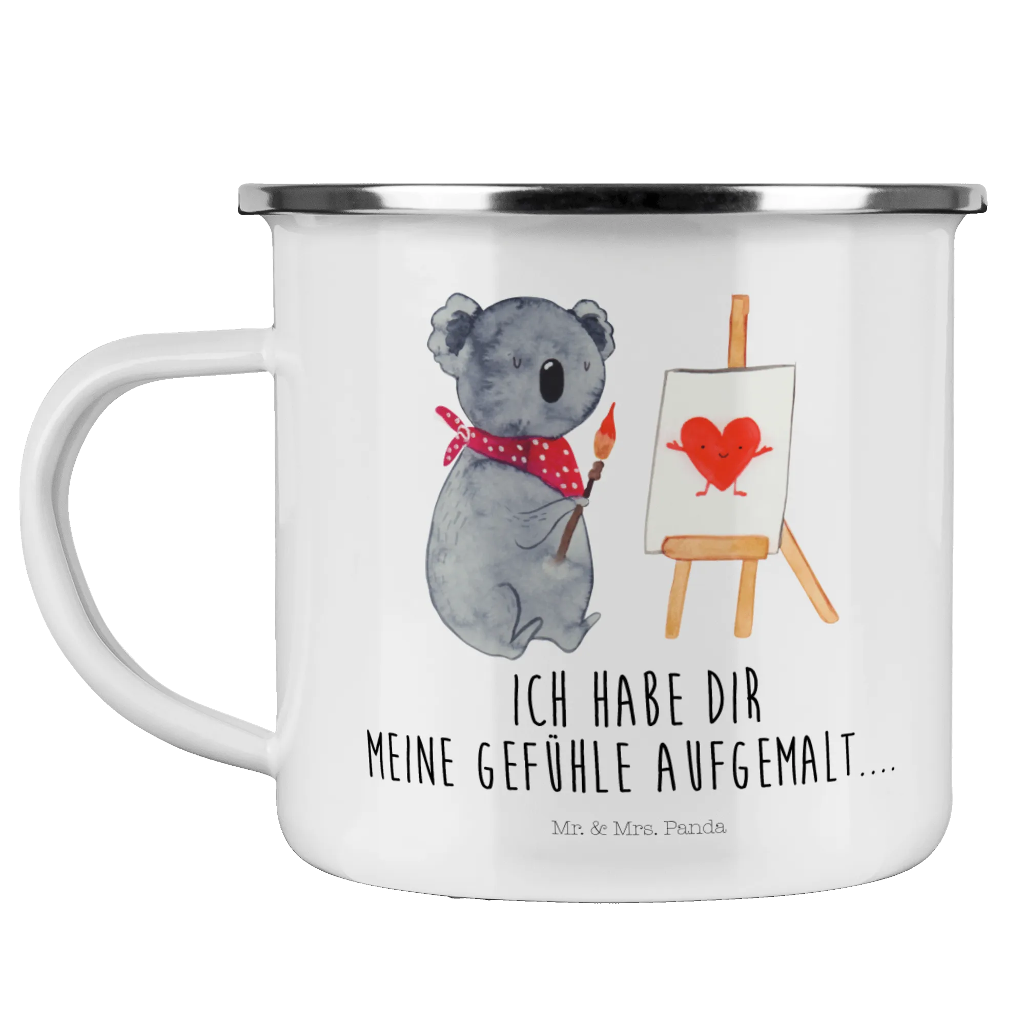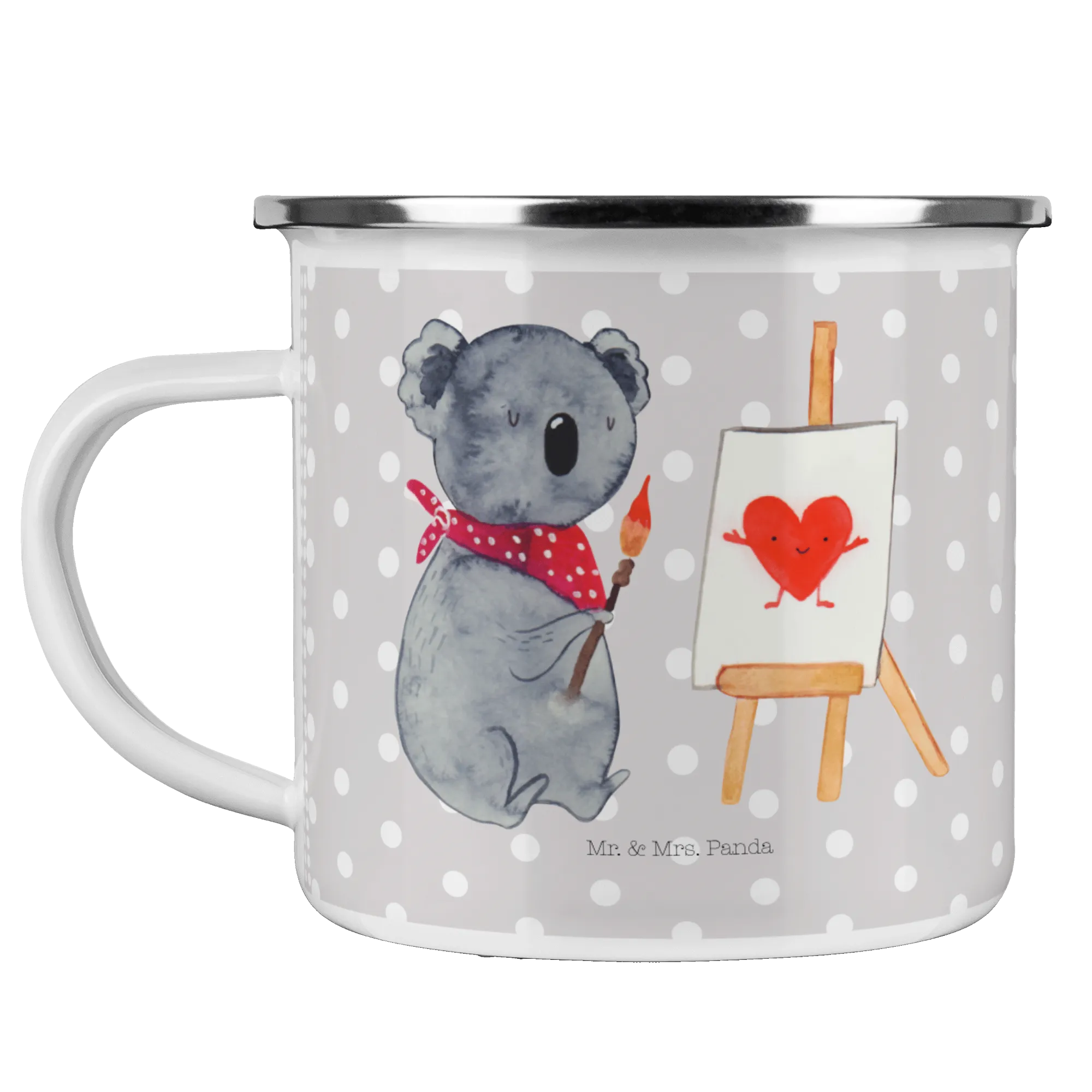 Kempingowy kubek emaliowany koala artysta - z napisem - Biały