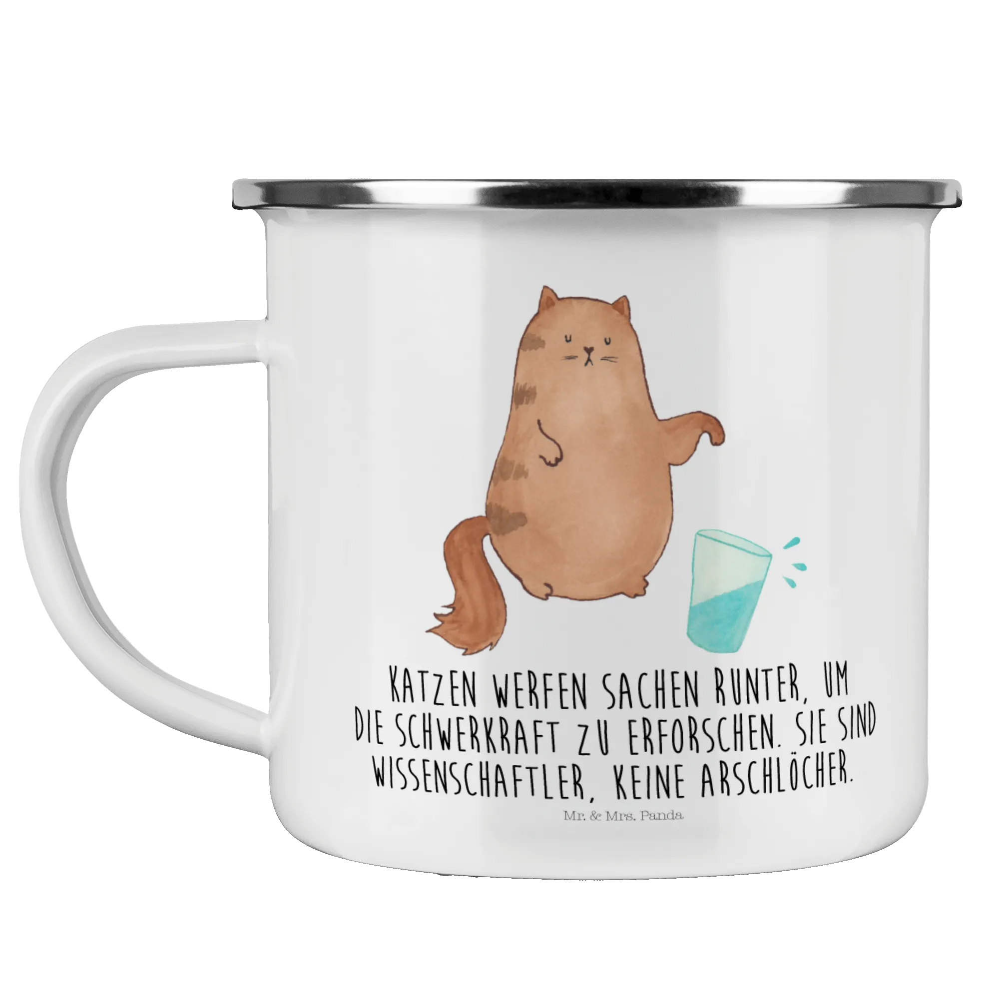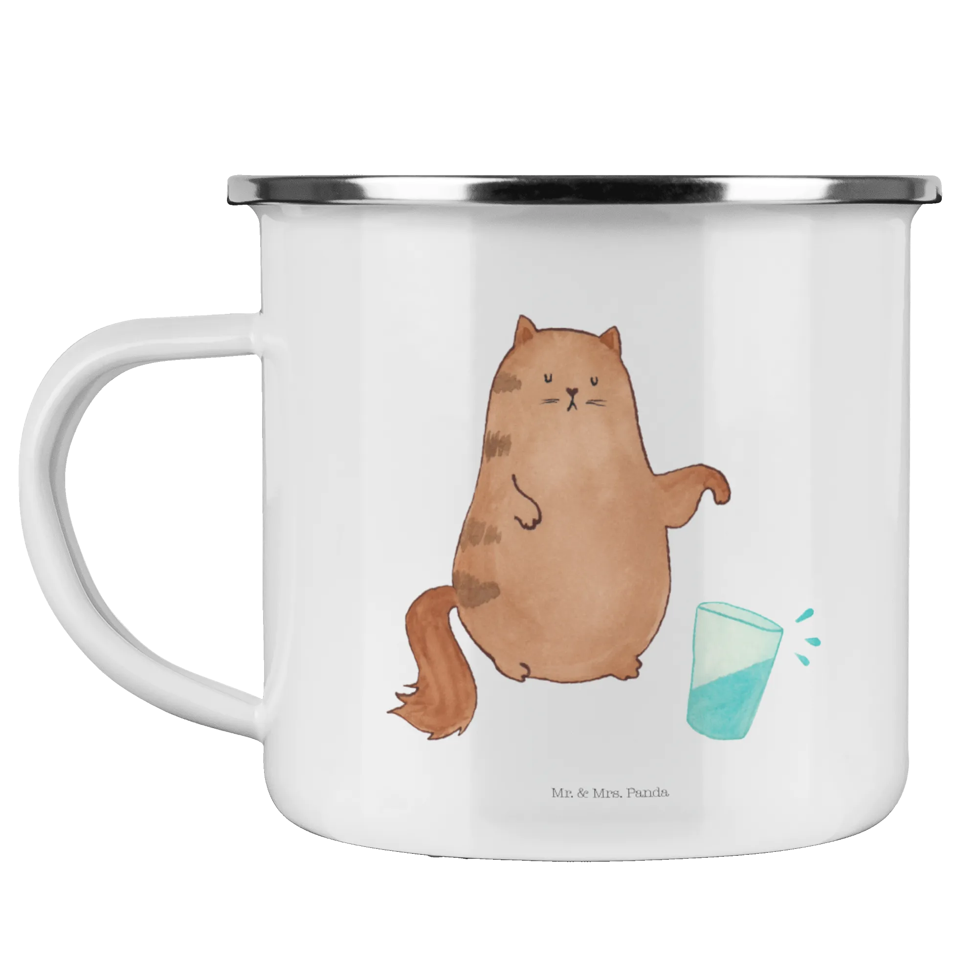 Kempingowy kubek emaliowany kot szklanka wody - z napisem - Biały