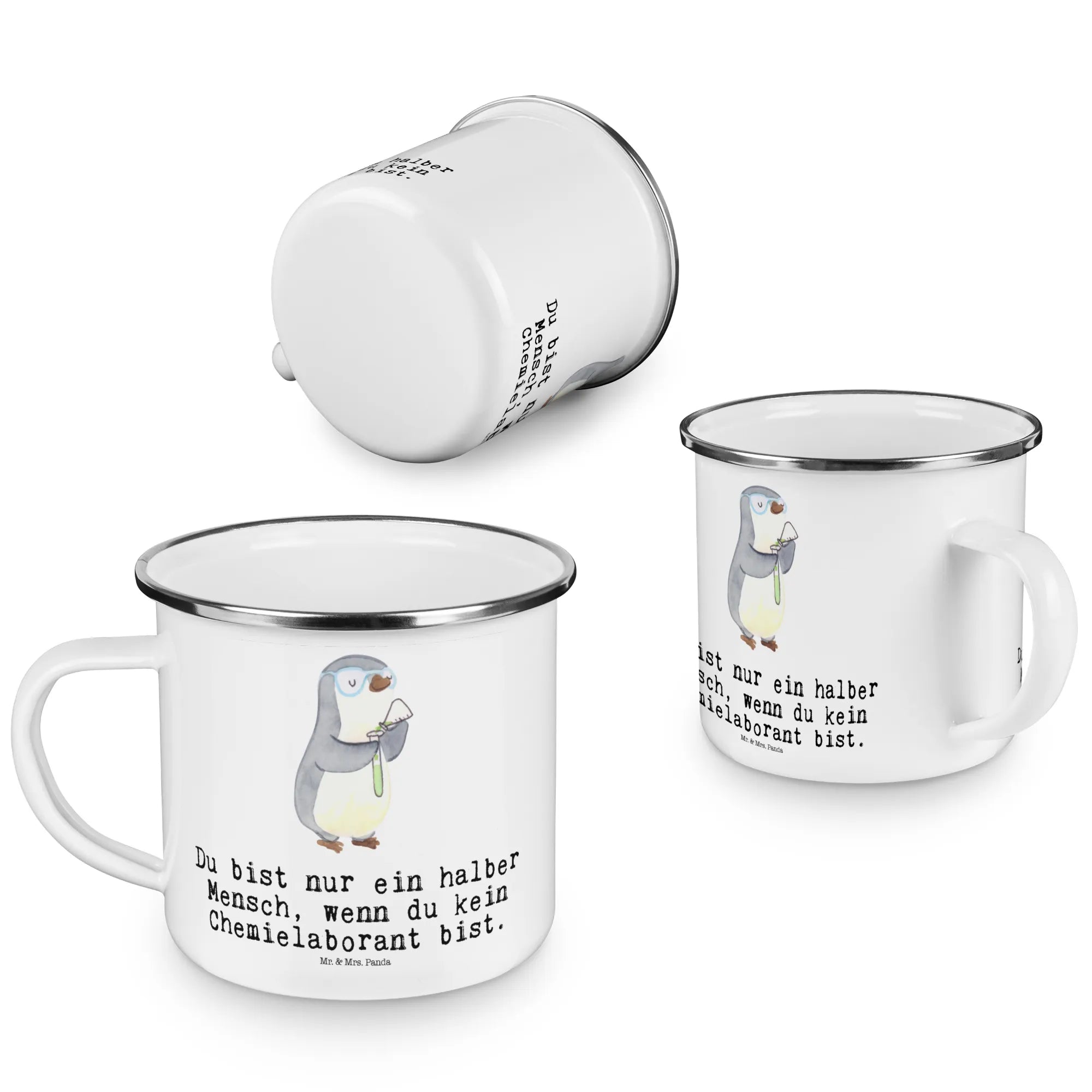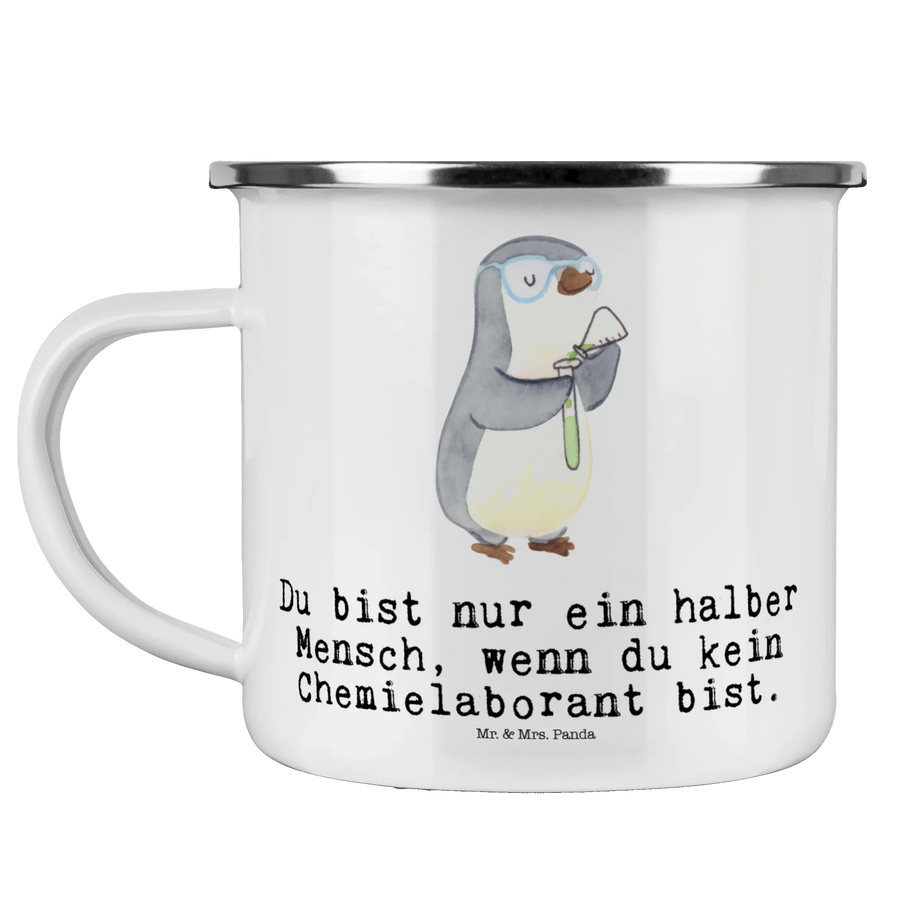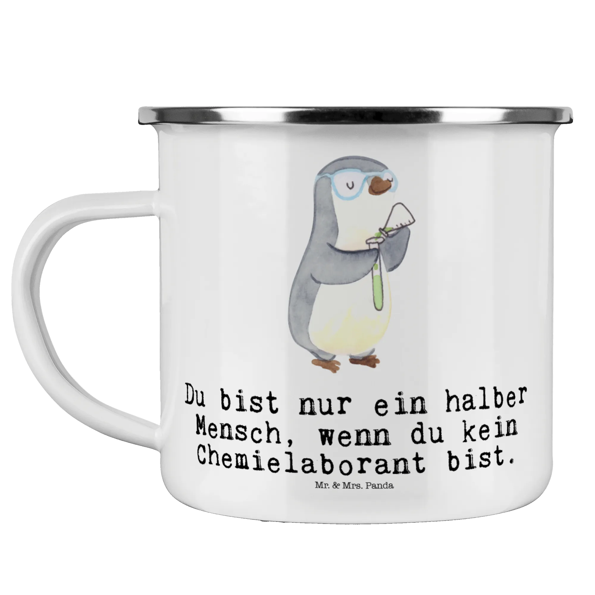 Kempingowy kubek emaliowany laborant chemiczny serce