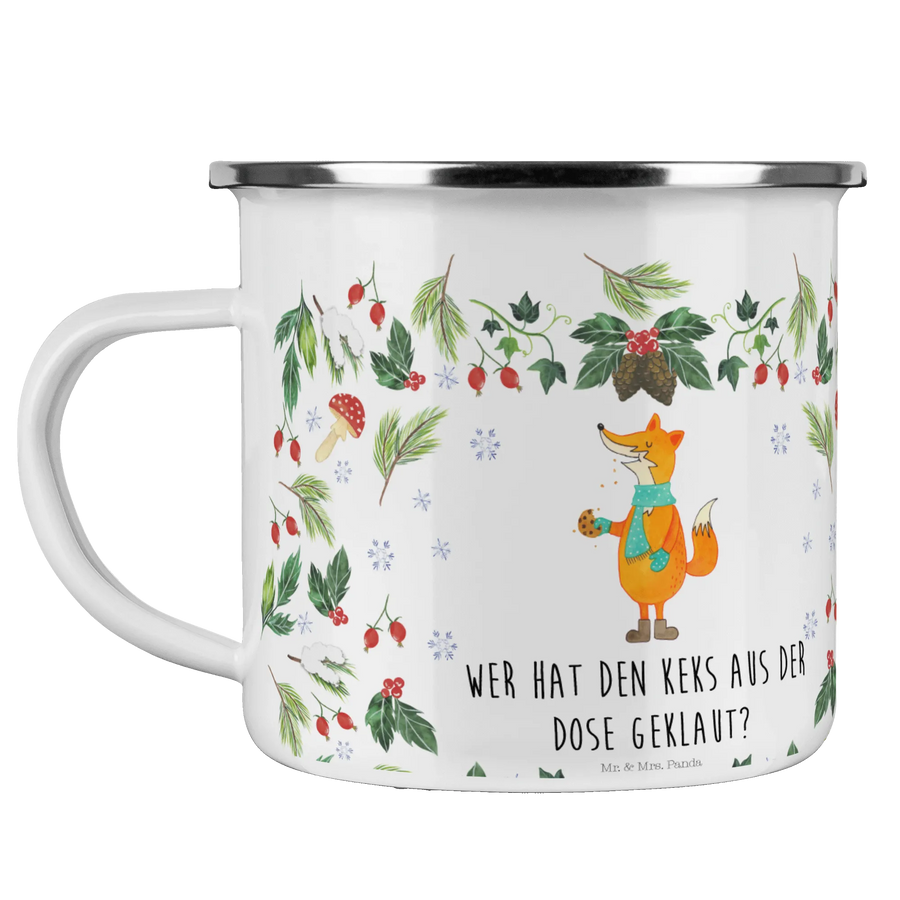 Kempingowy kubek emaliowany Lis pudełko na ciastka - z napisem - Biały