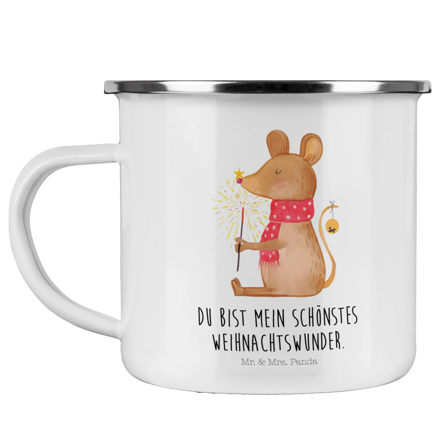 Kempingowy kubek emaliowany mysz Boże Narodzenie - z napisem - Biały