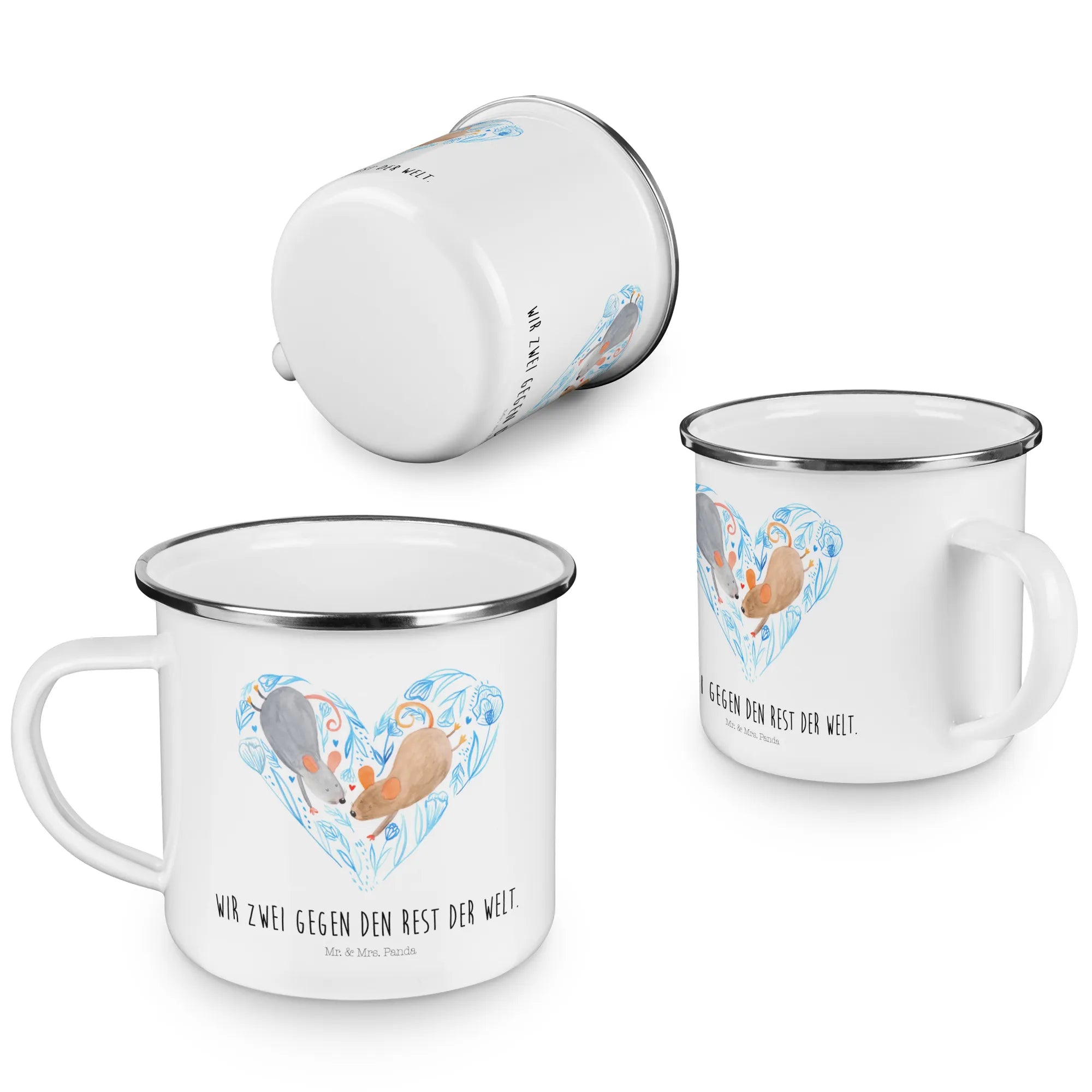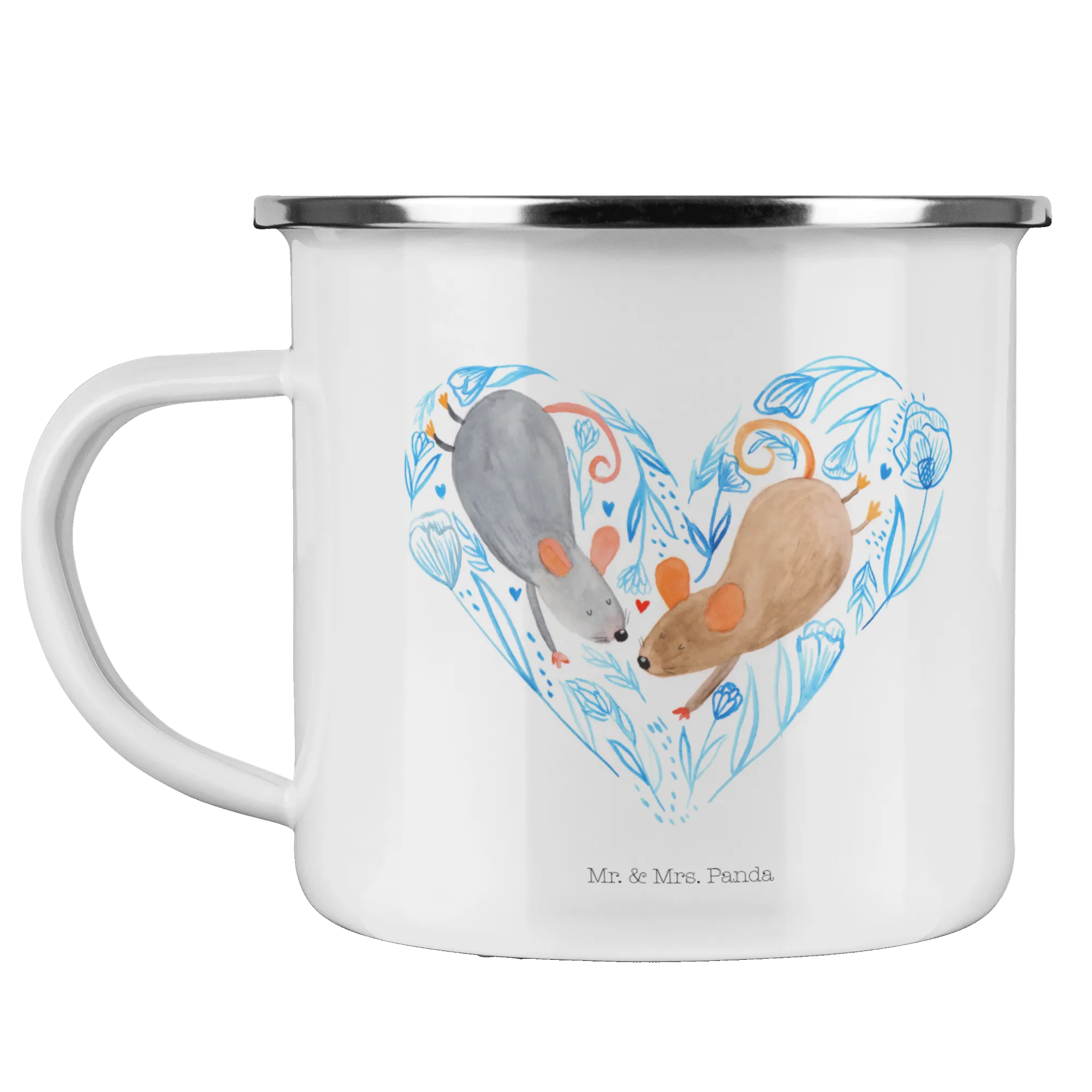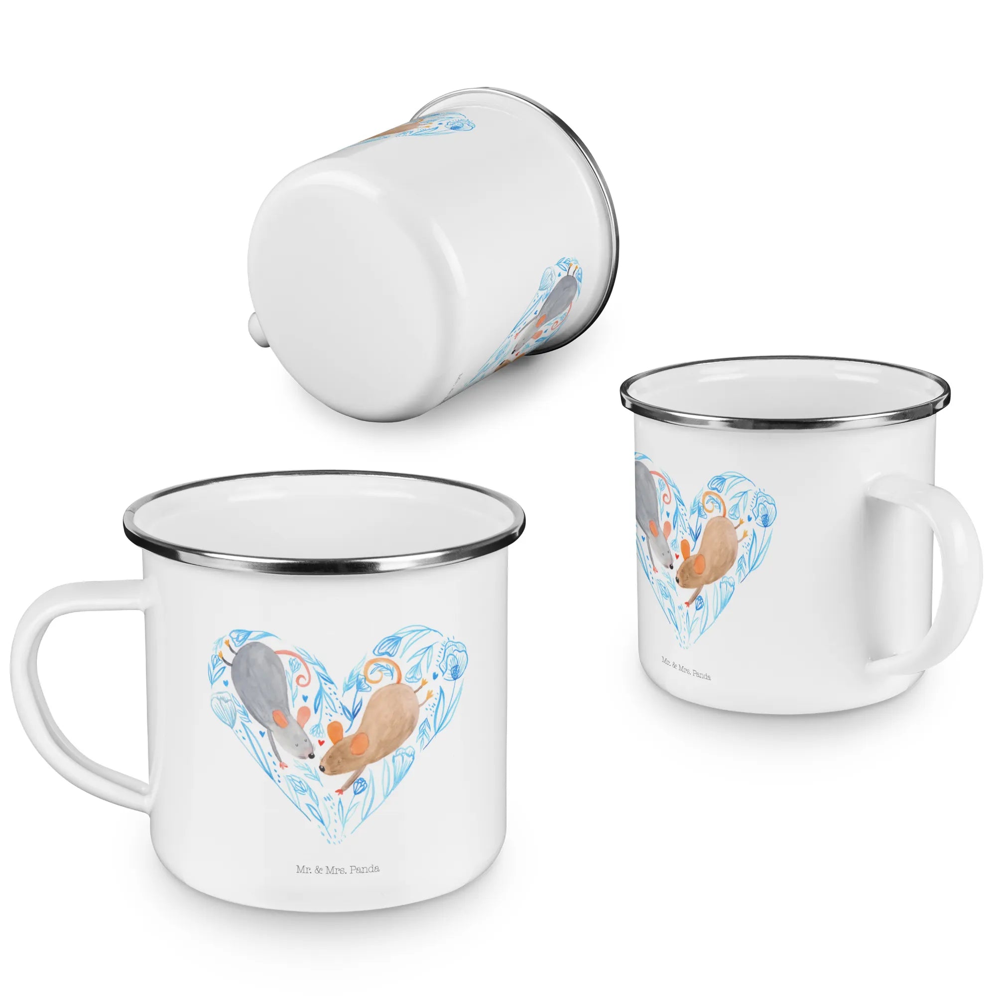 Kempingowy kubek emaliowany Myszy serce - z napisem - Biały