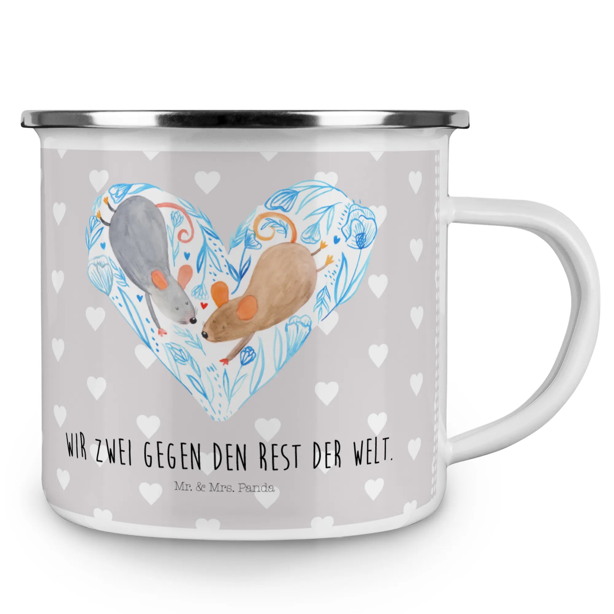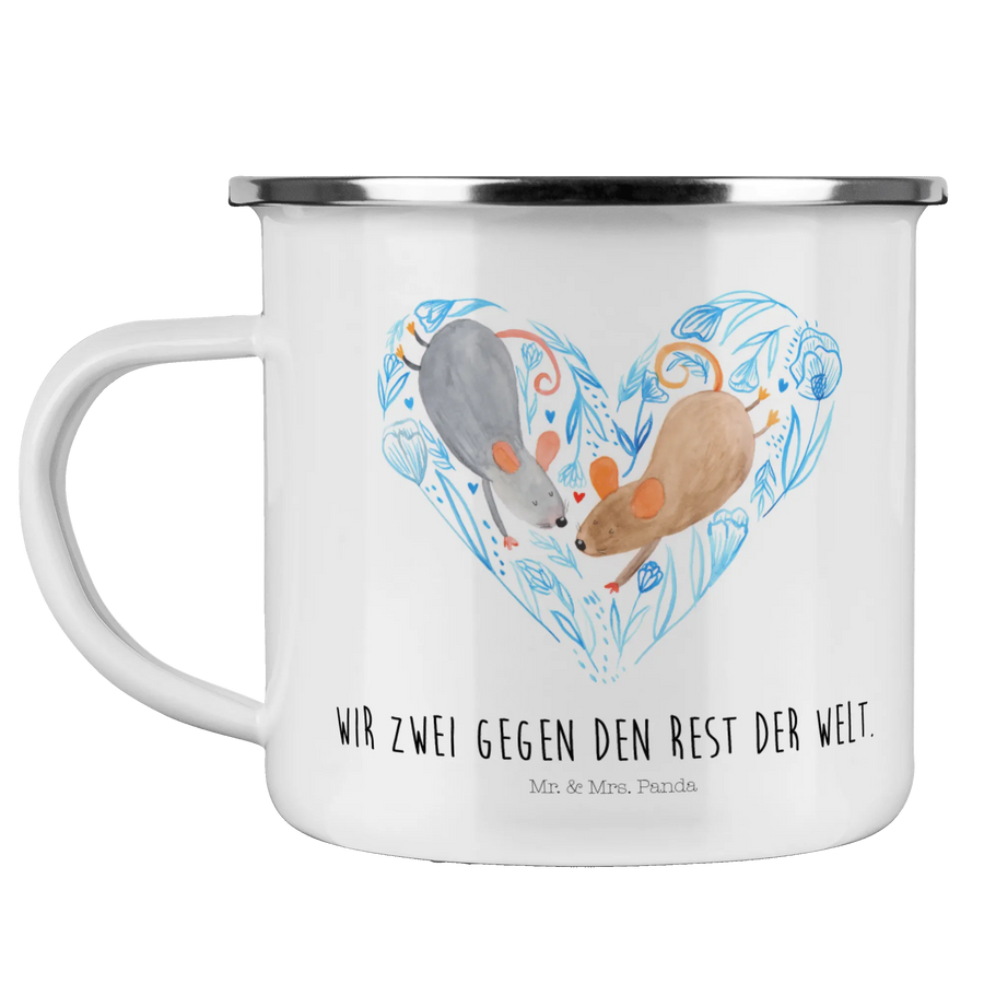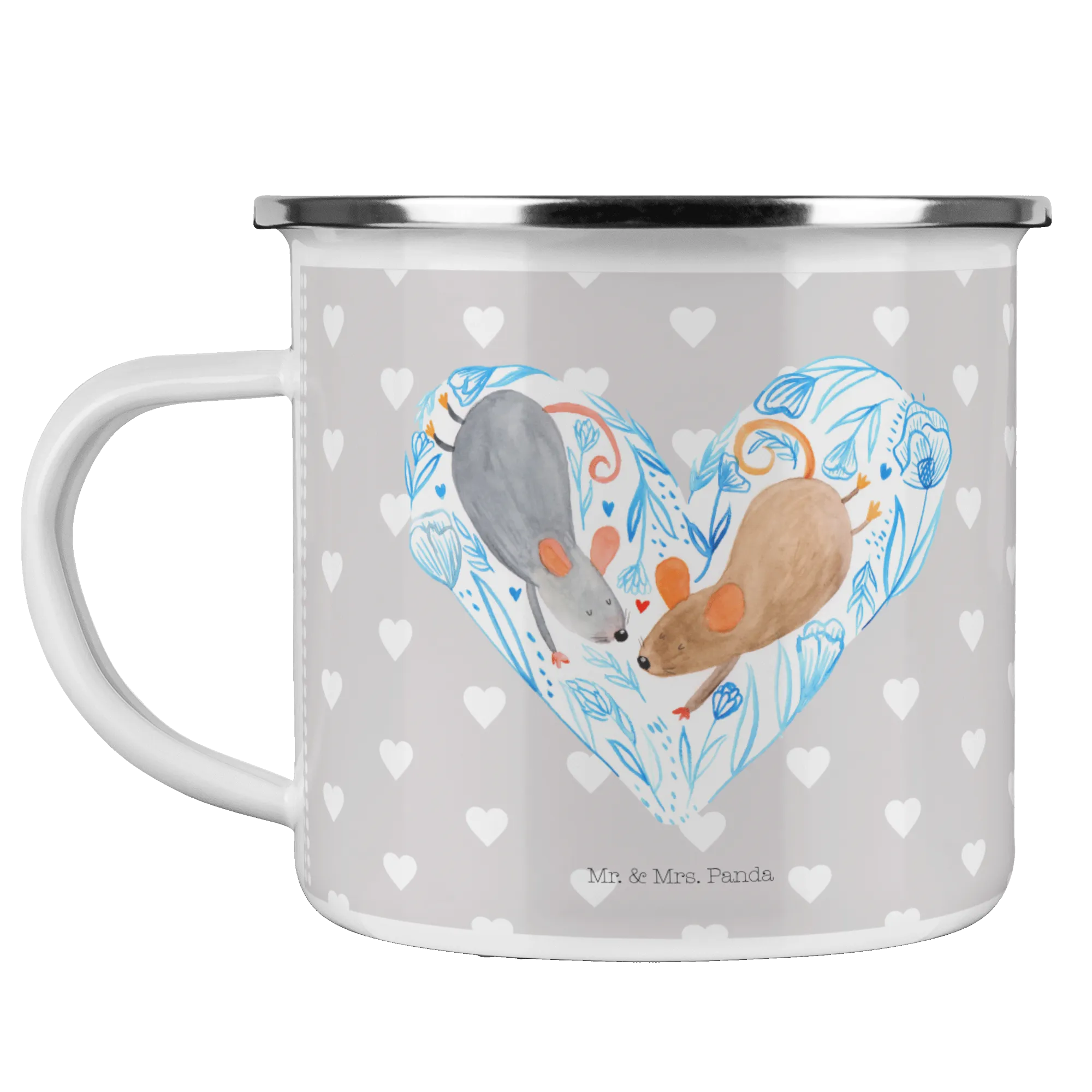 Kempingowy kubek emaliowany Myszy serce - z napisem - Biały