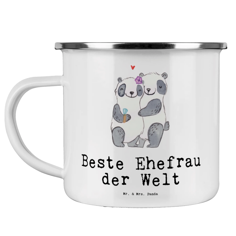 Kempingowy kubek emaliowany Panda Najlepsza żona na świecie - biały