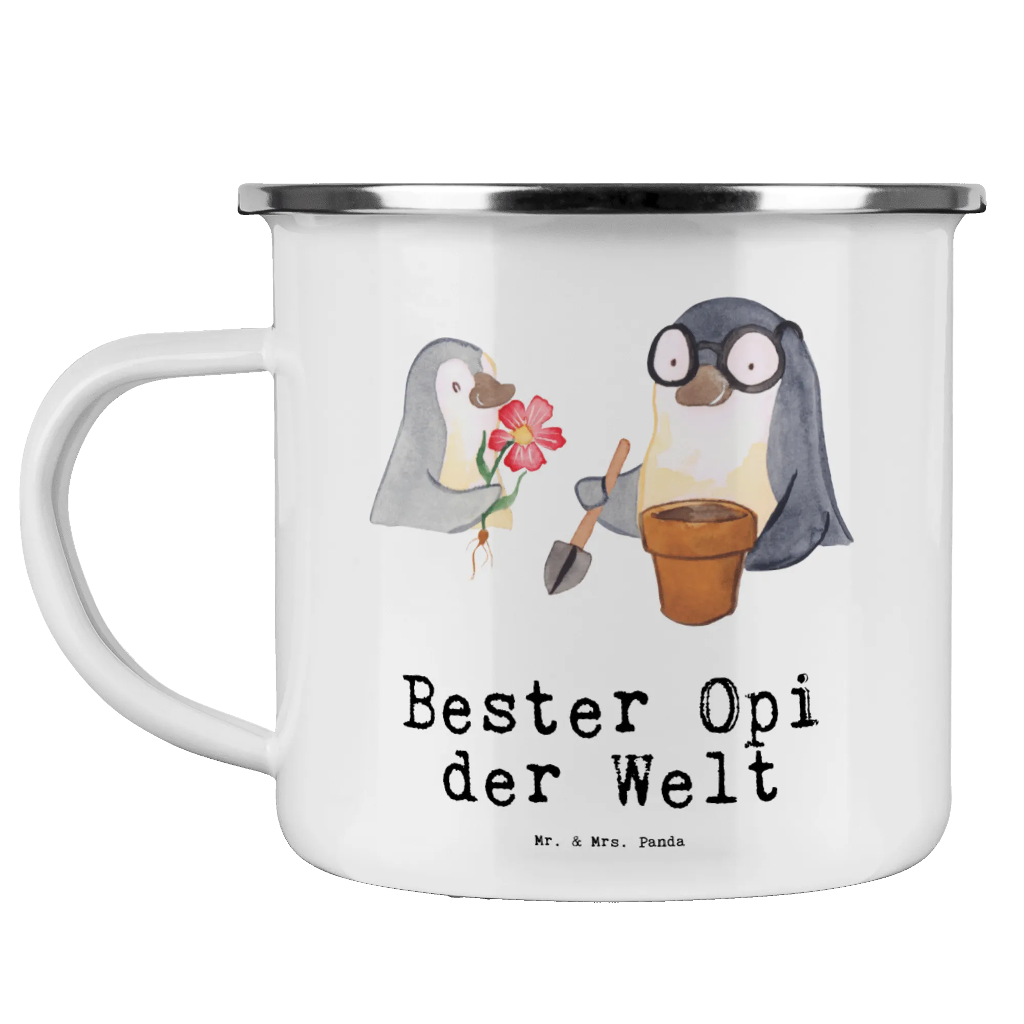 Kempingowy kubek emaliowany Pingwin Najlepszy dziadek na świecie - biały