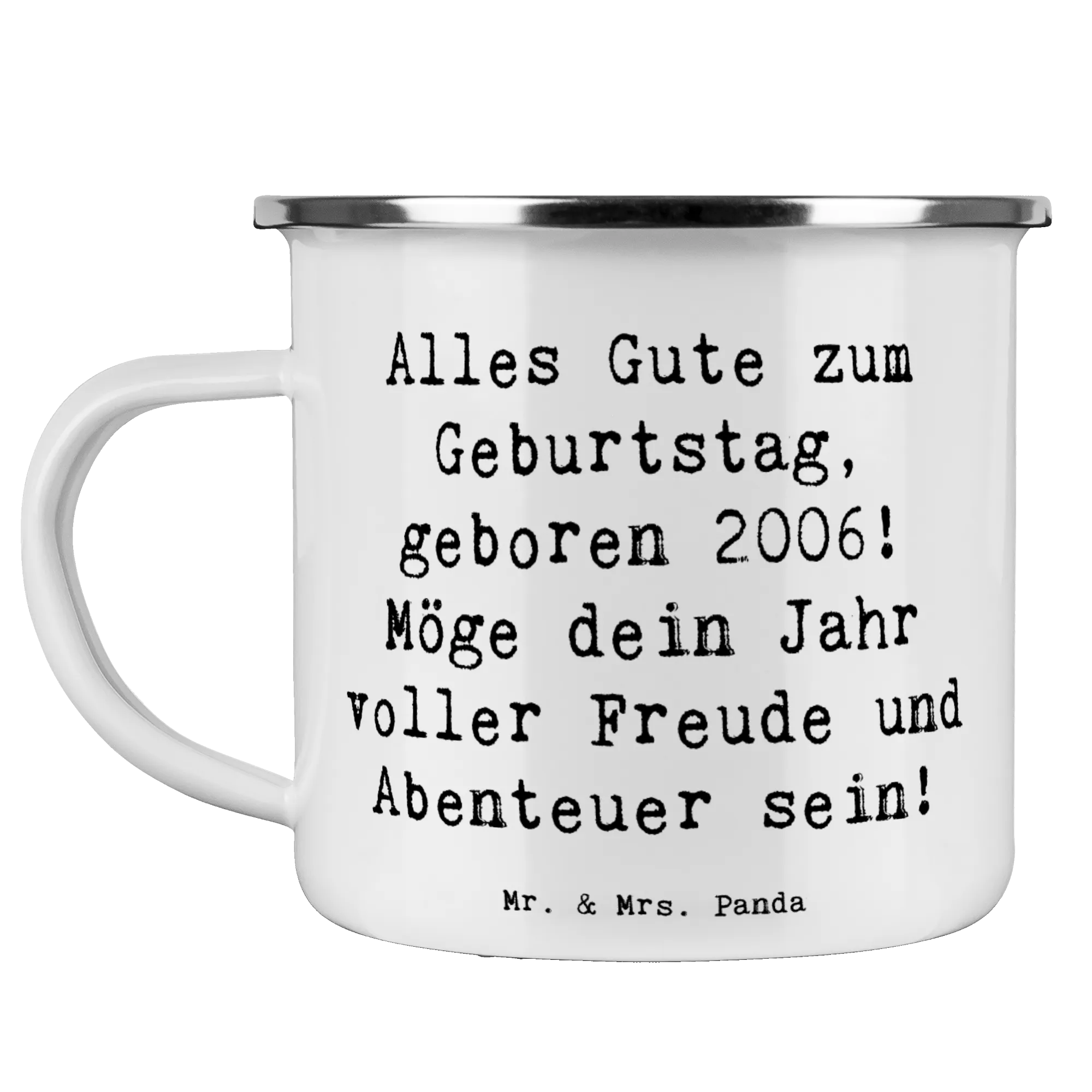 Kempingowy kubek emaliowany Przysłowie Alles Gute zum Geburtstag, geboren 2006! Möge dein Jahr voller Freude und Abenteuer sein! - biały