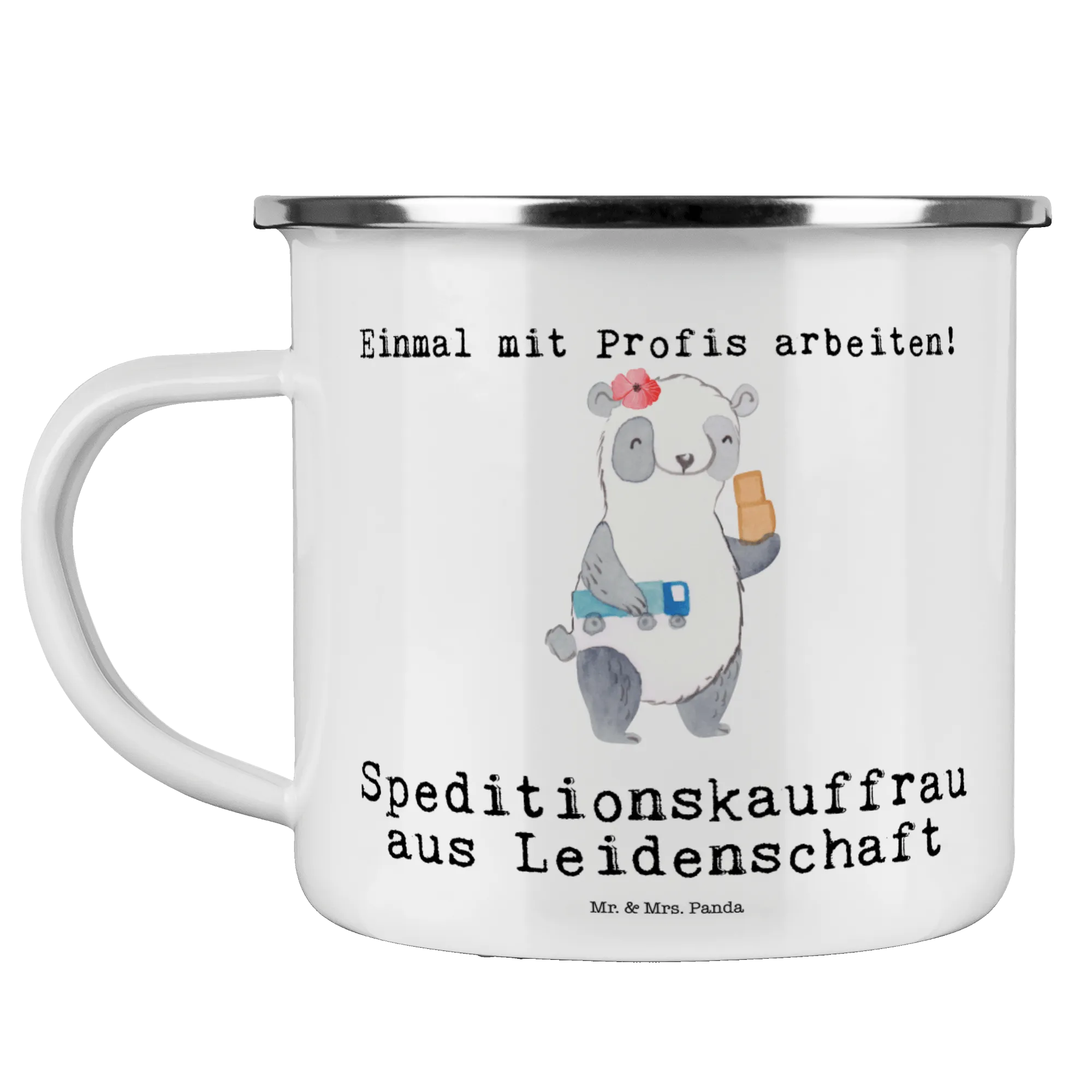 Kempingowy kubek emaliowany Specjalistka ds. spedycji pasja – Mr. & Mrs. Panda