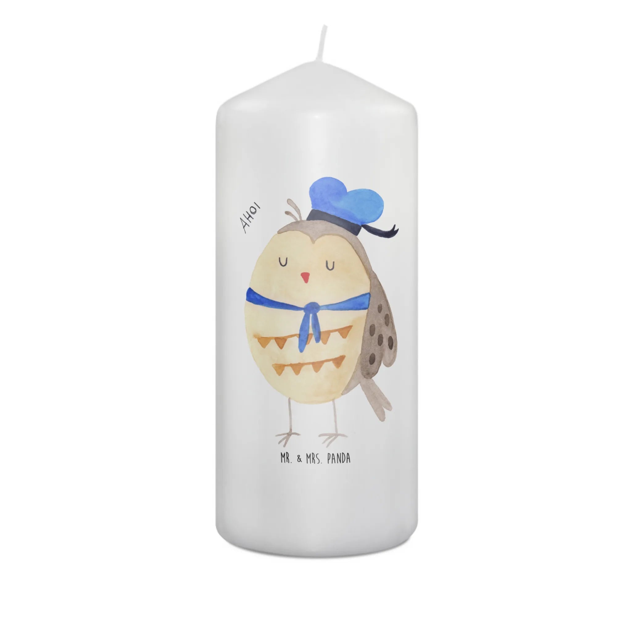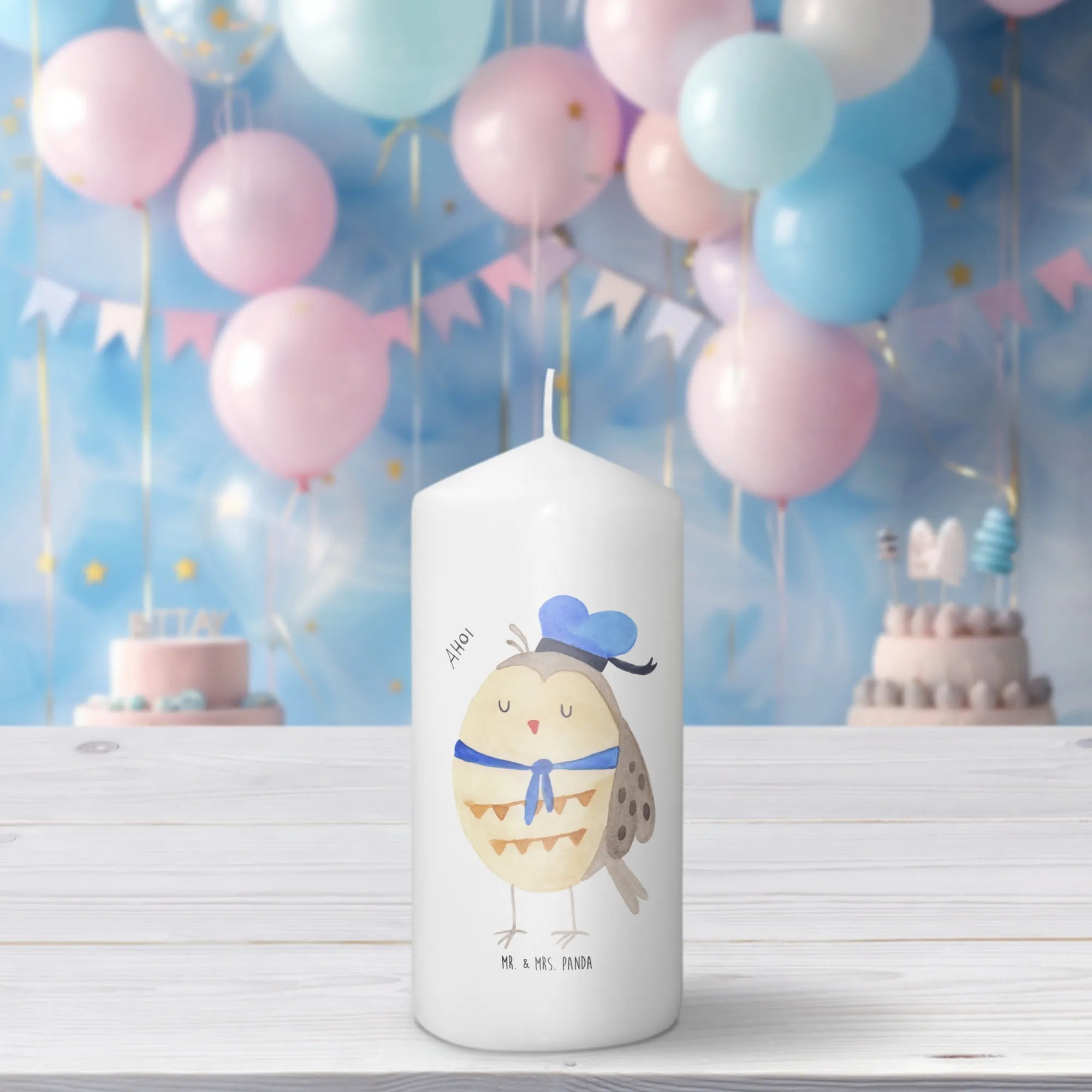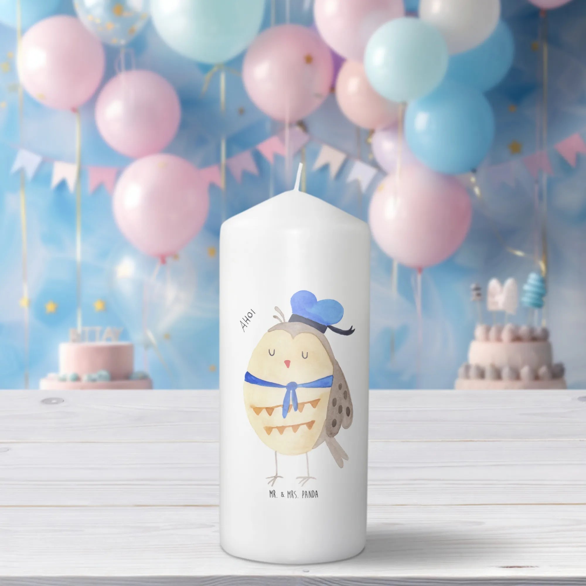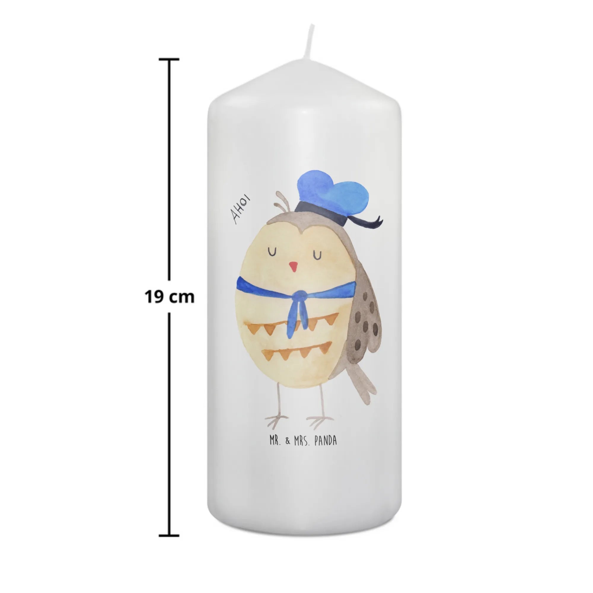 Die Eule Matrosen Kerze von Mr. & Mrs. Panda ist ein liebevolles Geschenk für Jung und Alt. Diese bezaubernde Kerze besteht aus hochwertigem Paraffinwachs und begeistert durch ihr einzigartiges Design einer niedlichen Eule im Matrosenhut.
