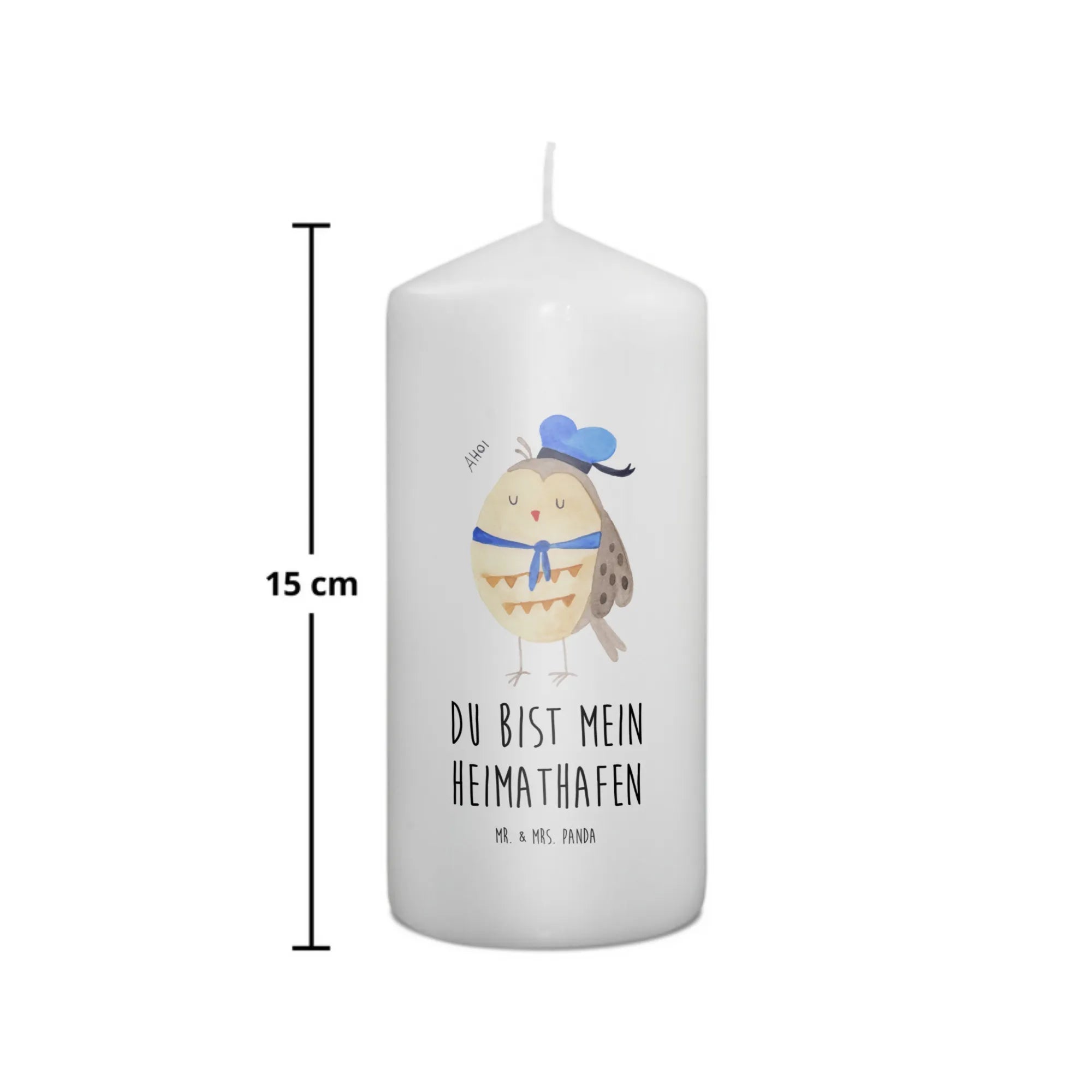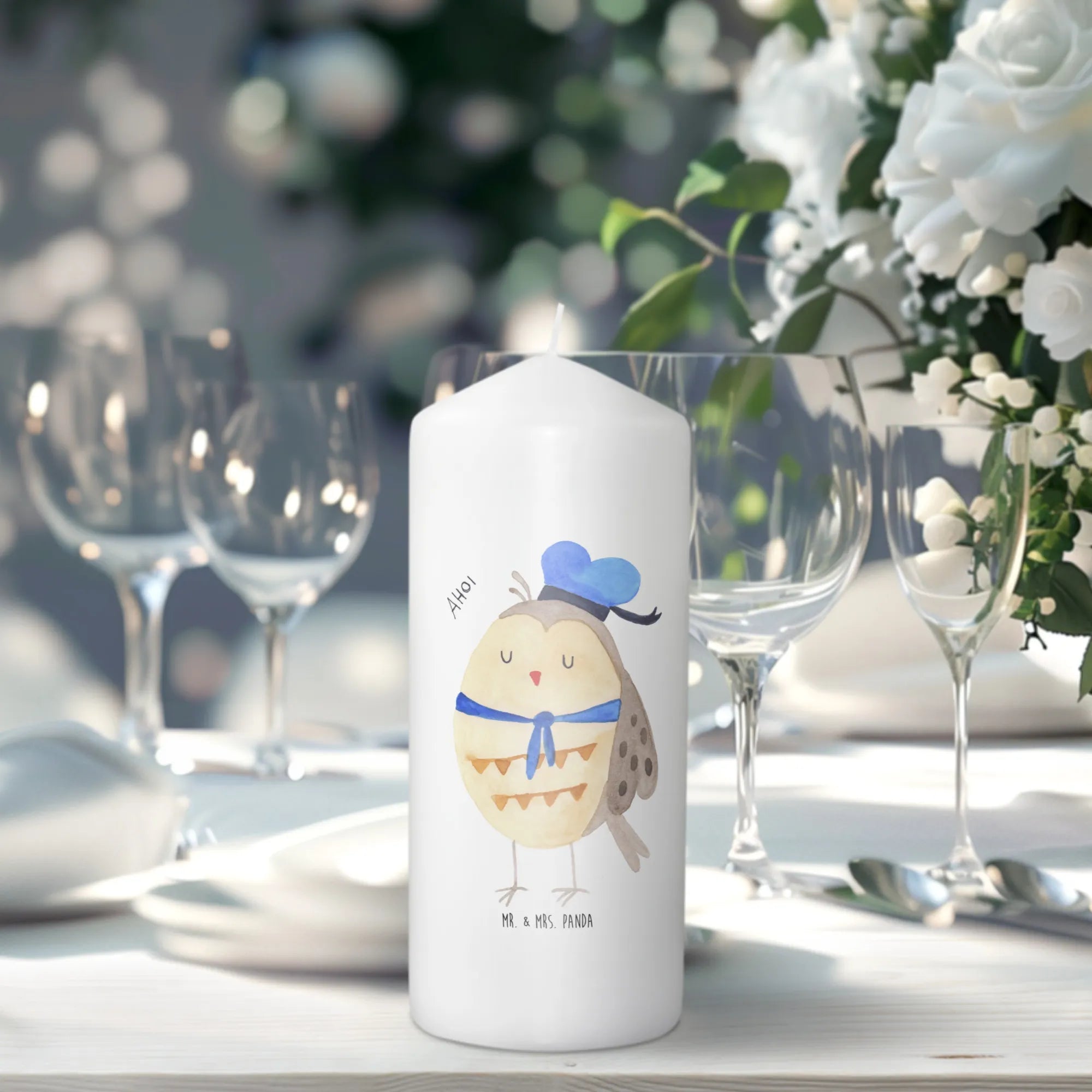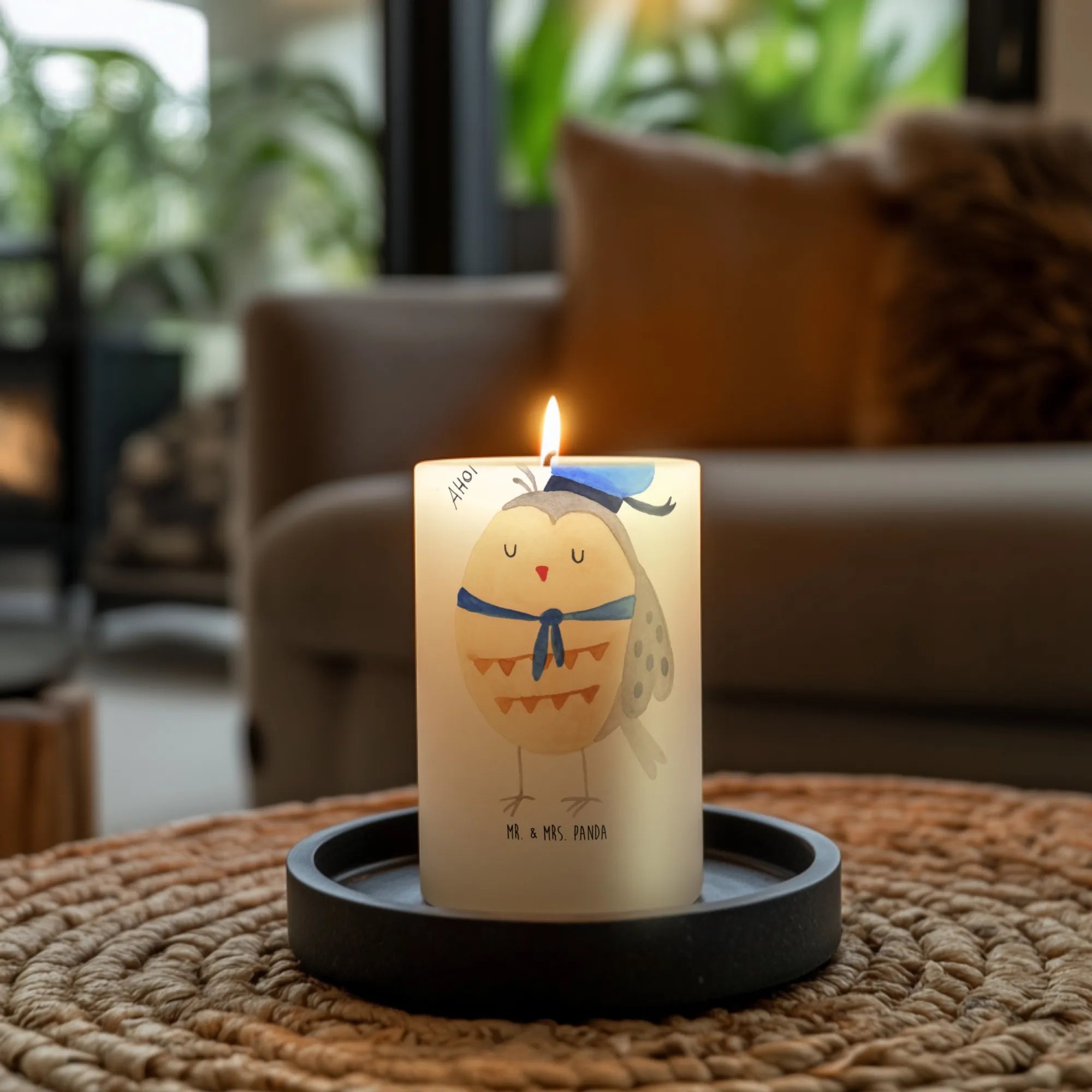 Die Eule Matrosen Kerze von Mr. & Mrs. Panda ist ein liebevolles Geschenk für Jung und Alt. Diese bezaubernde Kerze besteht aus hochwertigem Paraffinwachs und begeistert durch ihr einzigartiges Design einer niedlichen Eule im Matrosenhut.