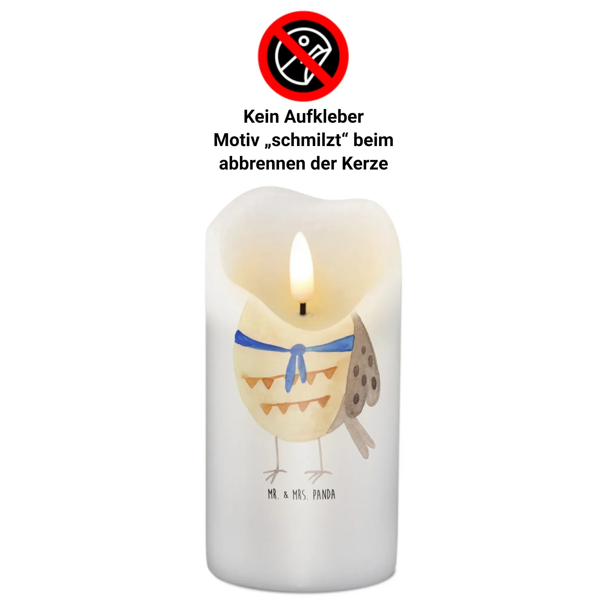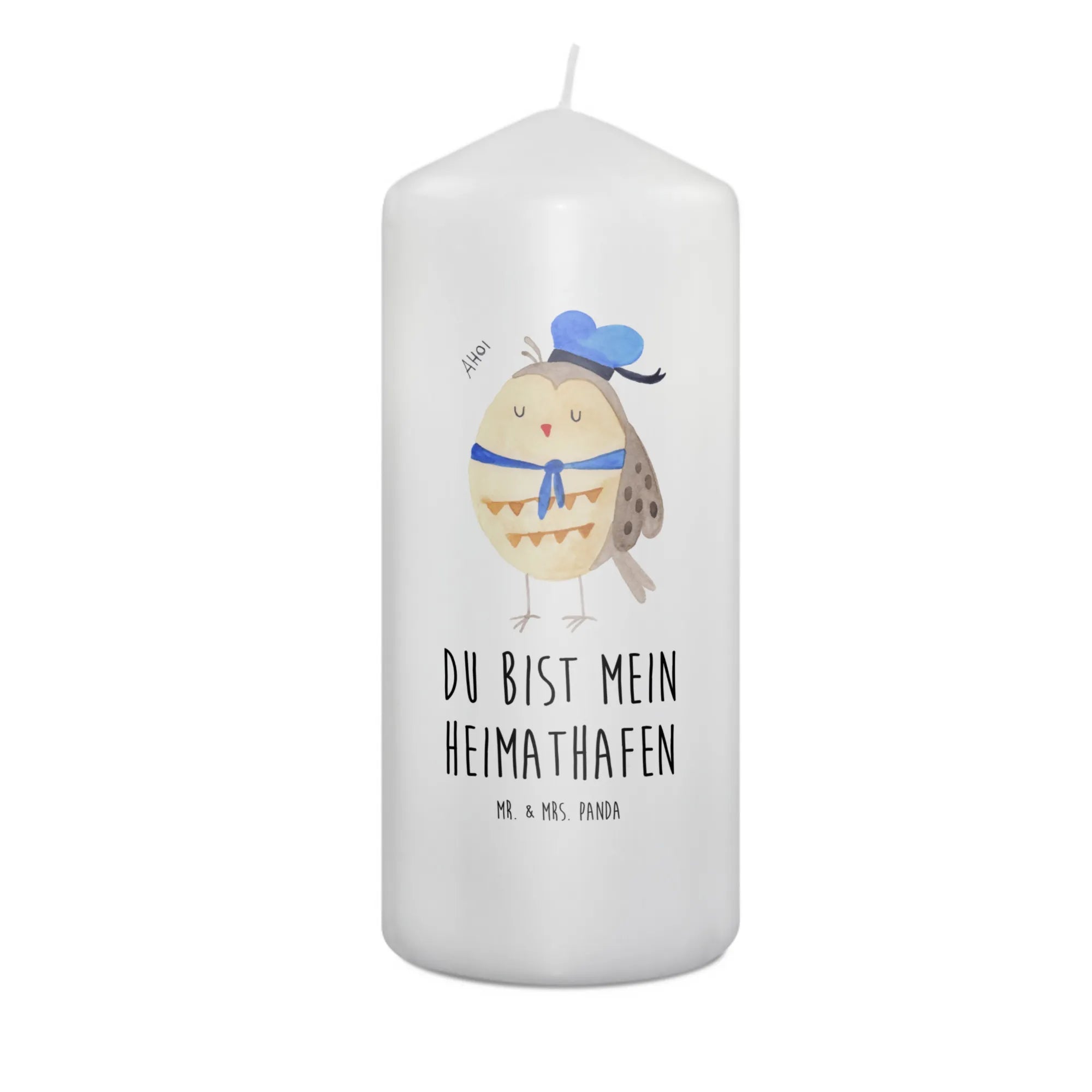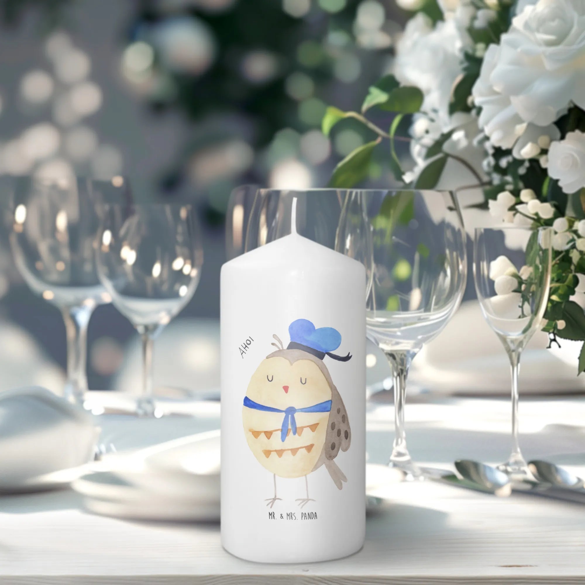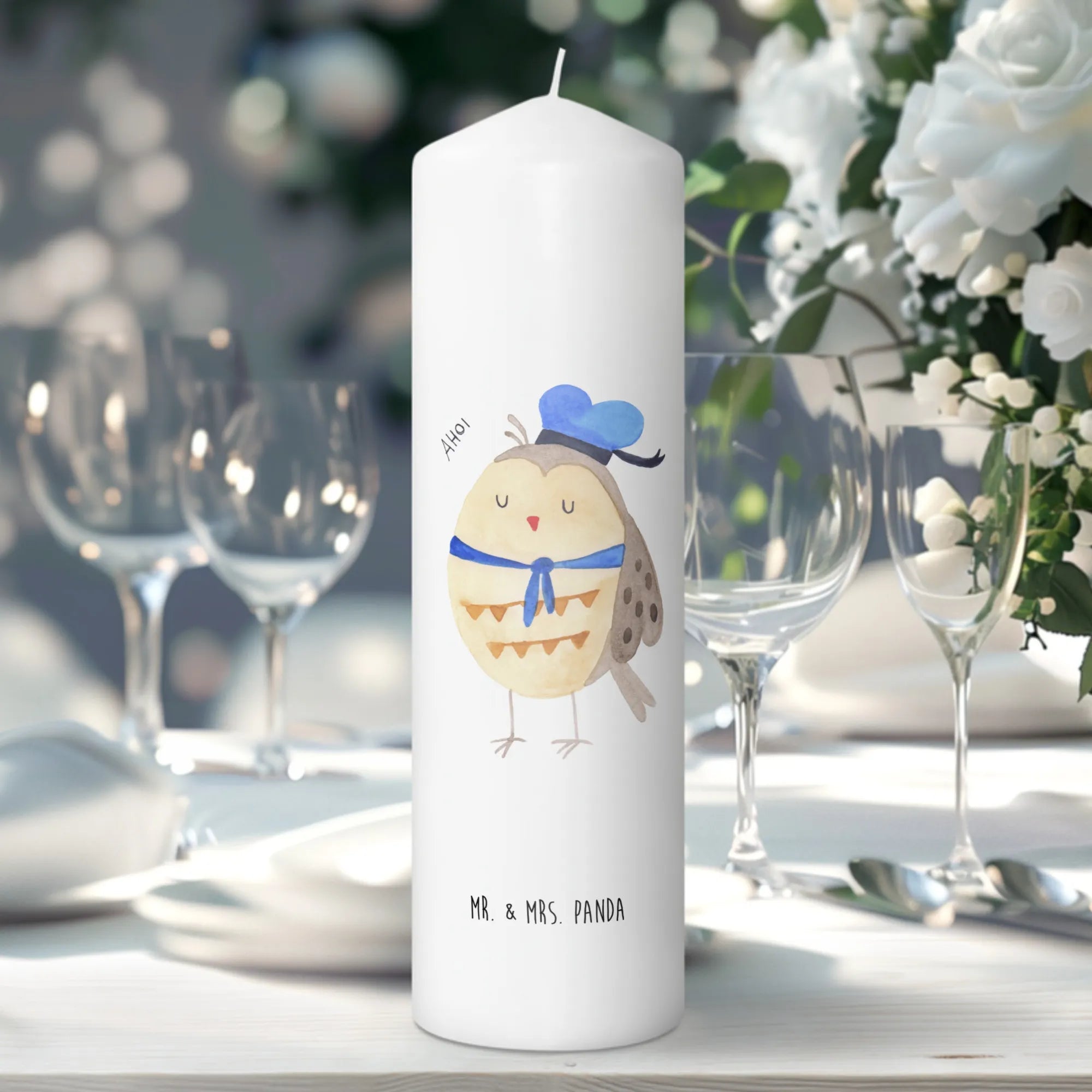 Die Eule Matrosen Kerze von Mr. & Mrs. Panda ist ein liebevolles Geschenk für Jung und Alt. Diese bezaubernde Kerze besteht aus hochwertigem Paraffinwachs und begeistert durch ihr einzigartiges Design einer niedlichen Eule im Matrosenhut.