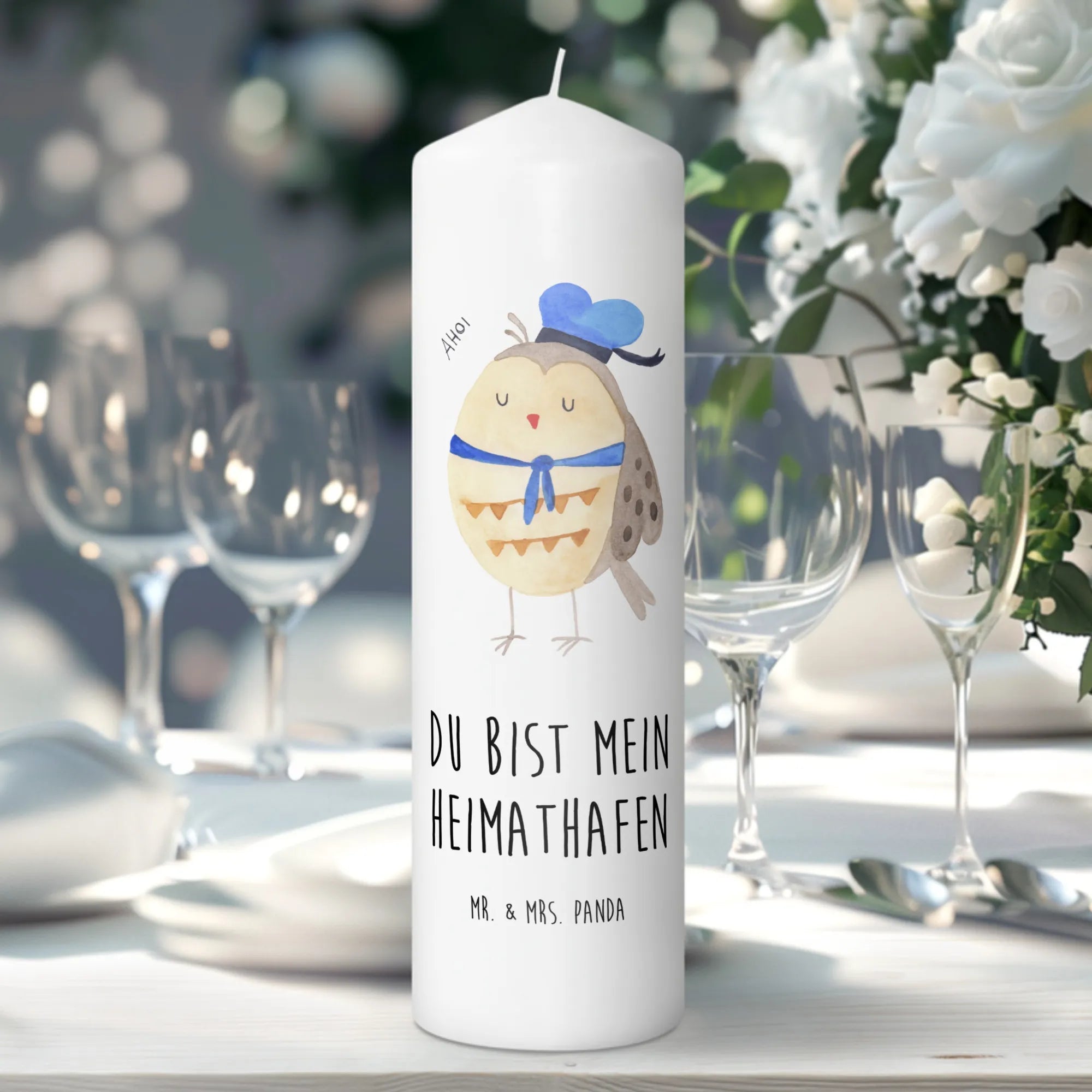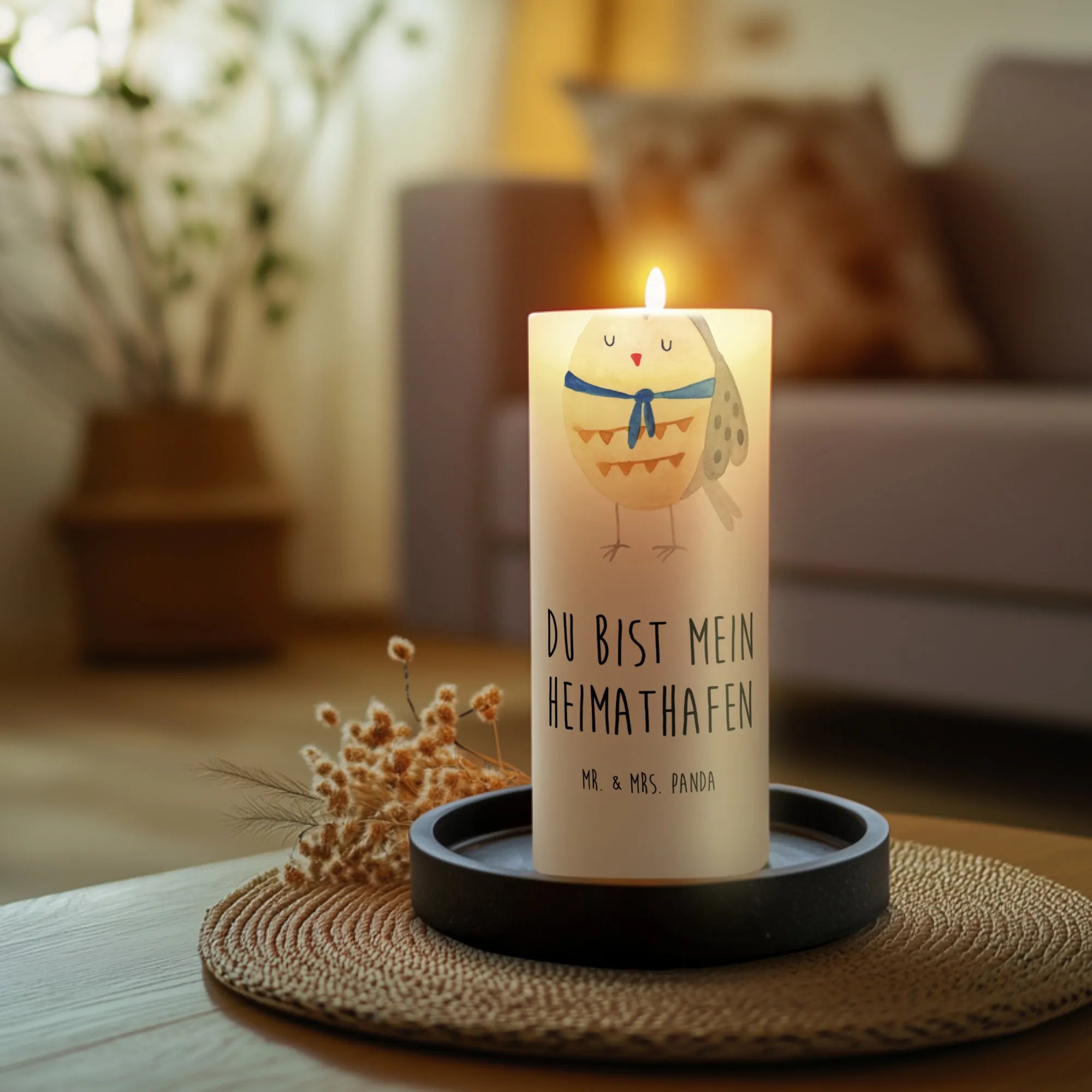 Die Eule Matrosen Kerze von Mr. & Mrs. Panda ist mehr als nur eine einfache Kerze. Sie ist ein zauberhaftes Geschenk, das Freude, Liebe und eine ganz besondere Botschaft vermittelt. Mit ihrem charmanten Matrosenhut und dem Spruch "Du bist mein Heimathafen" bringt sie ein Stückchen Seele in jedes Zuhause.
