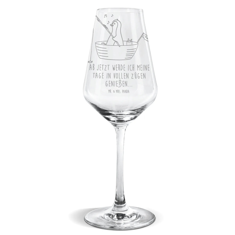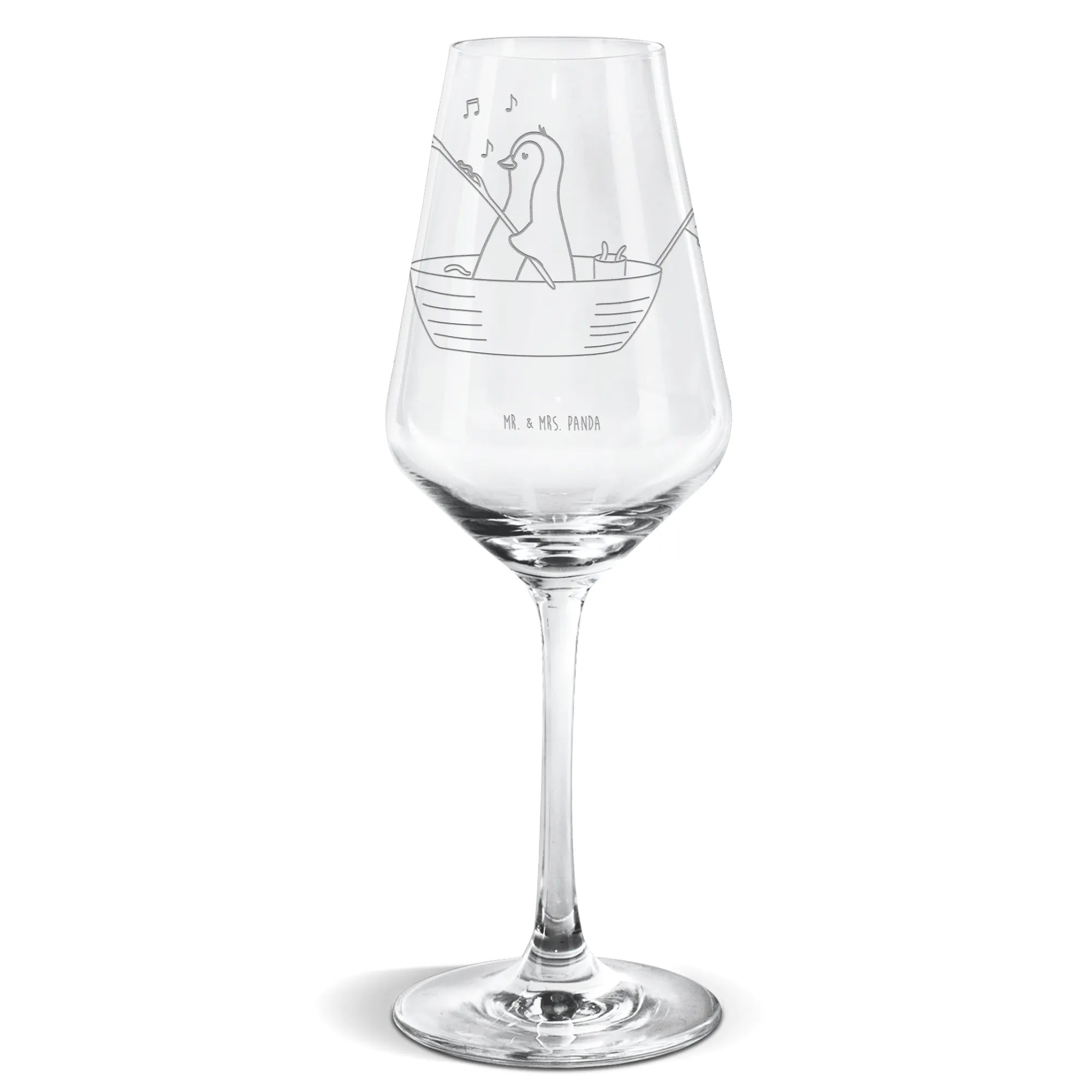 Entdecke das Mr. & Mrs. Panda Weißweinglas „Pinguin Angelboot“