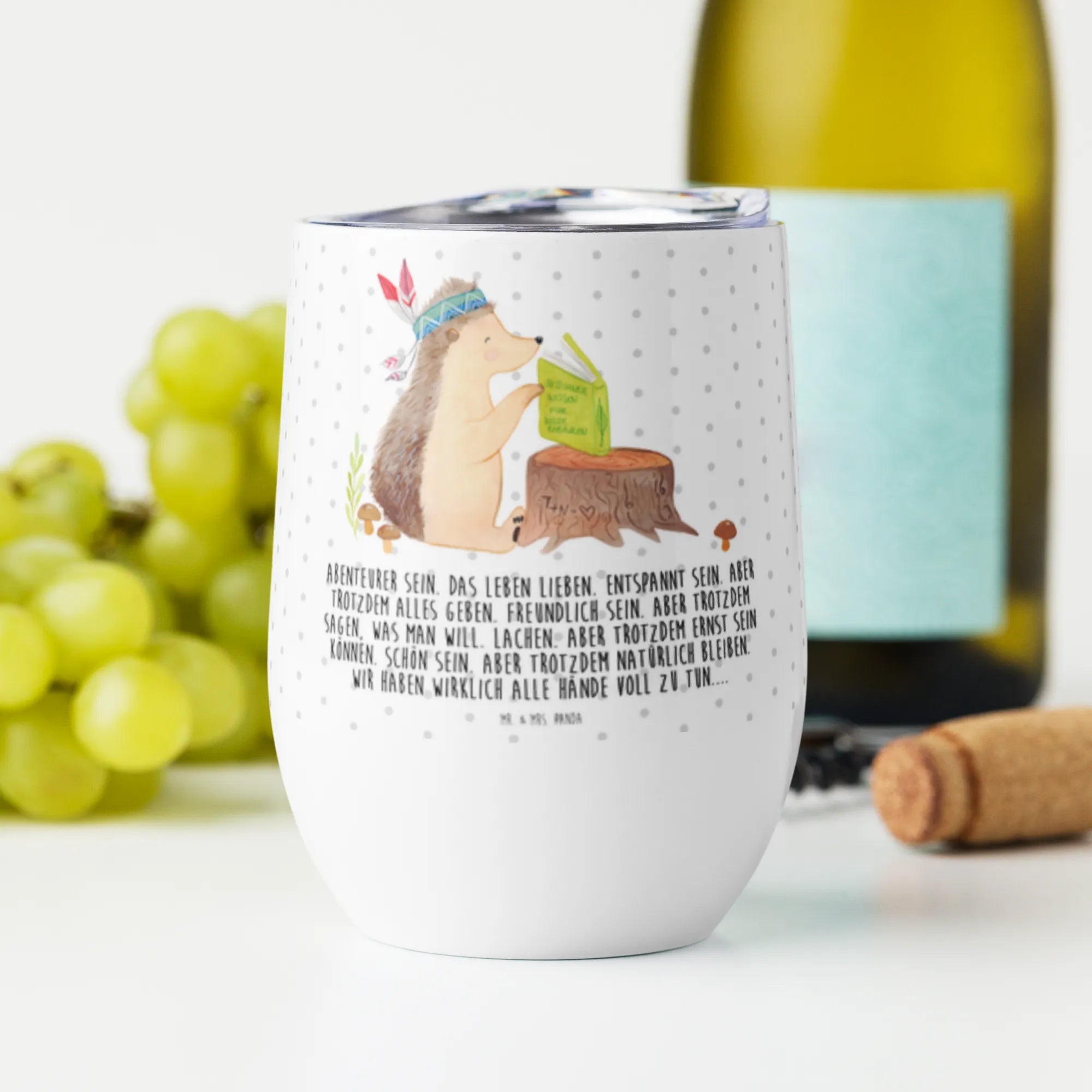 Kieliszek do wina jeż Ozdoba z piór - mit Spruch