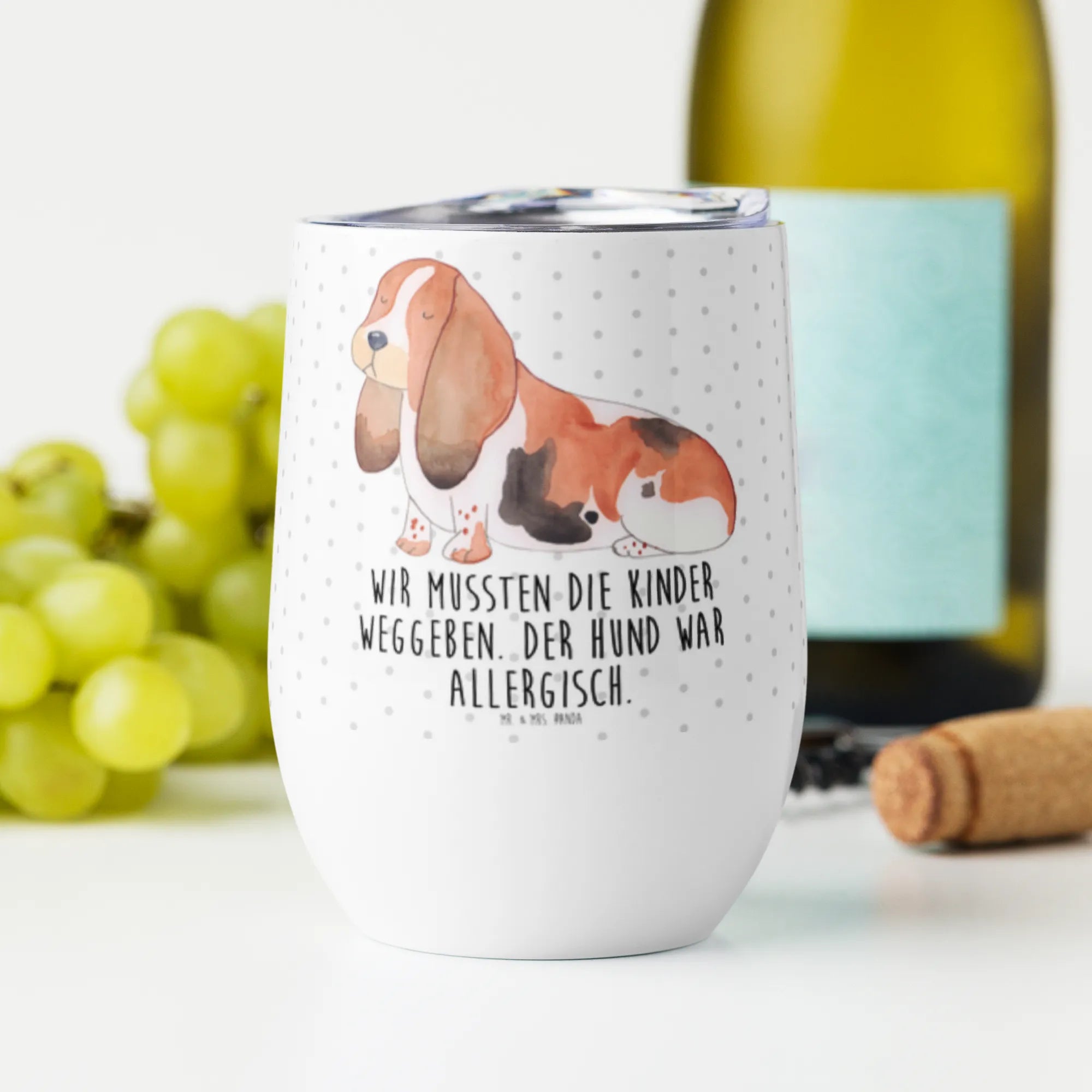 Kieliszek do wina pies Basset Hound - z napisem