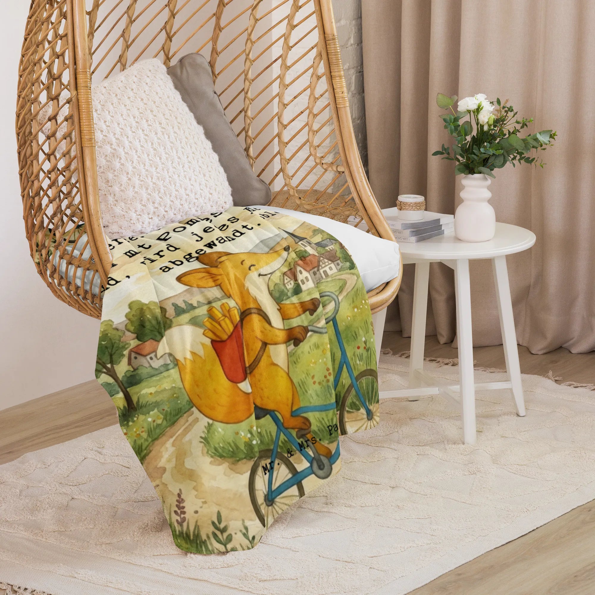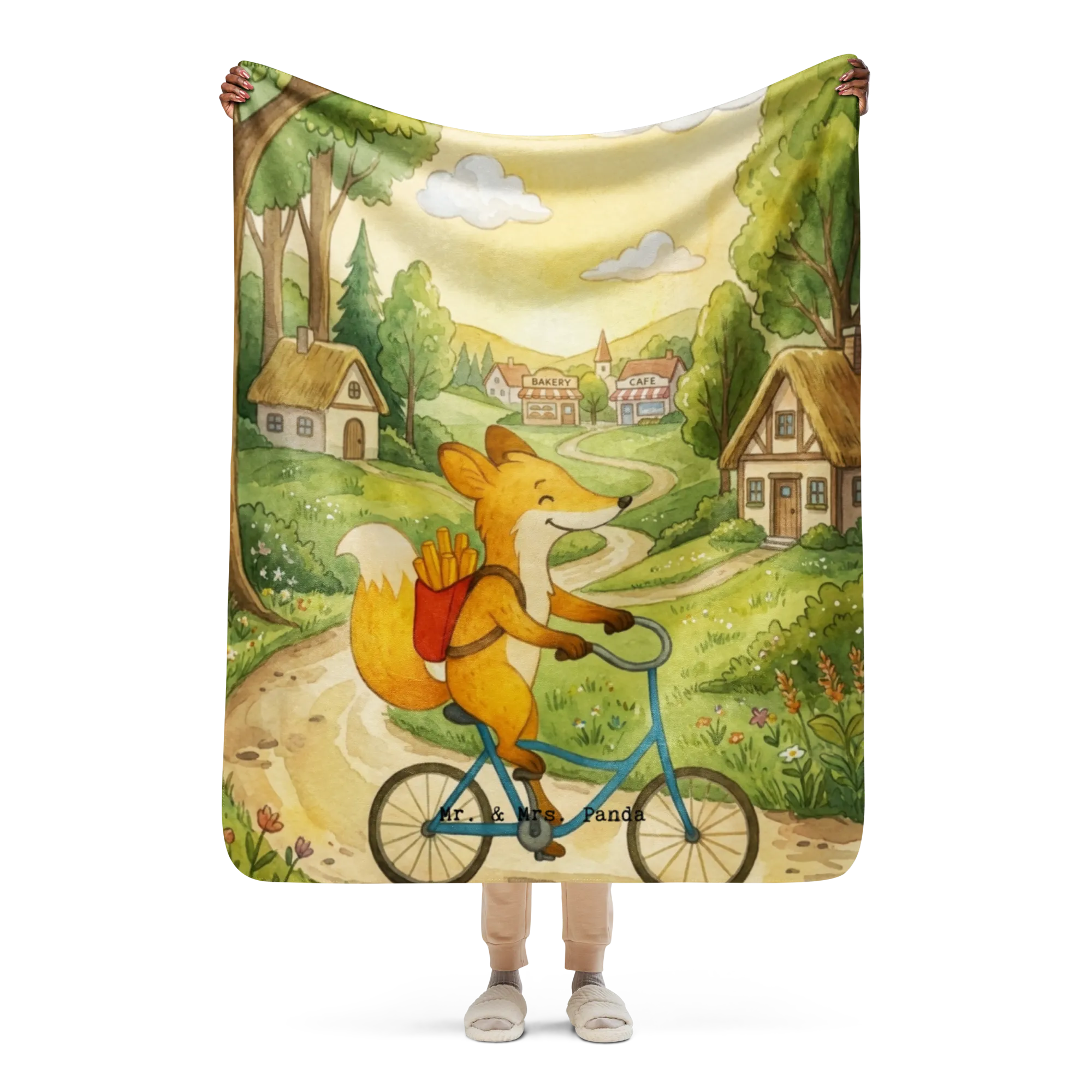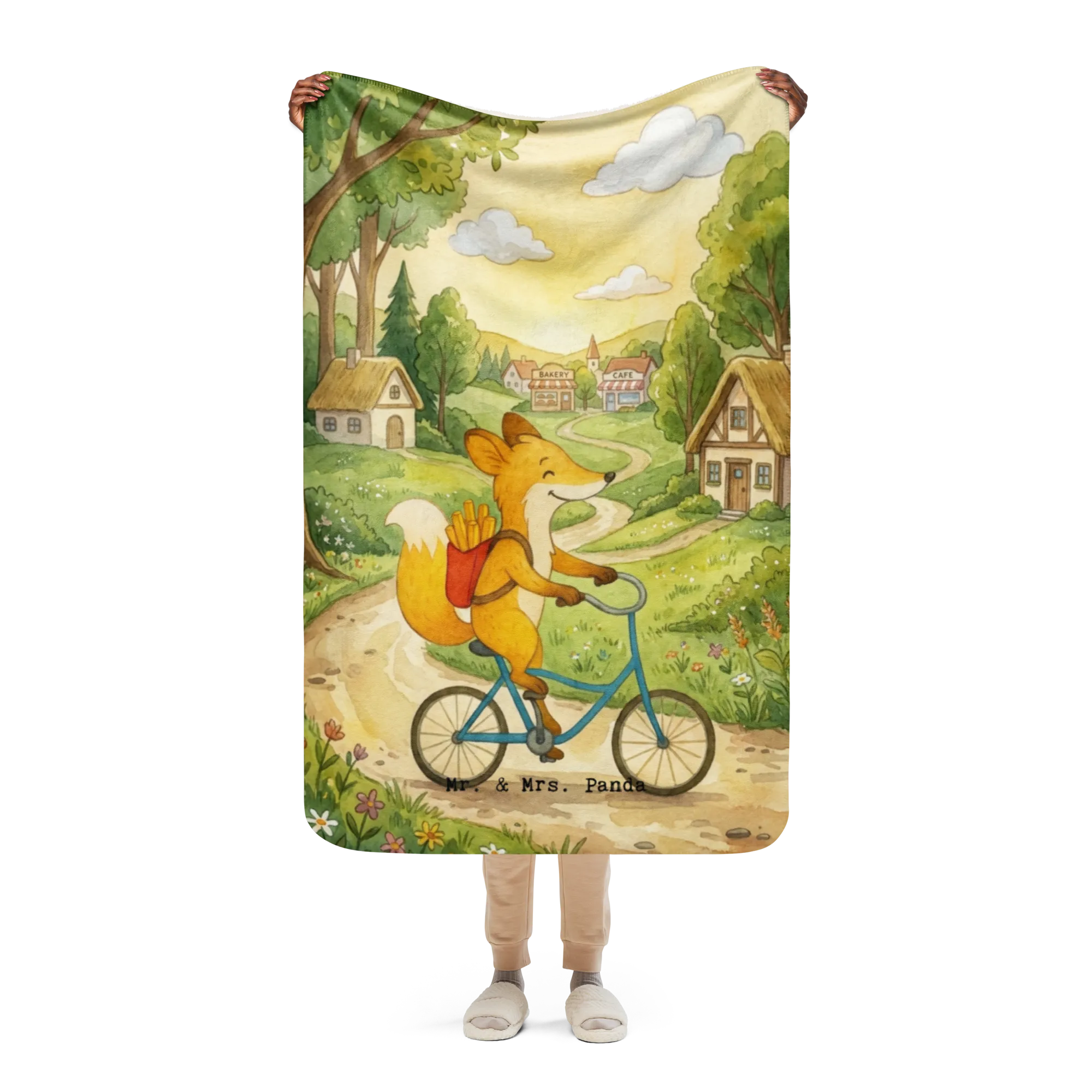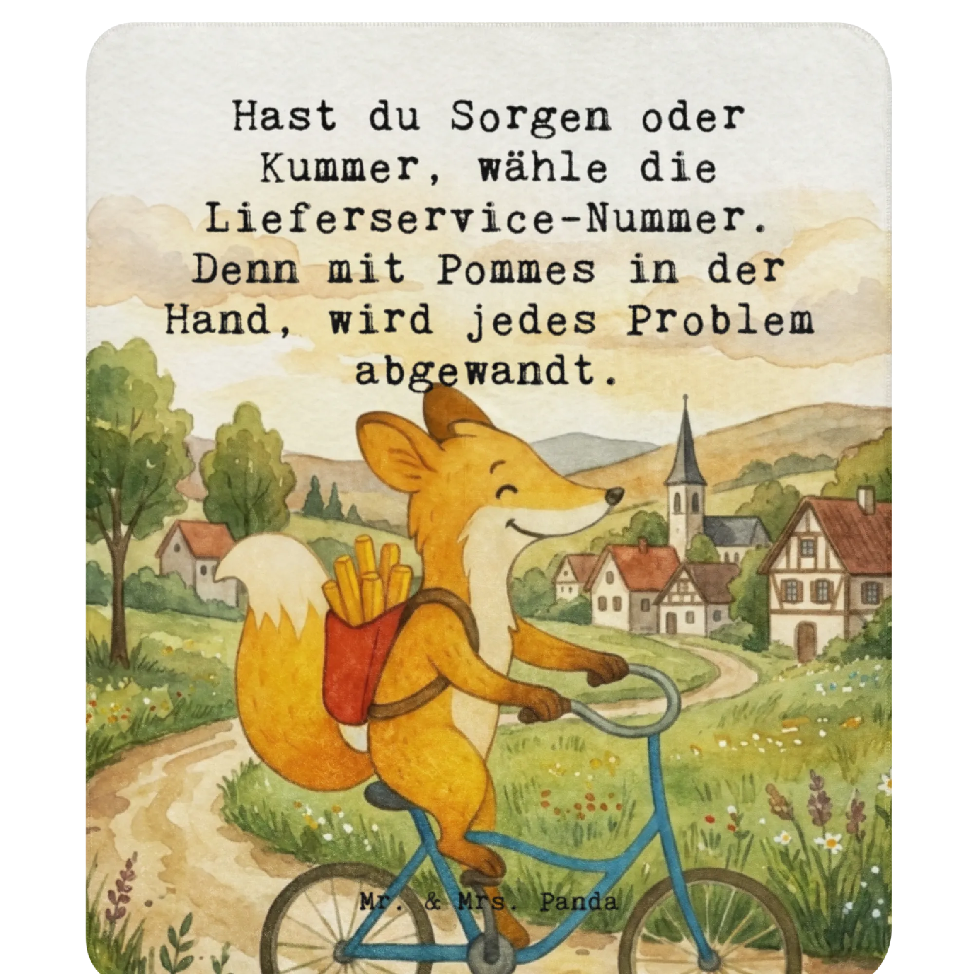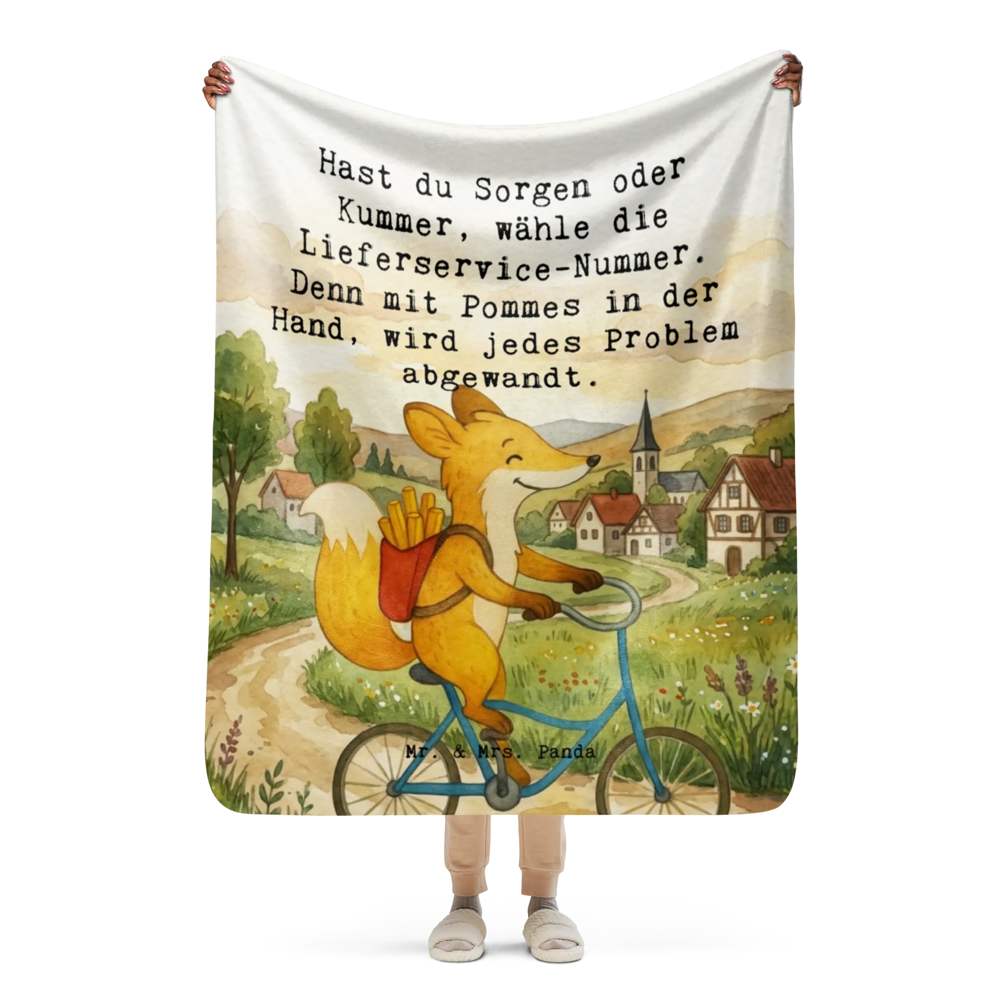 Koc Sherpa Fuchs Lieferung Pommes Design - 130 x 155 cm - z napisem