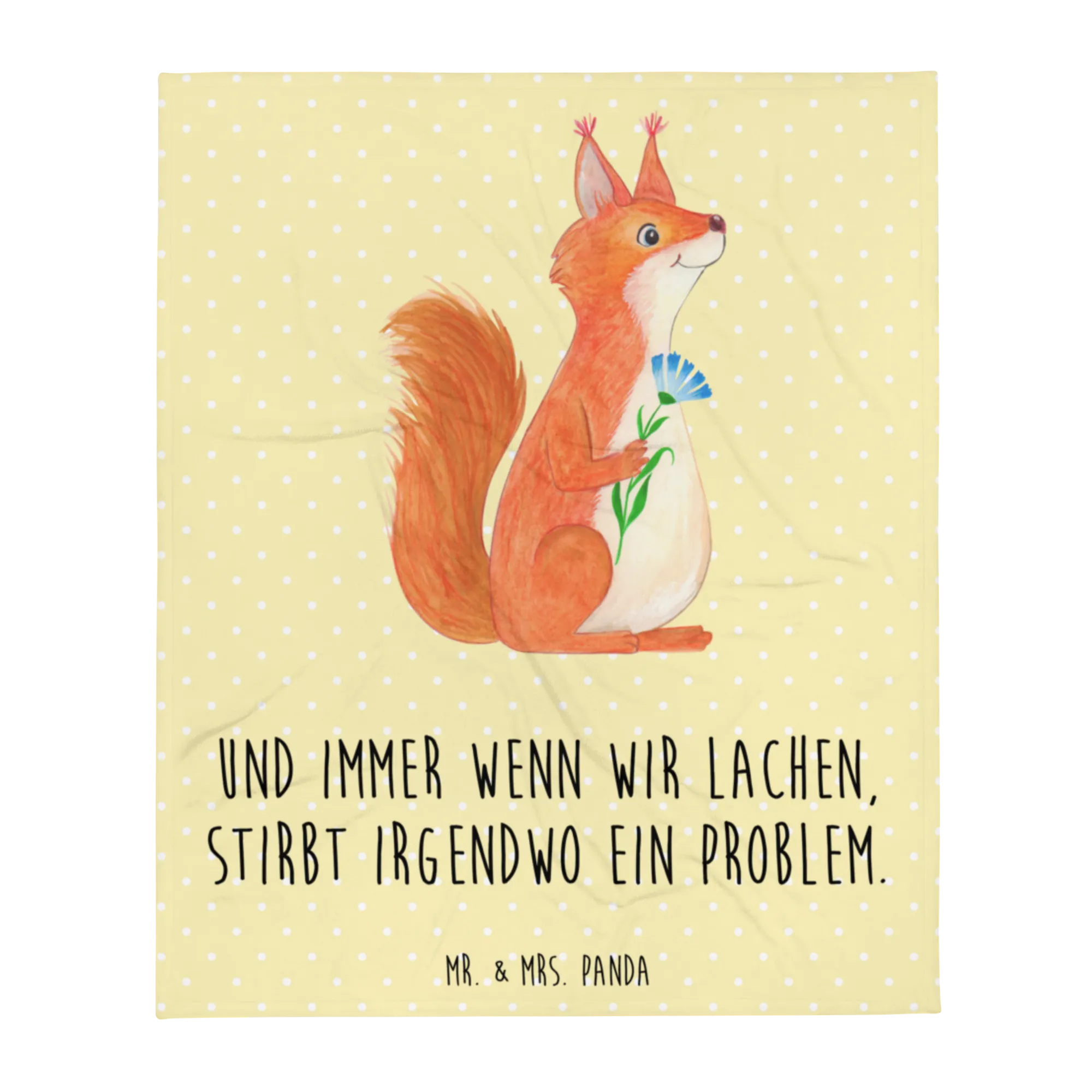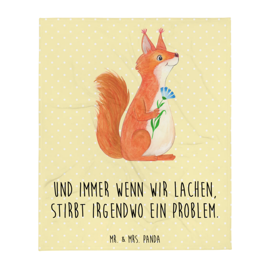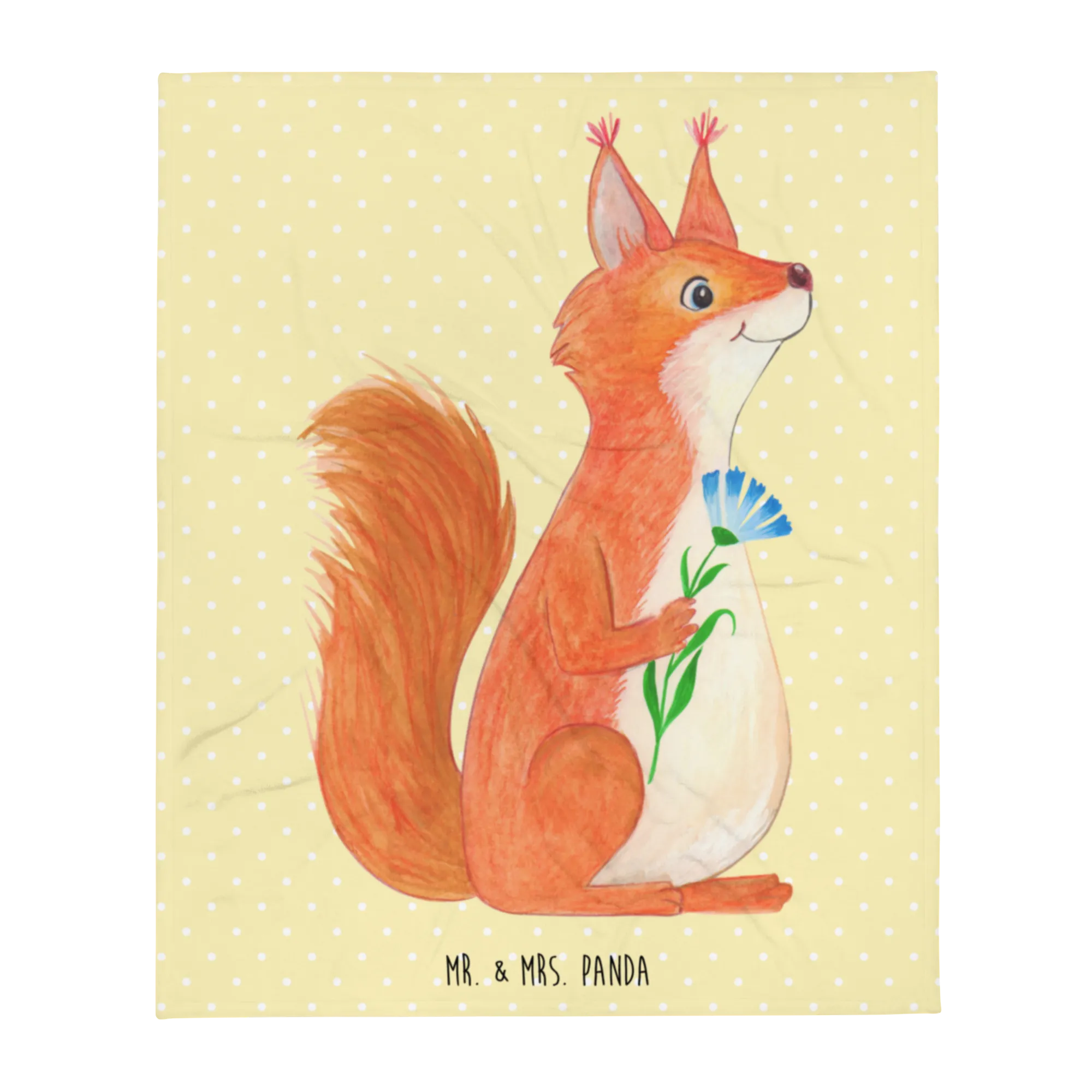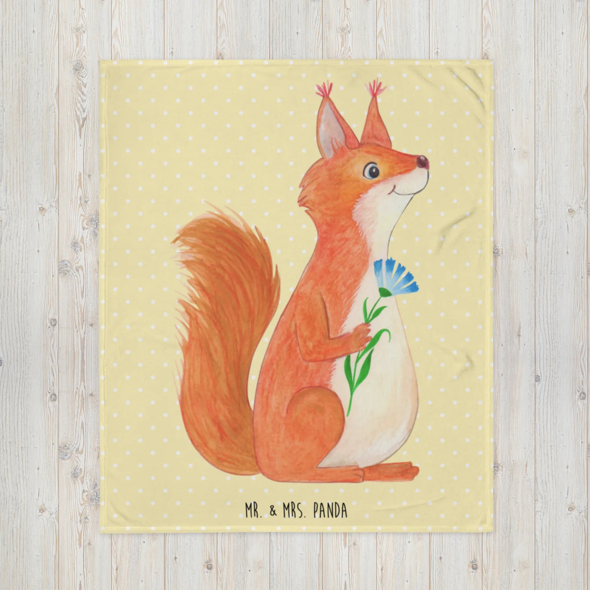 Koc wiewiórka kwiat - z napisem - Pastelowy żółty