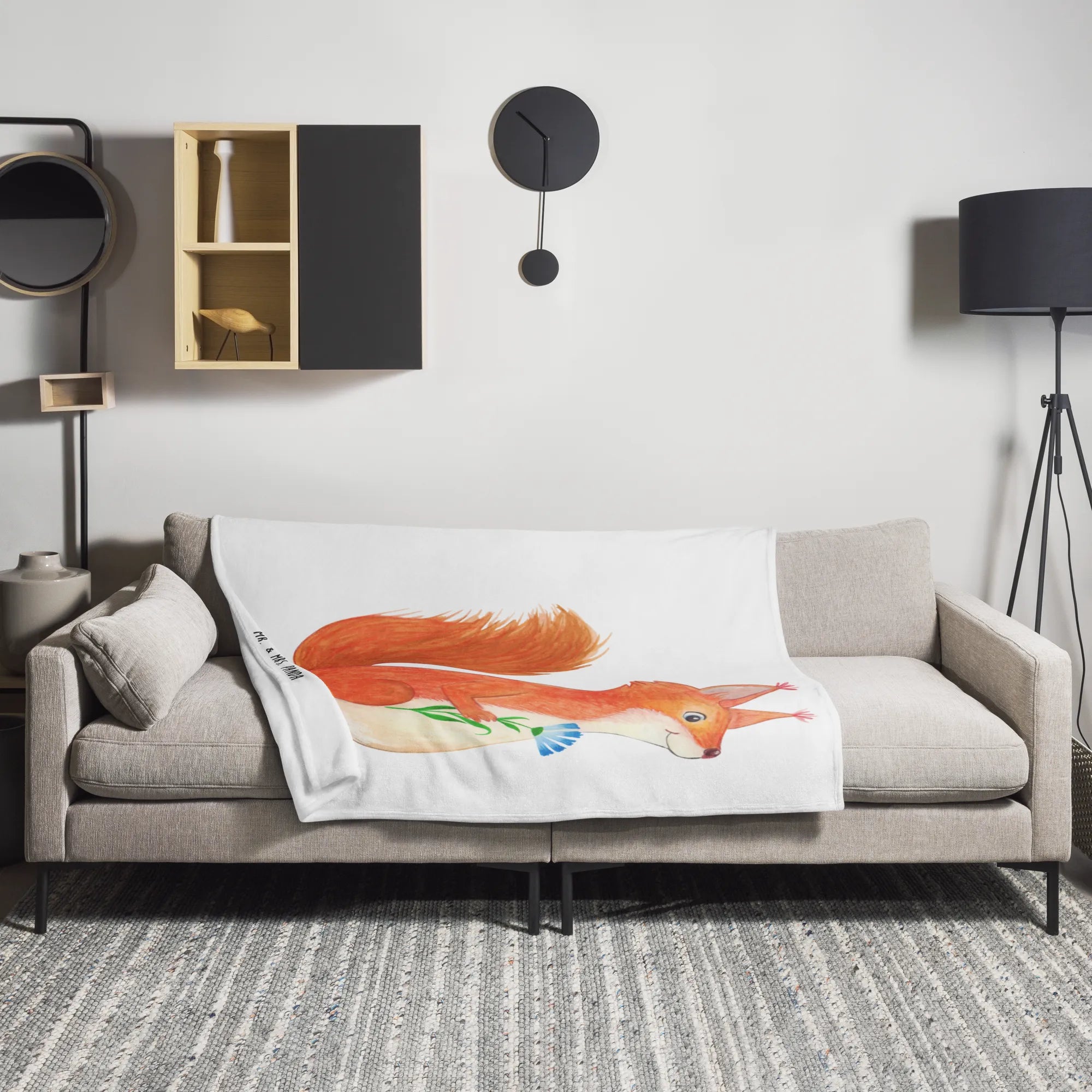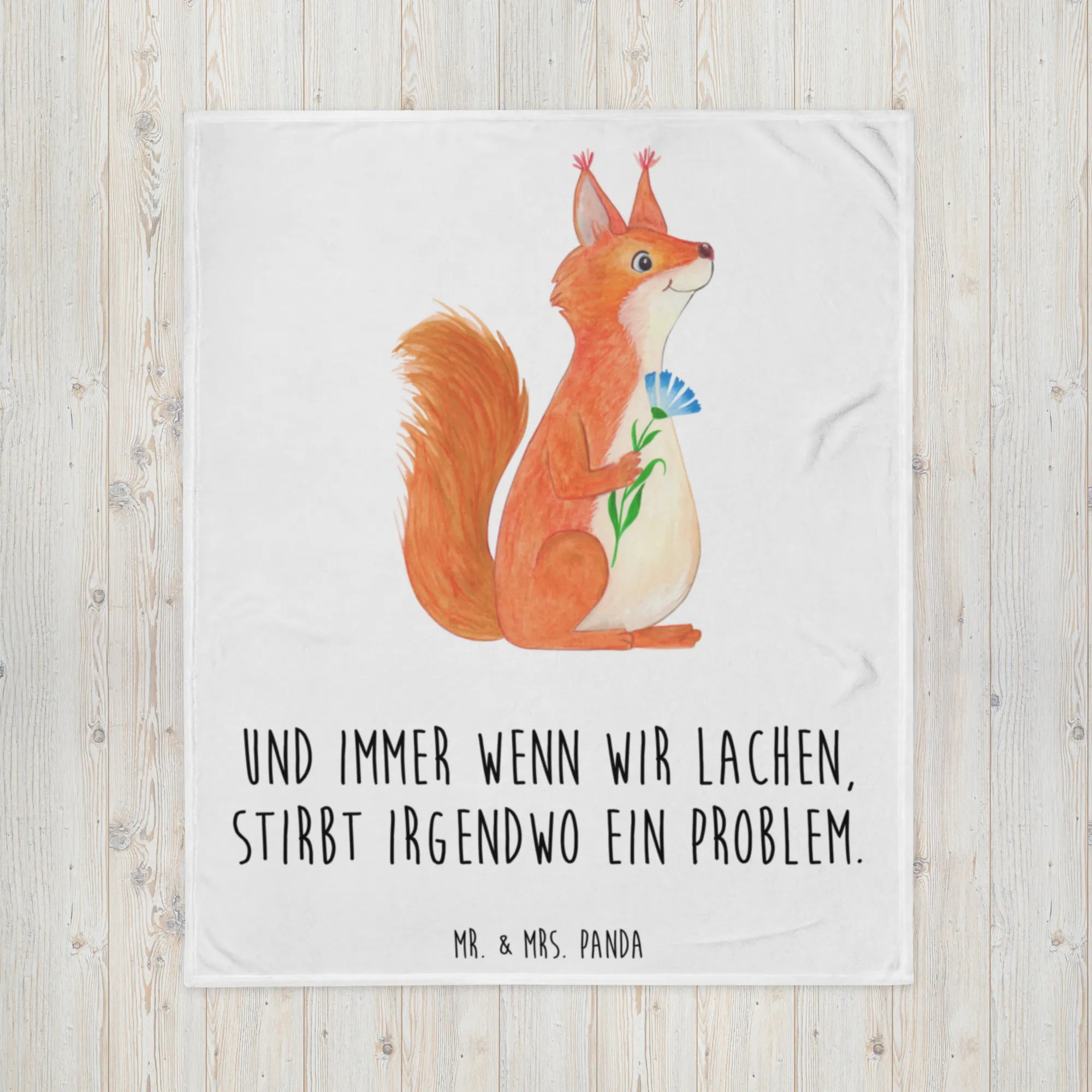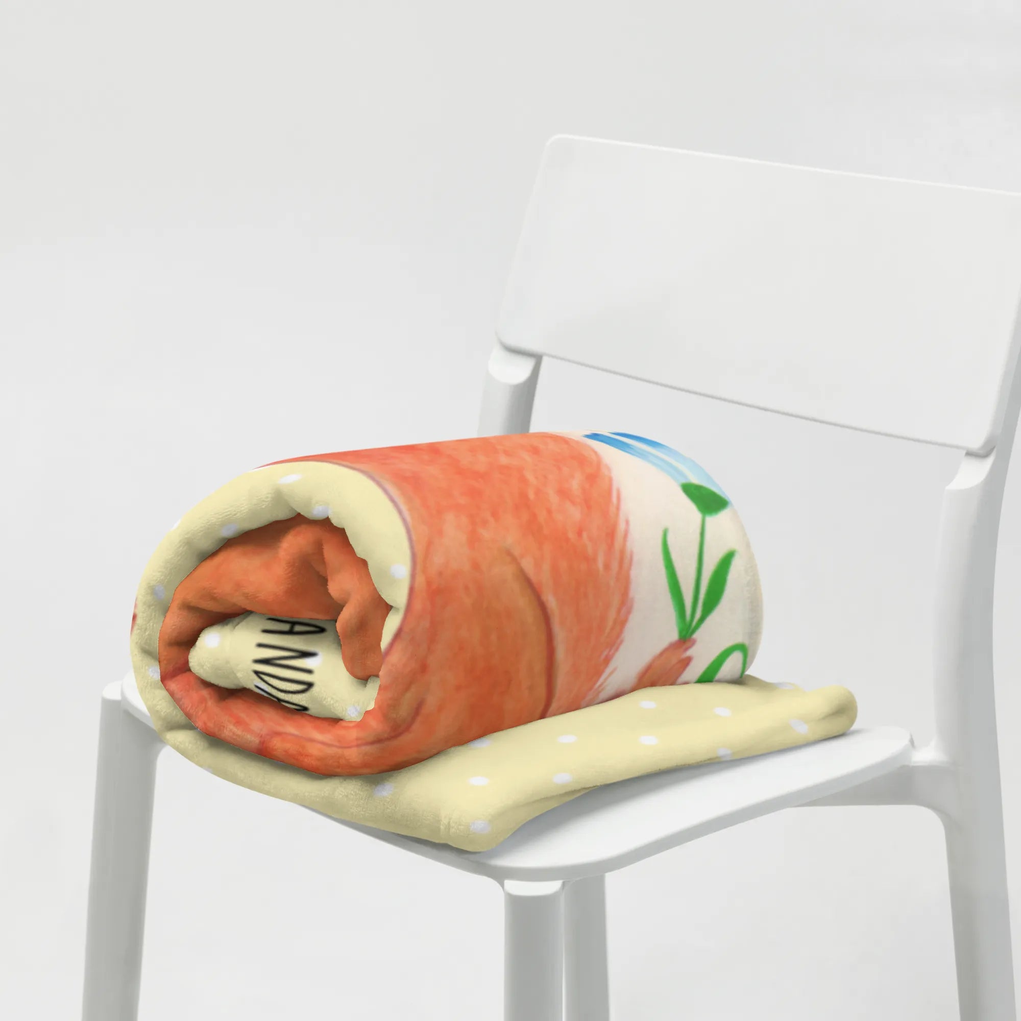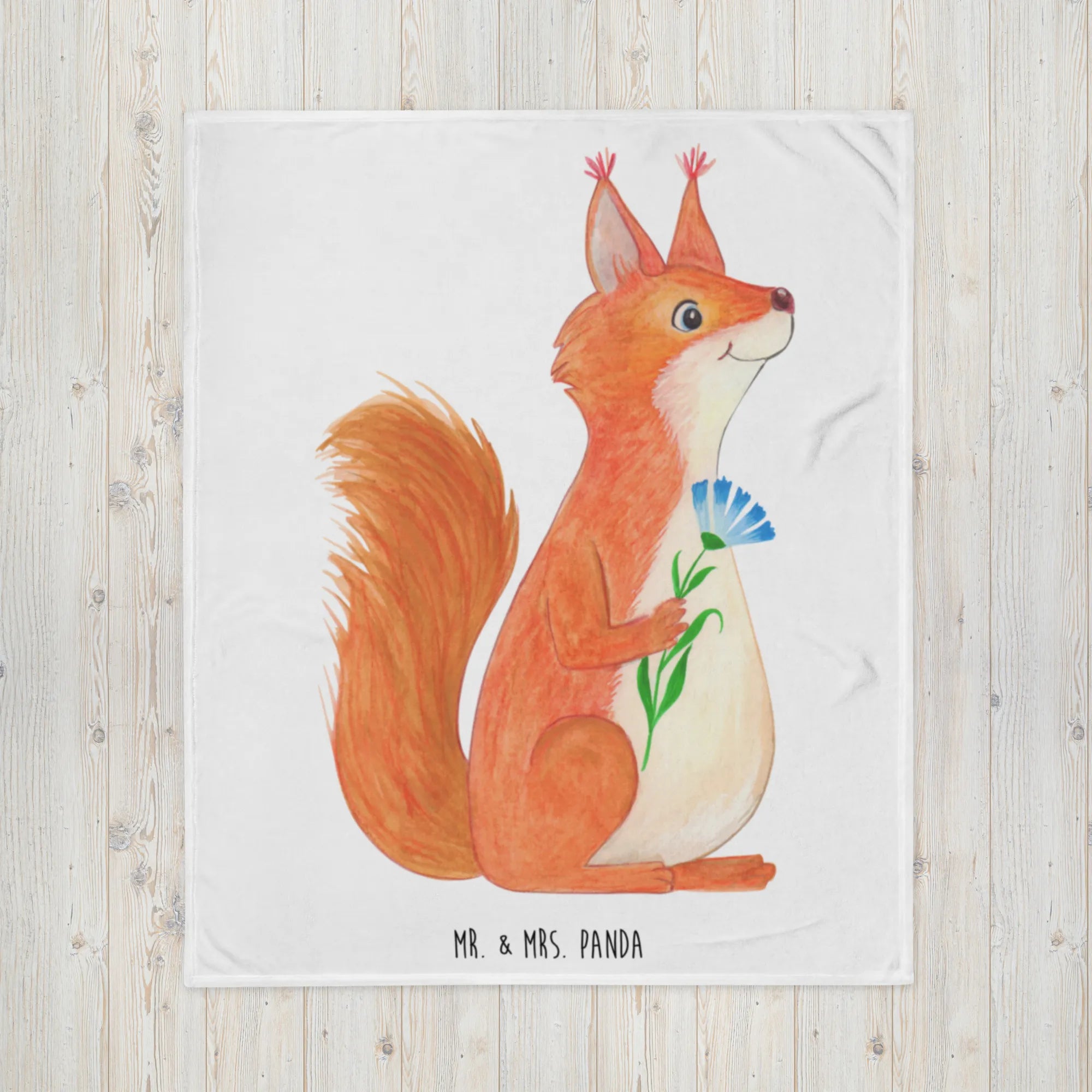 Koc wiewiórka kwiat - z napisem - Pastelowy żółty