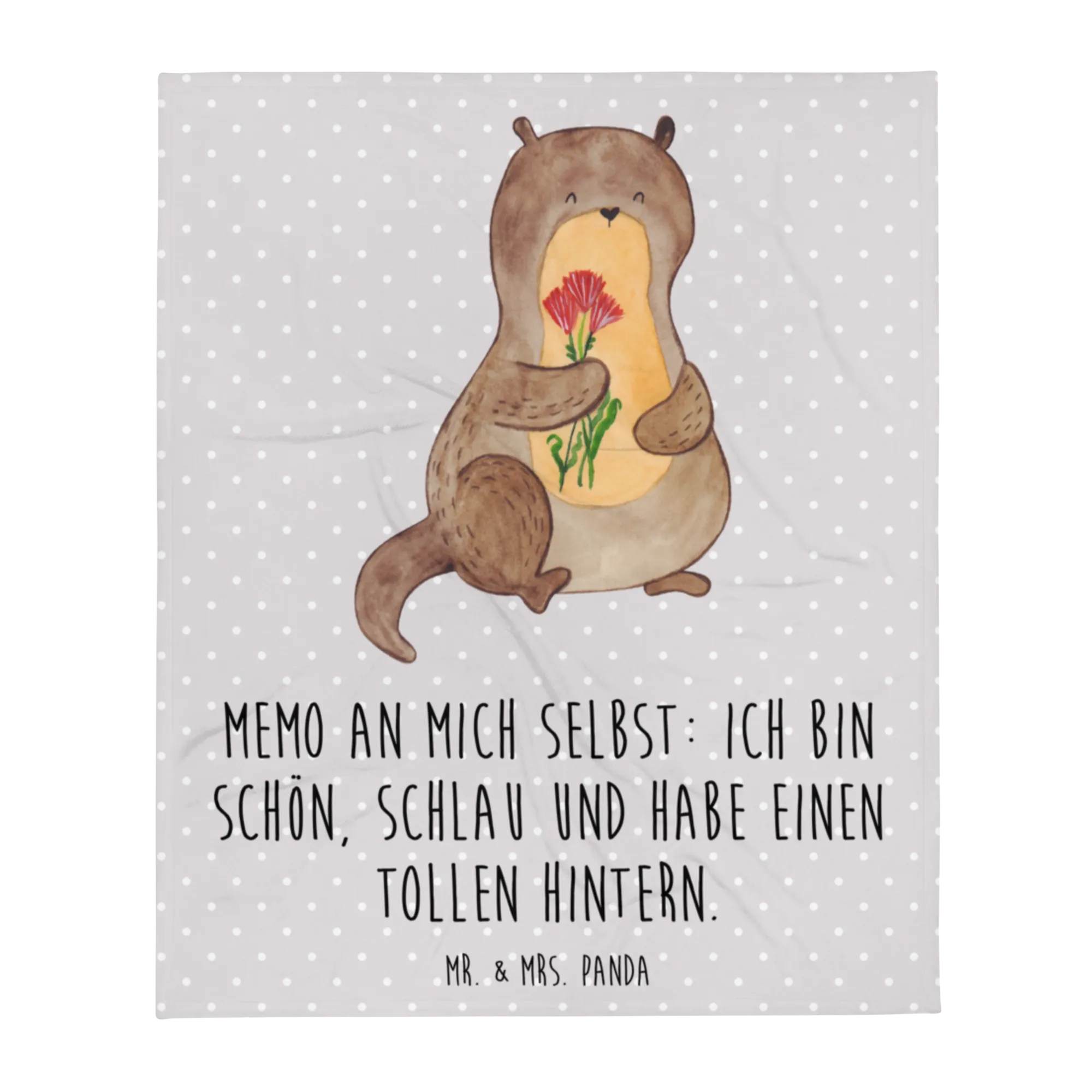 Koc wydra bukiet kwiatów - z napisem - Pastelowy szary