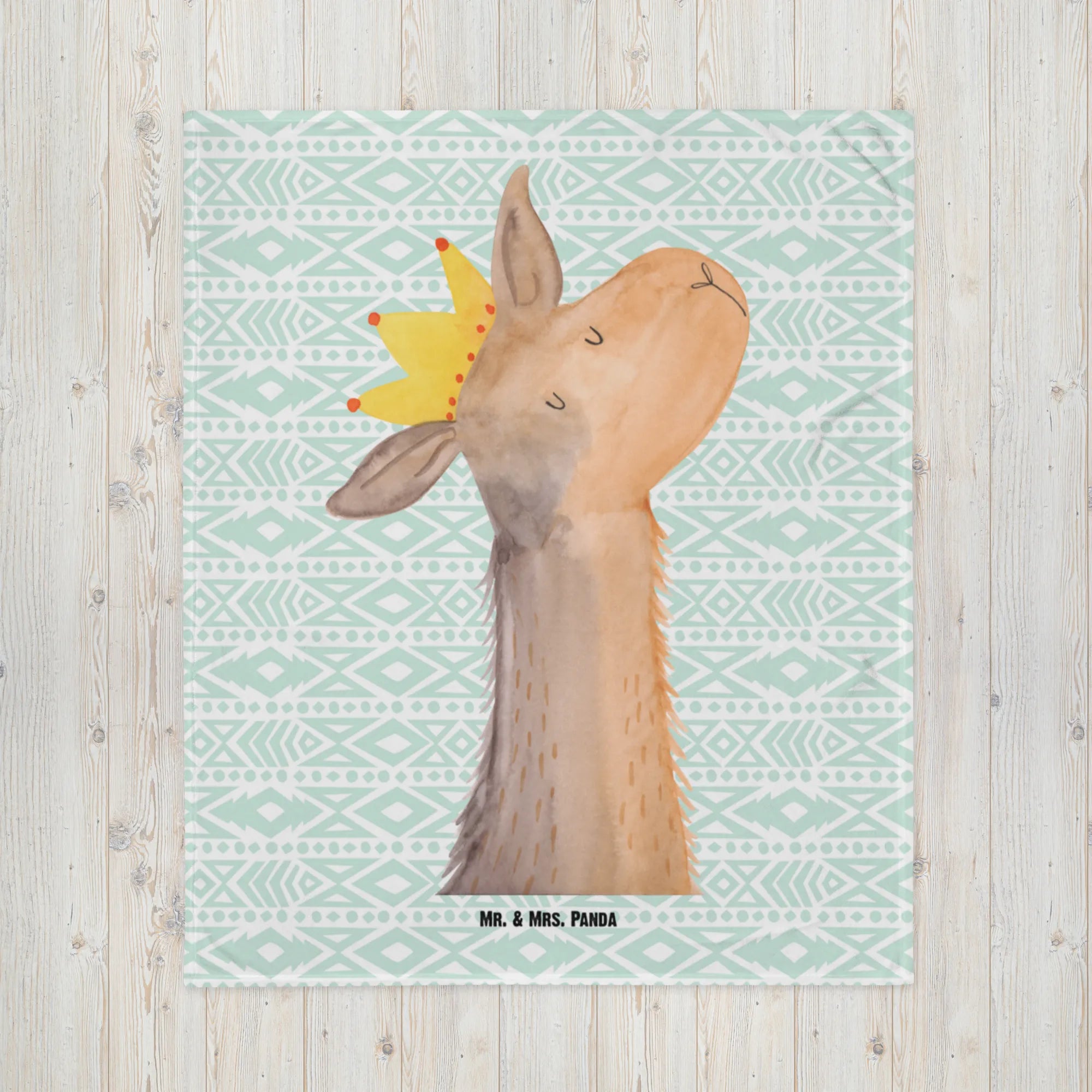 Kocyk dla niemowląt Głowa lamy król - z napisem - biały