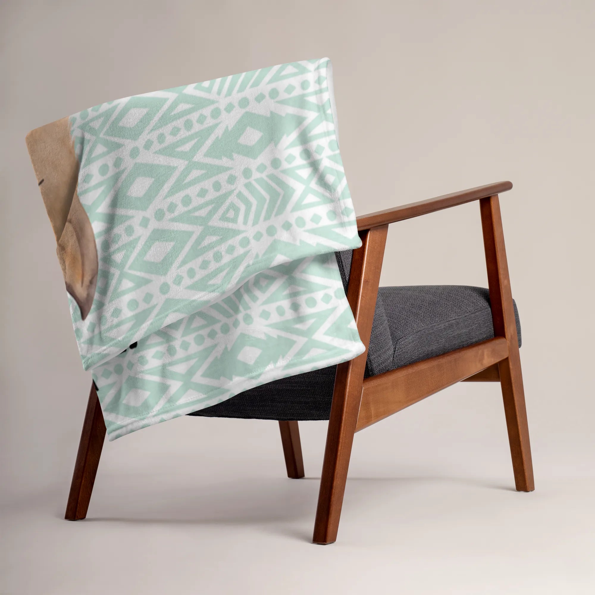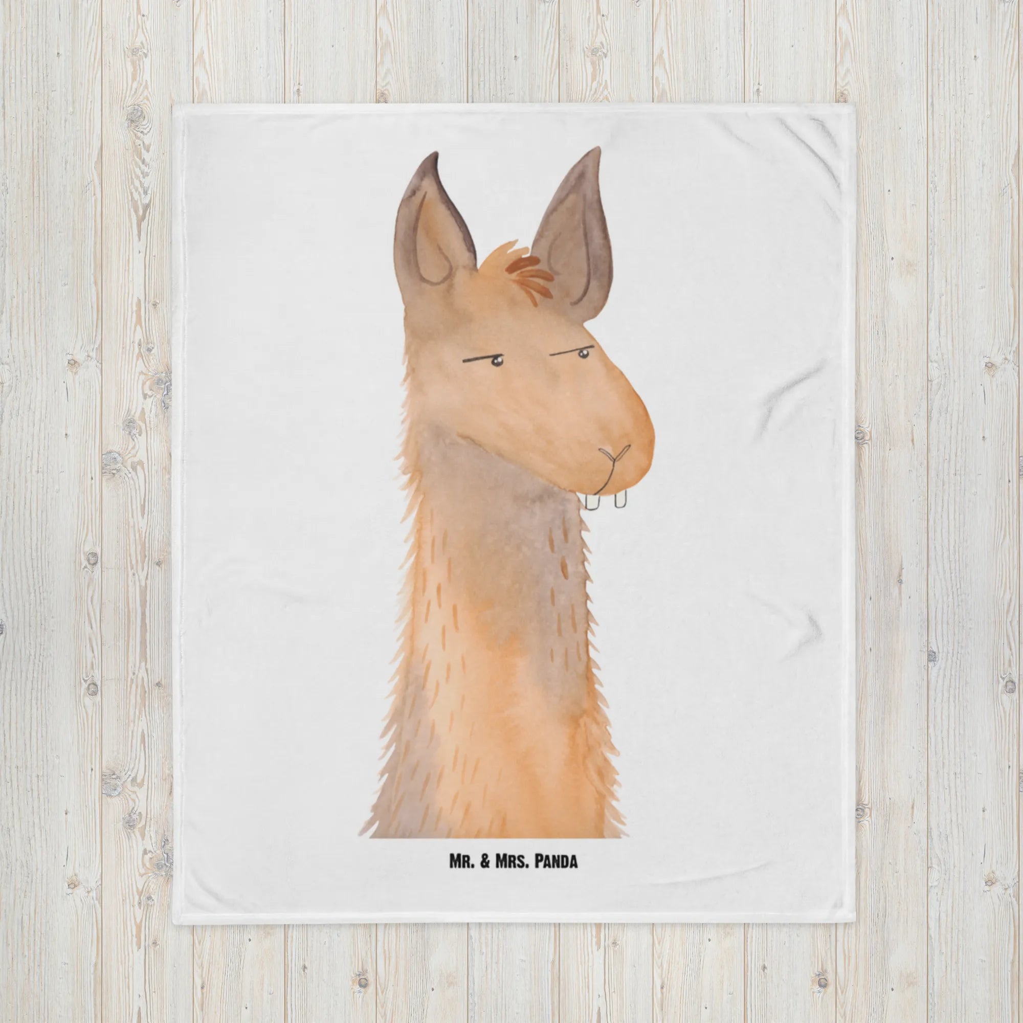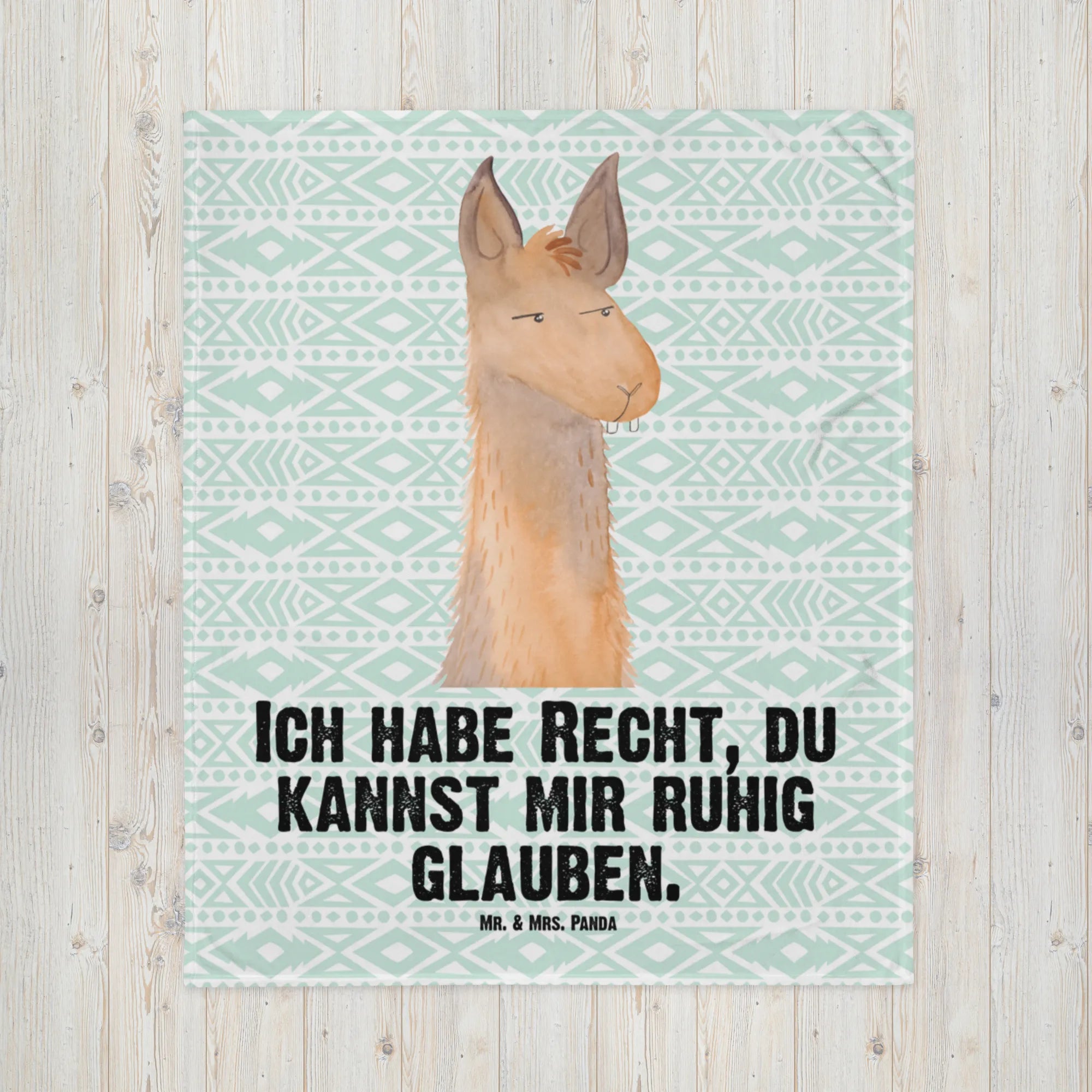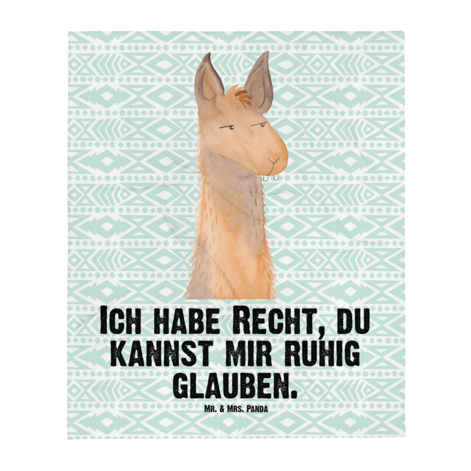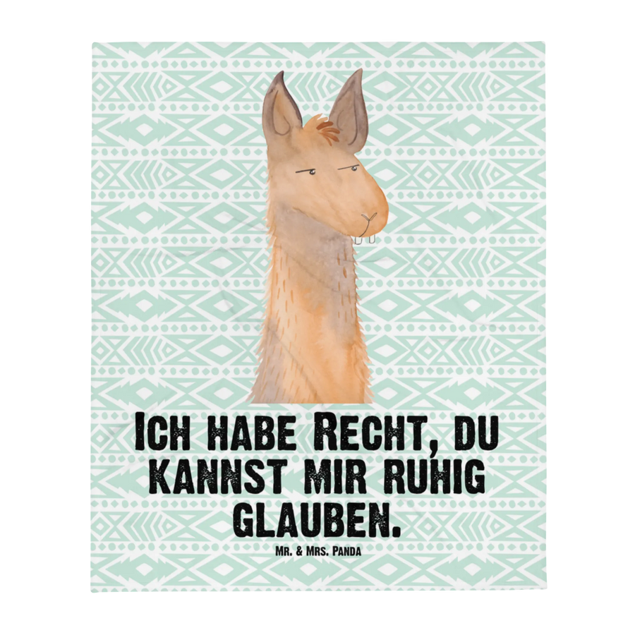 Kocyk dla niemowląt głowa lamy zirytowany - z napisem - aztecki niebieski