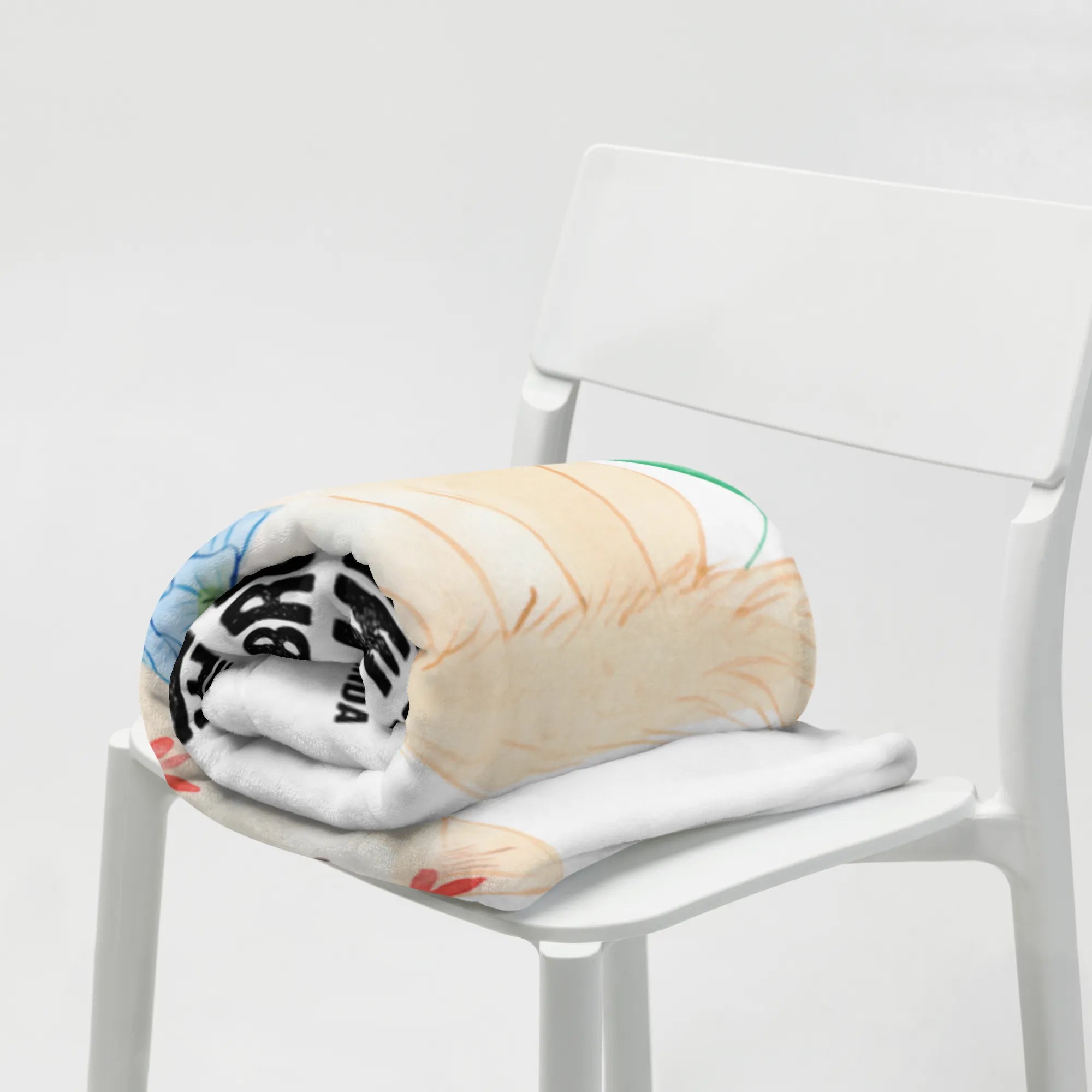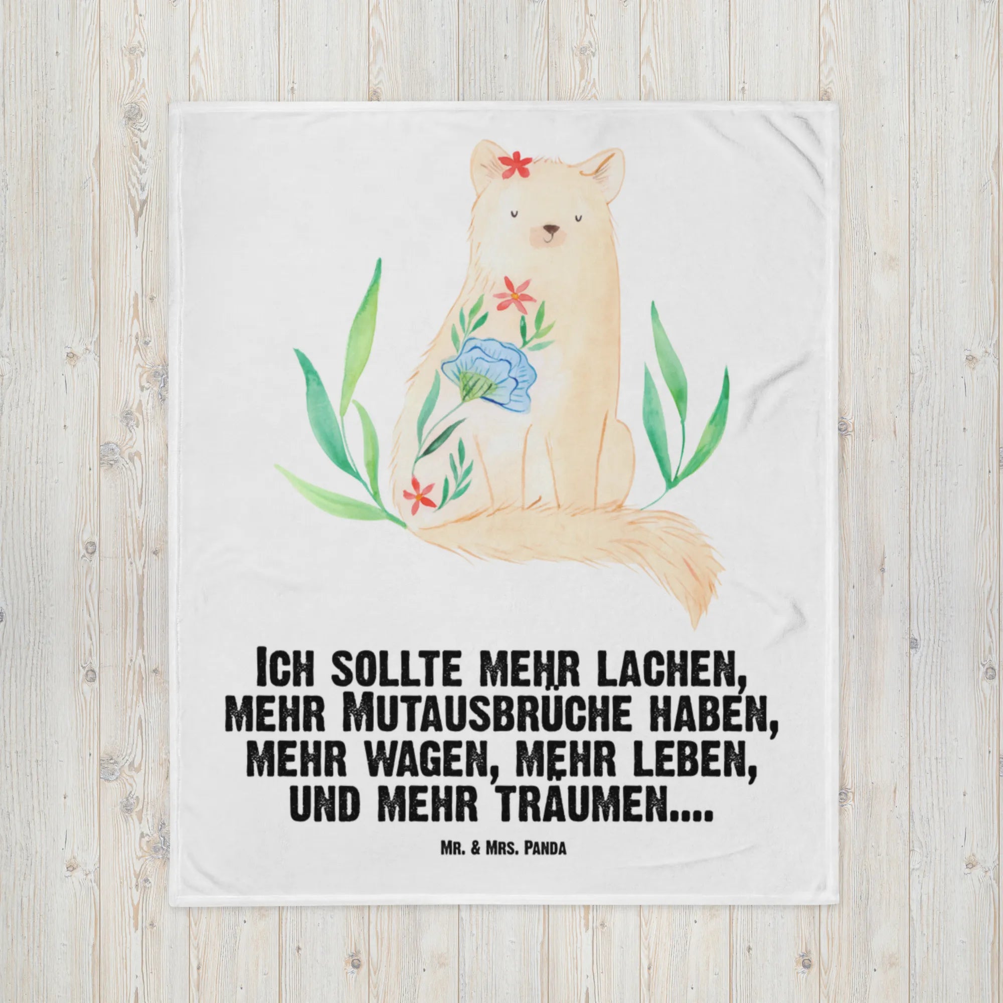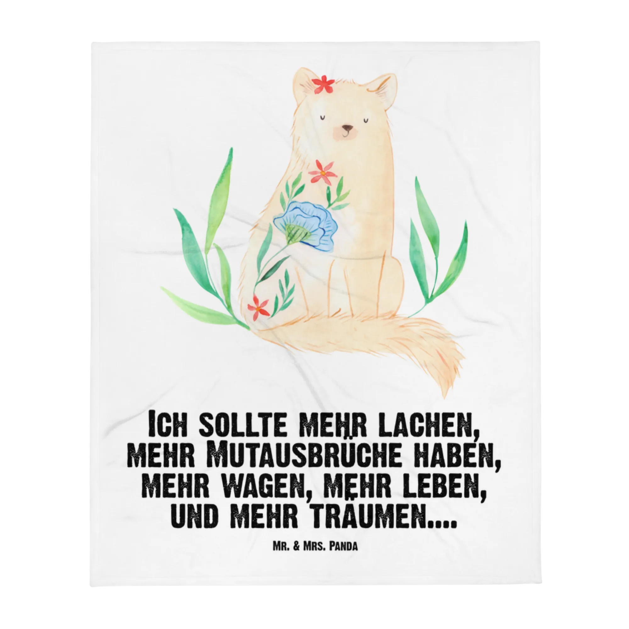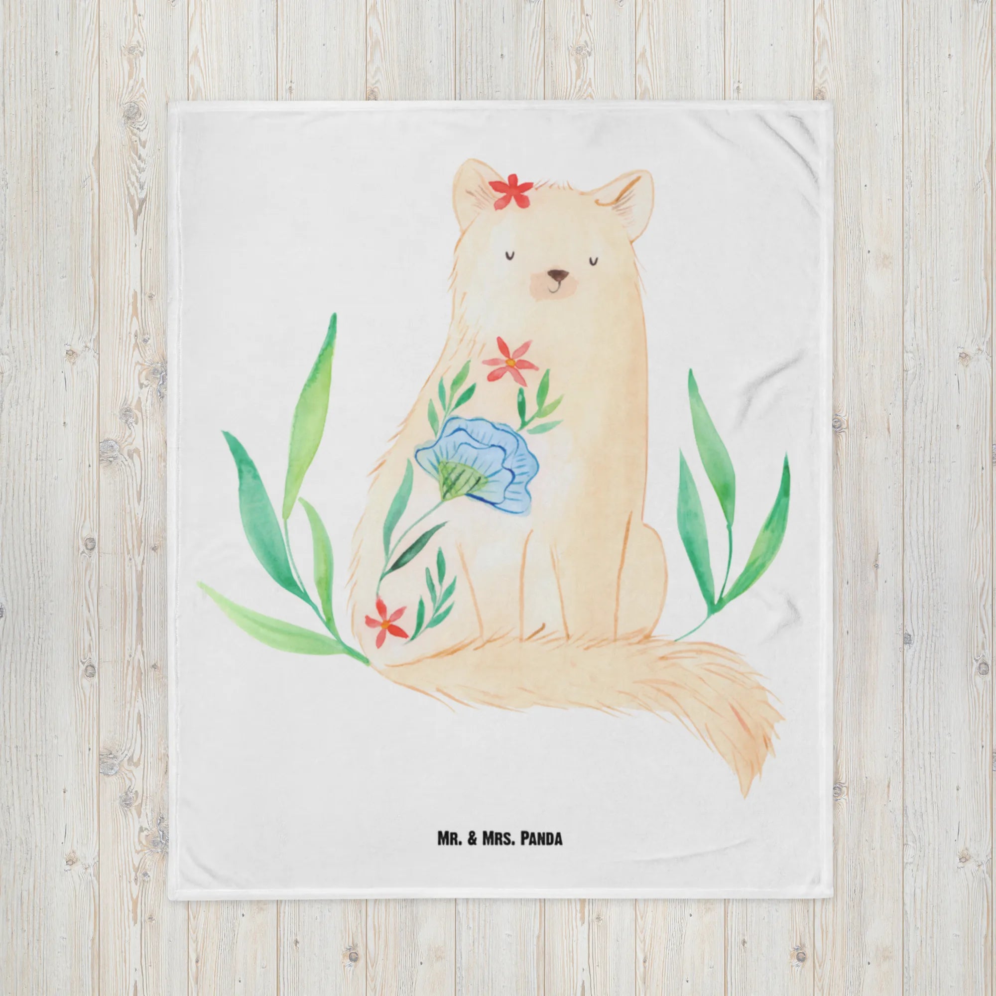 Kocyk dla niemowląt kot kwiaty - mit Spruch - biały
