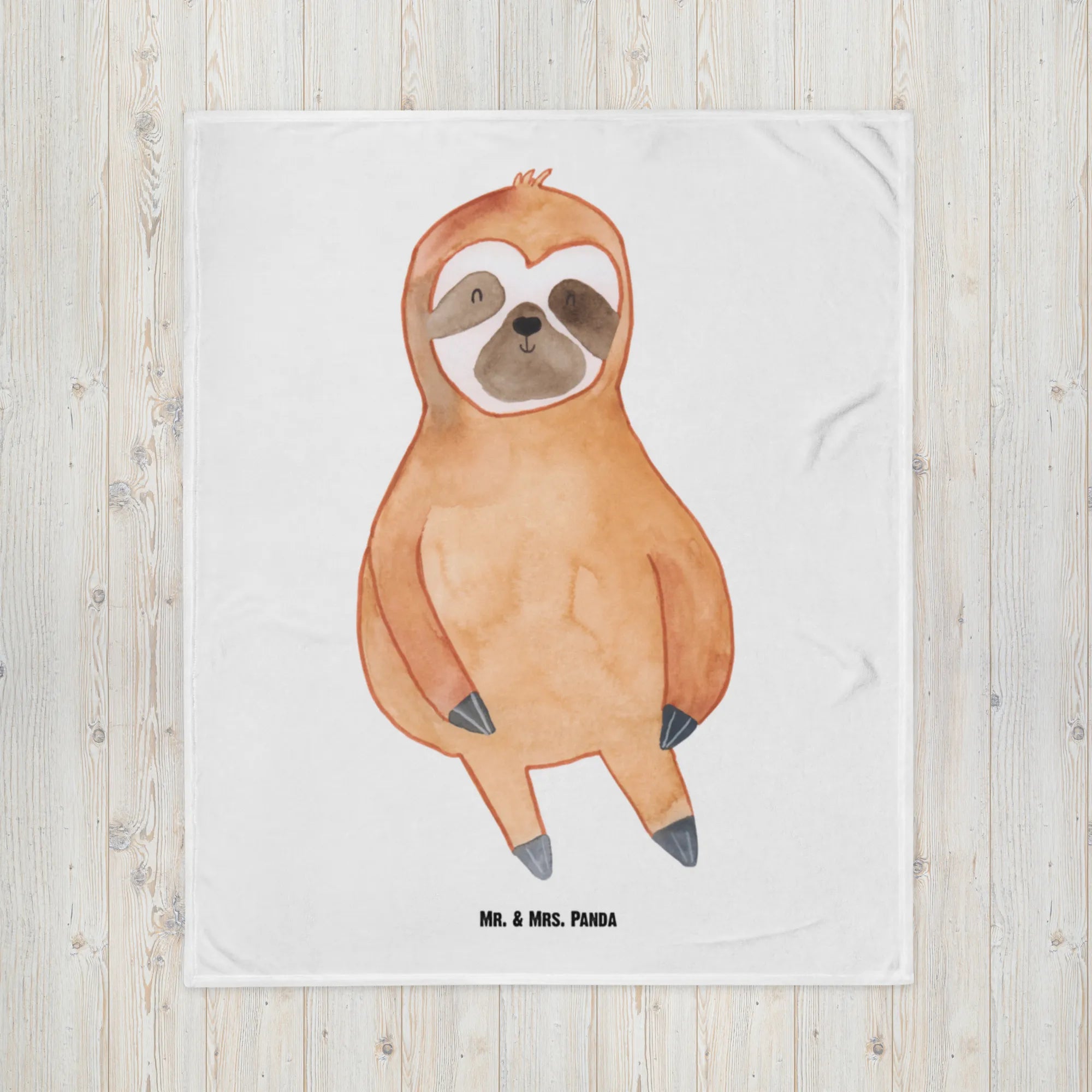 Kocyk dla niemowląt leniwiec Zadowolony - z napisem - biały
