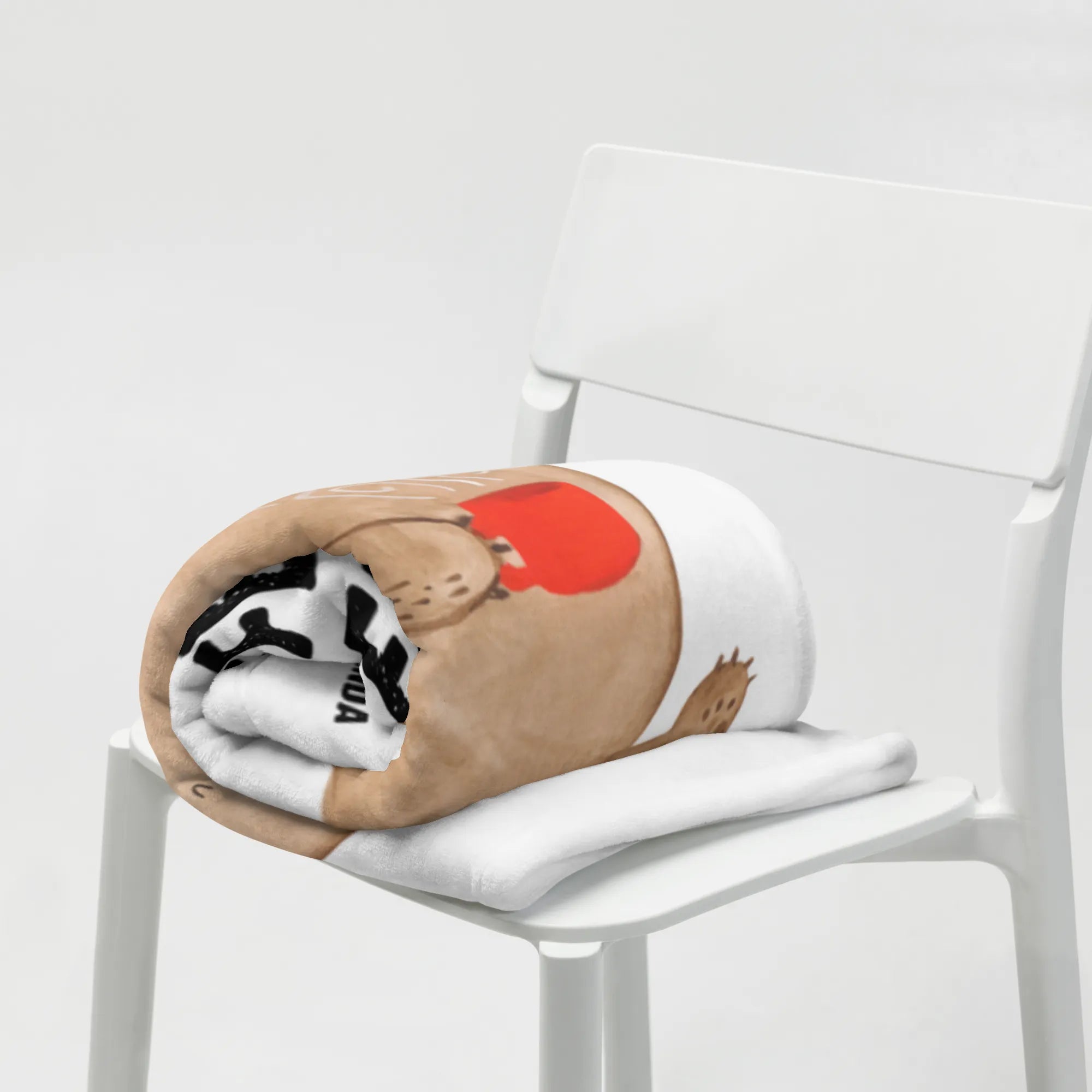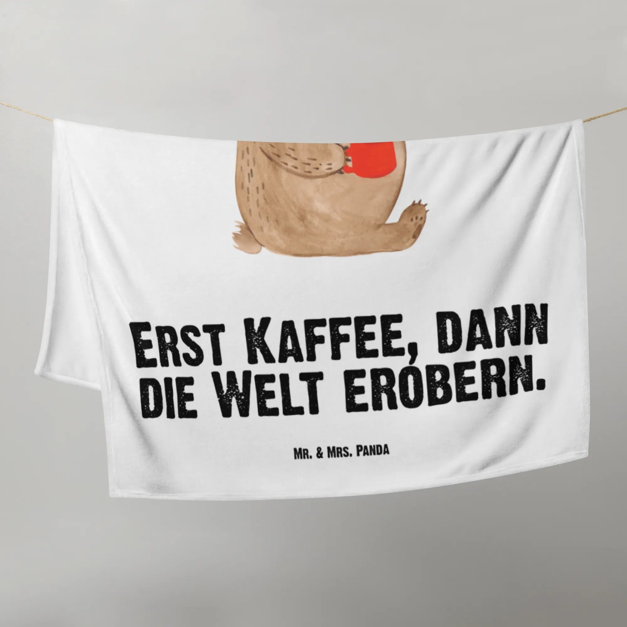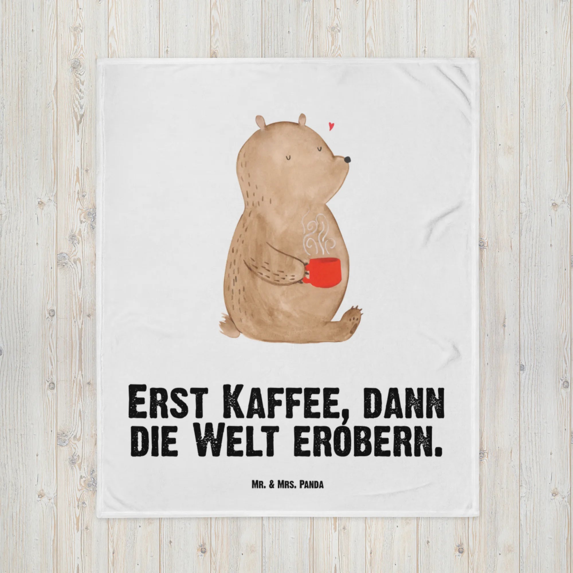 Kocyk dla niemowląt Niedźwiedź kawa - z napisem - Pastelowy niebieski