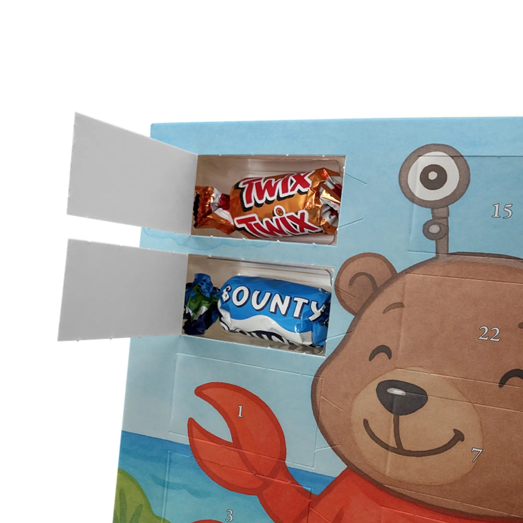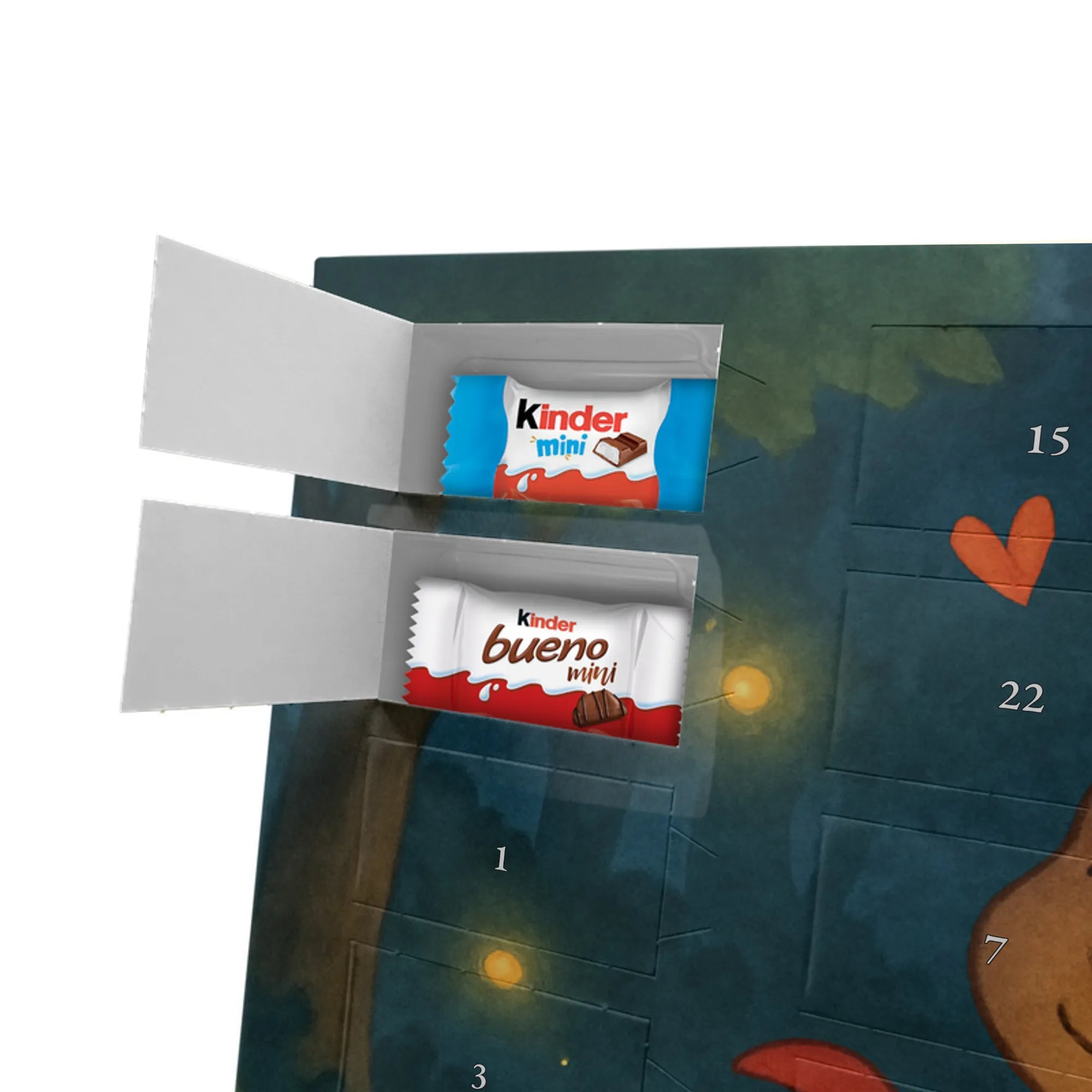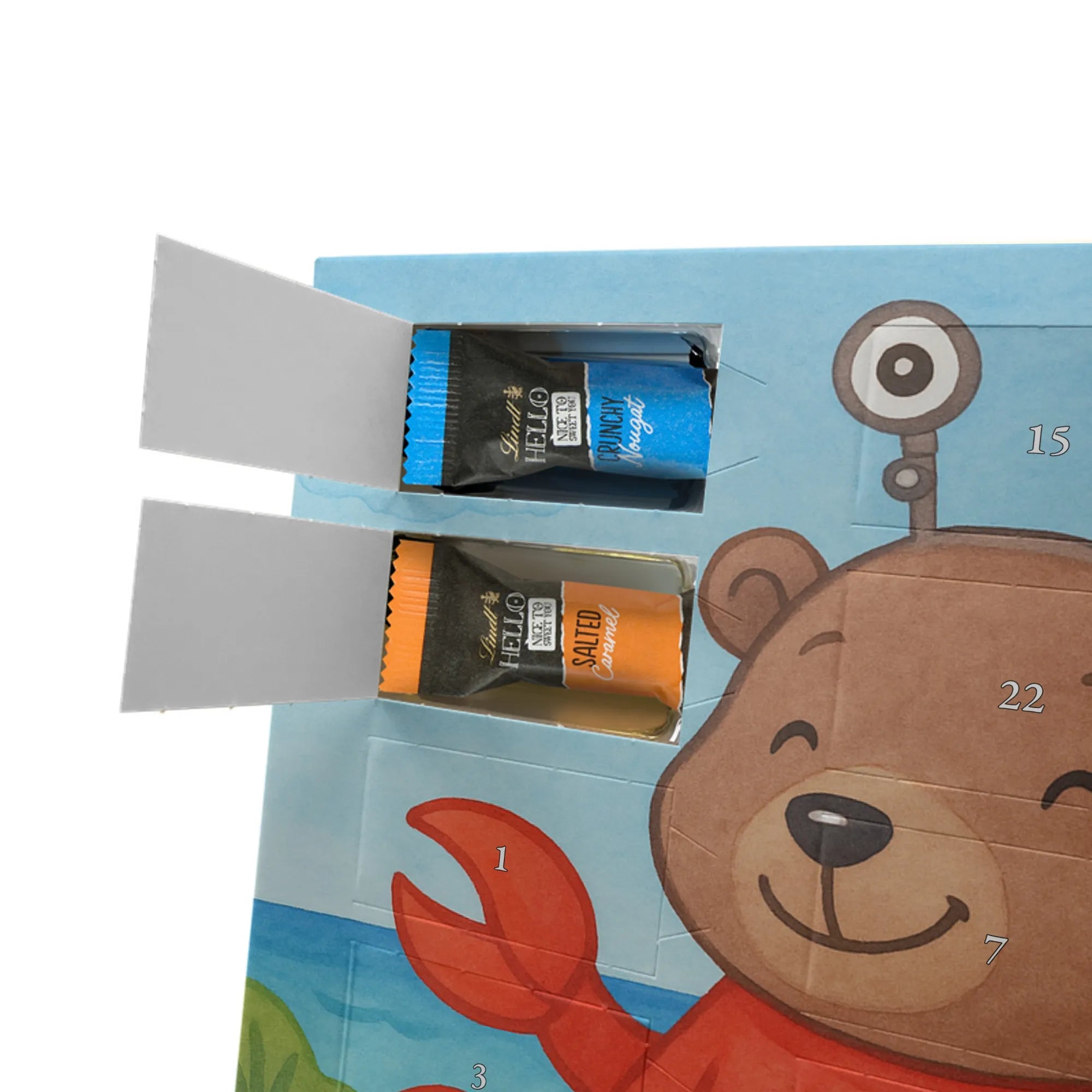 Stell Dir vor, wie jeden Adventstag ein kleines Türchen geöffnet wird und darunter ein köstlicher Ritter Sport Schokowürfel wartet. Unser Adventskalender mit Schokolade vereint liebevolle Illustration und feinen Genuss: Ein handgezeichnetes Motiv zeigt einen niedlichen Bären im roten Krebskostüm, der ein orangefarbenes Herz hält. Der sorgsam gesetzte Spruch „Krebs: Sanft wie der Mond, tief wie das Meer.“ macht diesen Weihnachtskalender Schokolade besonders persönlich.
