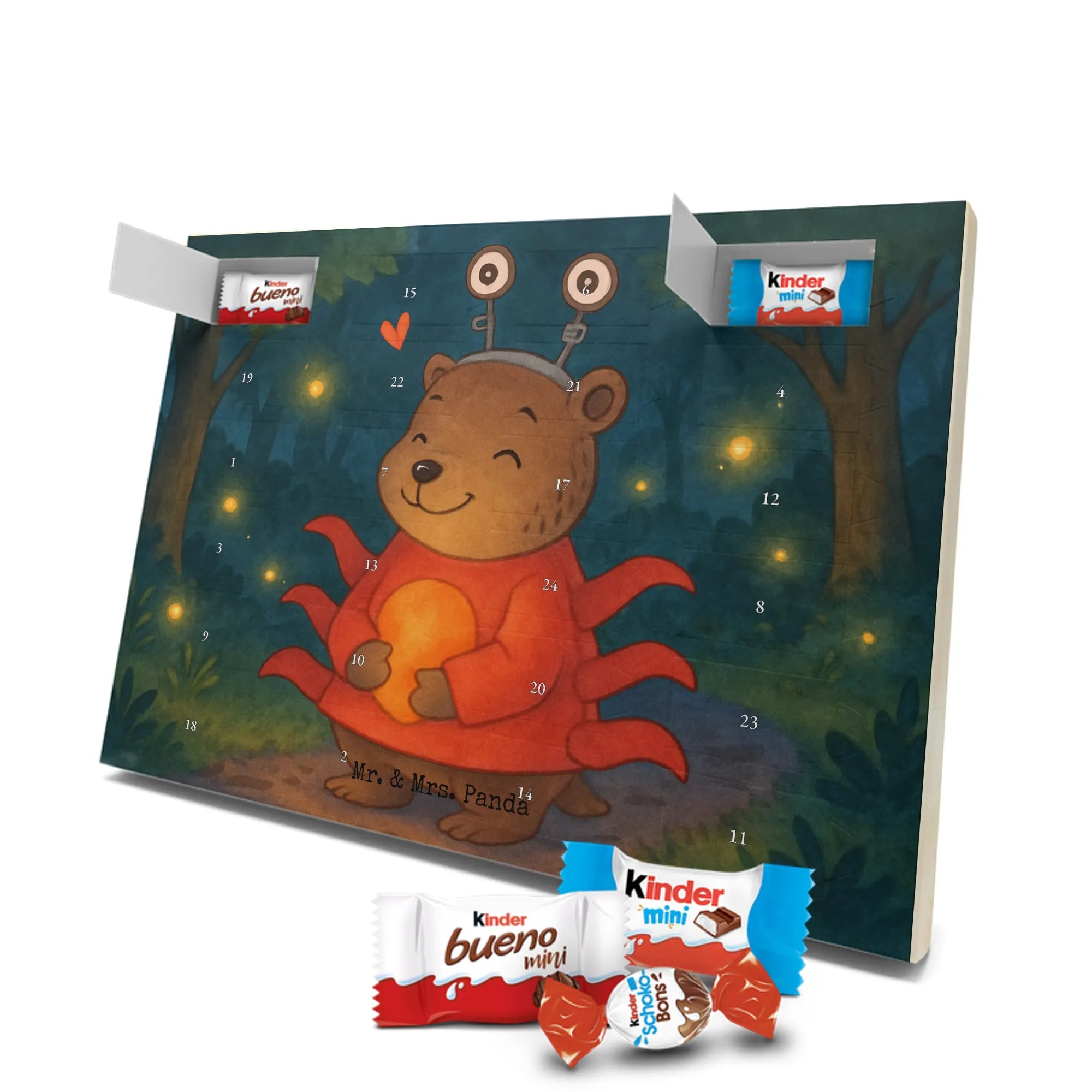 Verschenke in der Adventszeit ein Stück Sternenmagie: Unser Adventskalender aus der Sternzeichen-Kollektion von Mr. & Mrs. Panda zeigt ein liebevoll handgezeichnetes Motiv – einen niedlichen Bären im roten Krebskostüm, der ein orangefarbenes Herz hält. Der ergänzende Spruch „Krebs: Sanft wie der Mond, tief wie das Meer.“ macht das Design besonders persönlich und warm. ✨