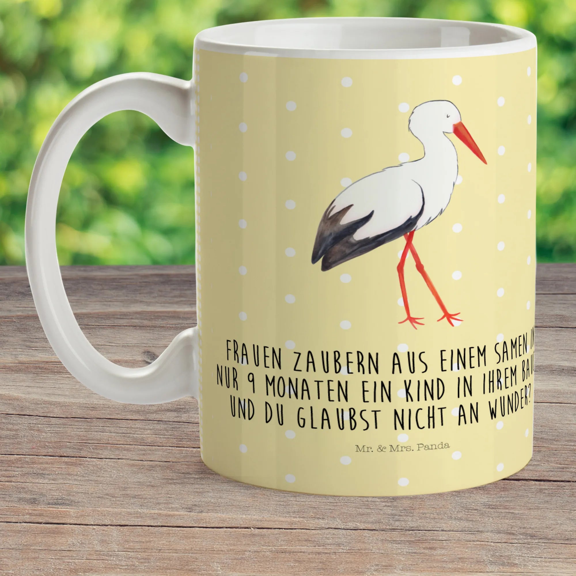 kubek dla dzieci Bocian - z napisem - Żółty Pastel