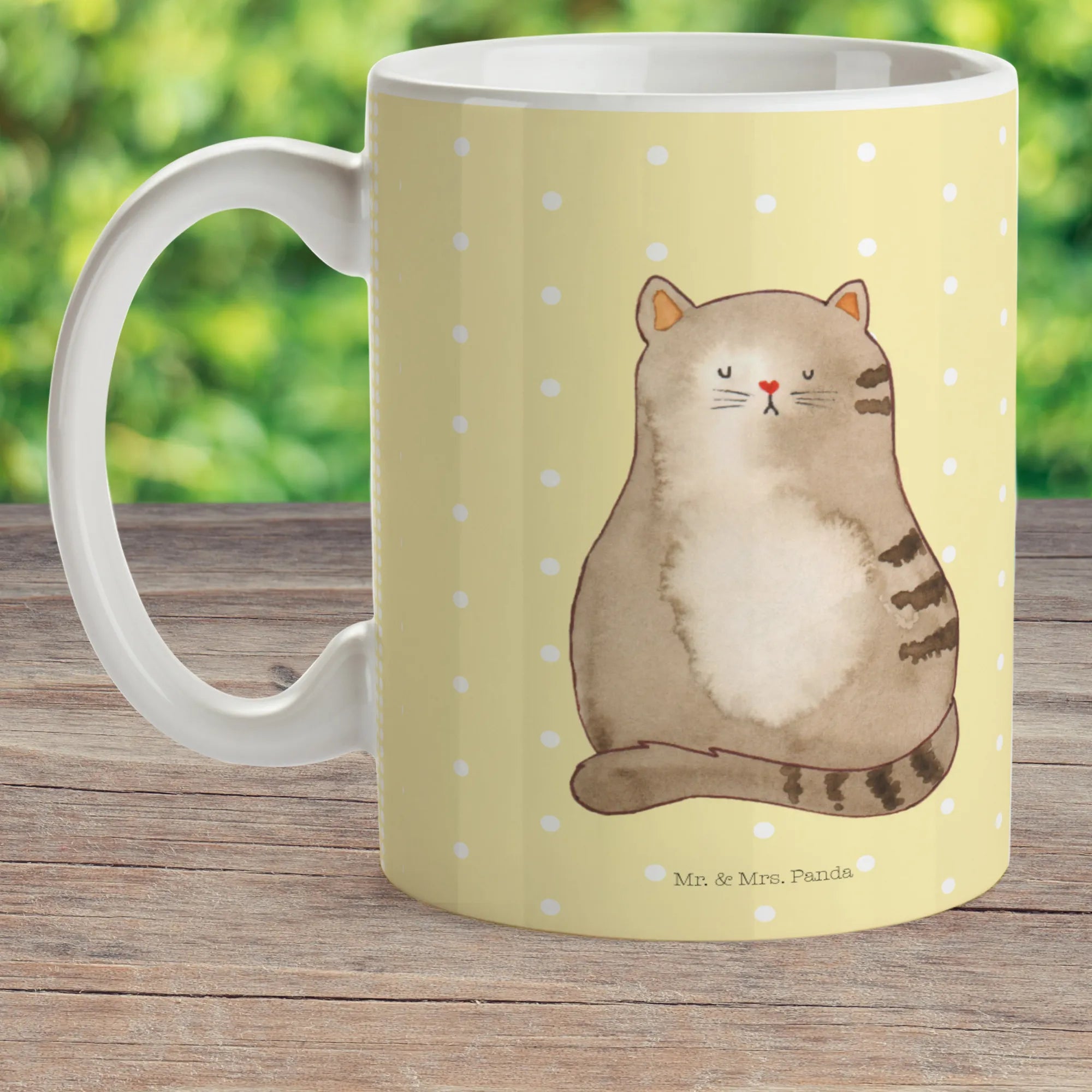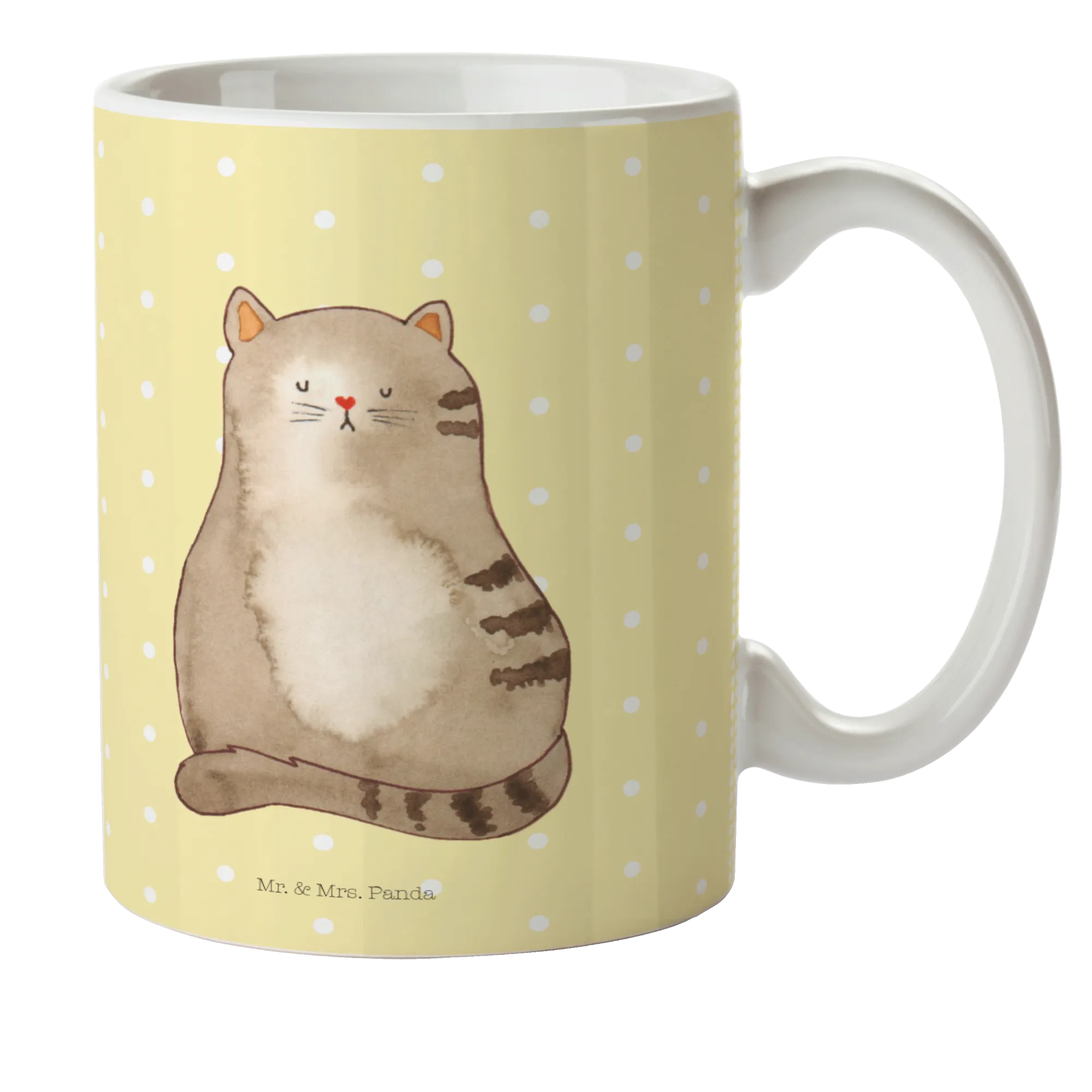 kubek dla dzieci kot siedzenie - z napisem - Pastelowy żółty