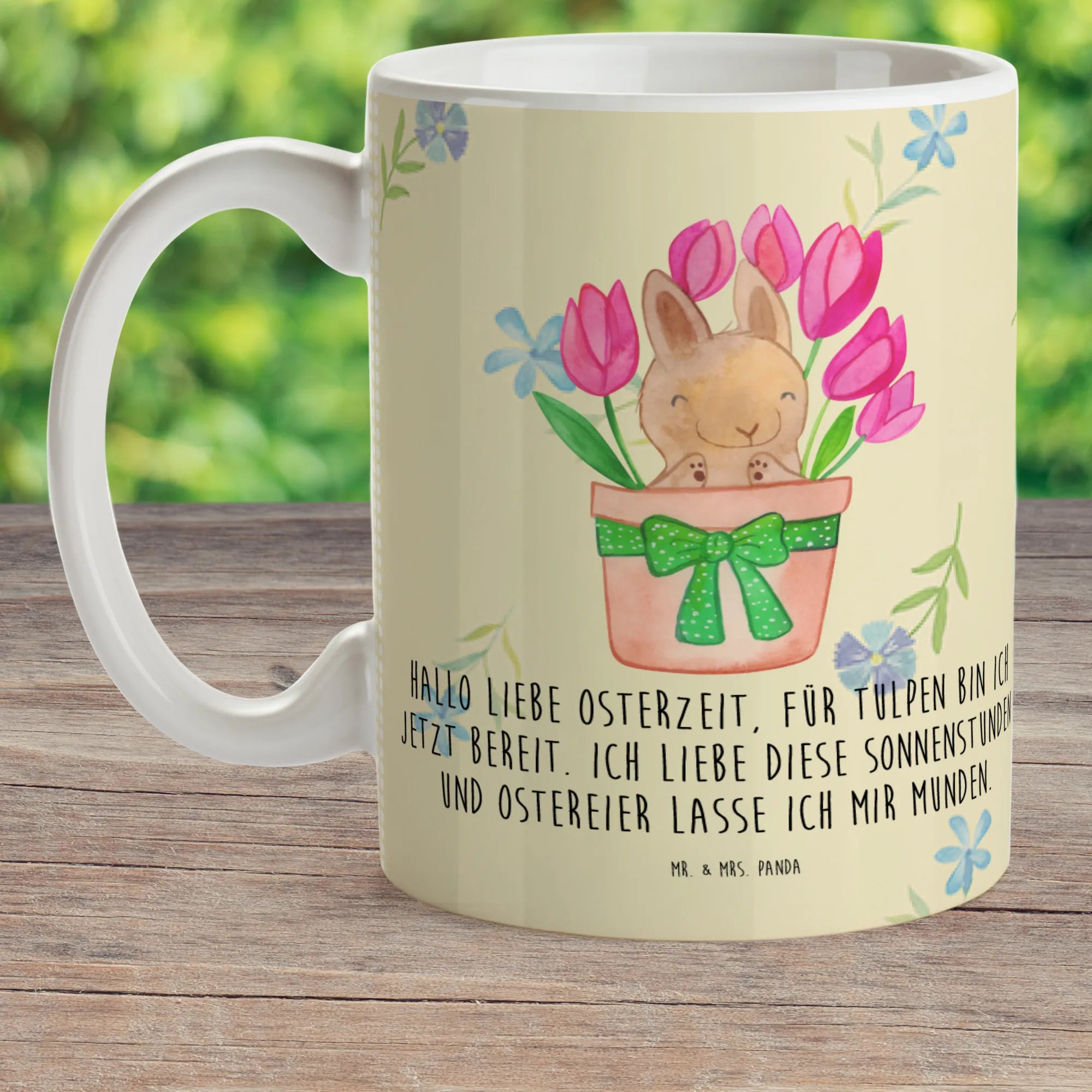 Dank des charmanten Spruchs "Hallo liebe Osterzeit, für Tulpen bin ich jetzt bereit. Ich liebe diese Sonnenstunden und Ostereier lasse ich mir munden." wird das Osterfest noch bunter und fröhlicher. Diese Tasse ist nicht nur funktional, sondern sorgt auch für gute Laune und schöne Erinnerungen, wenn die Kleinen ihre ersten eigenen Trinkbecher nutzen.