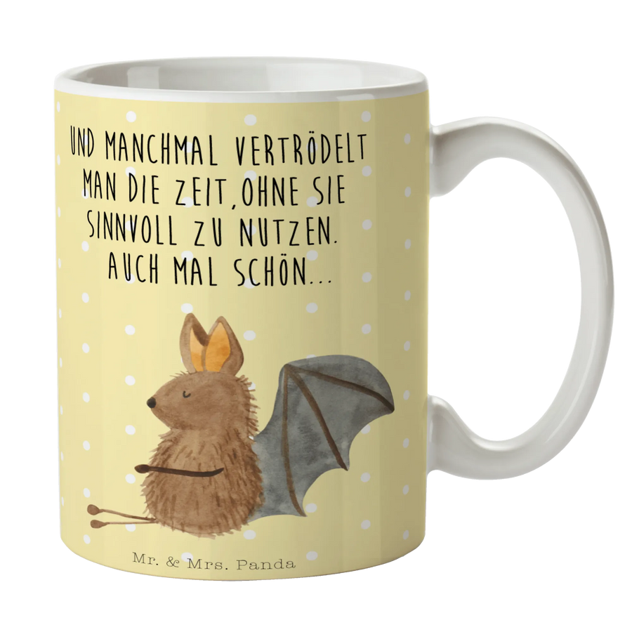 Kubek Nietoperz siedzenie - z napisem - Ceramika - Żółty Pastel