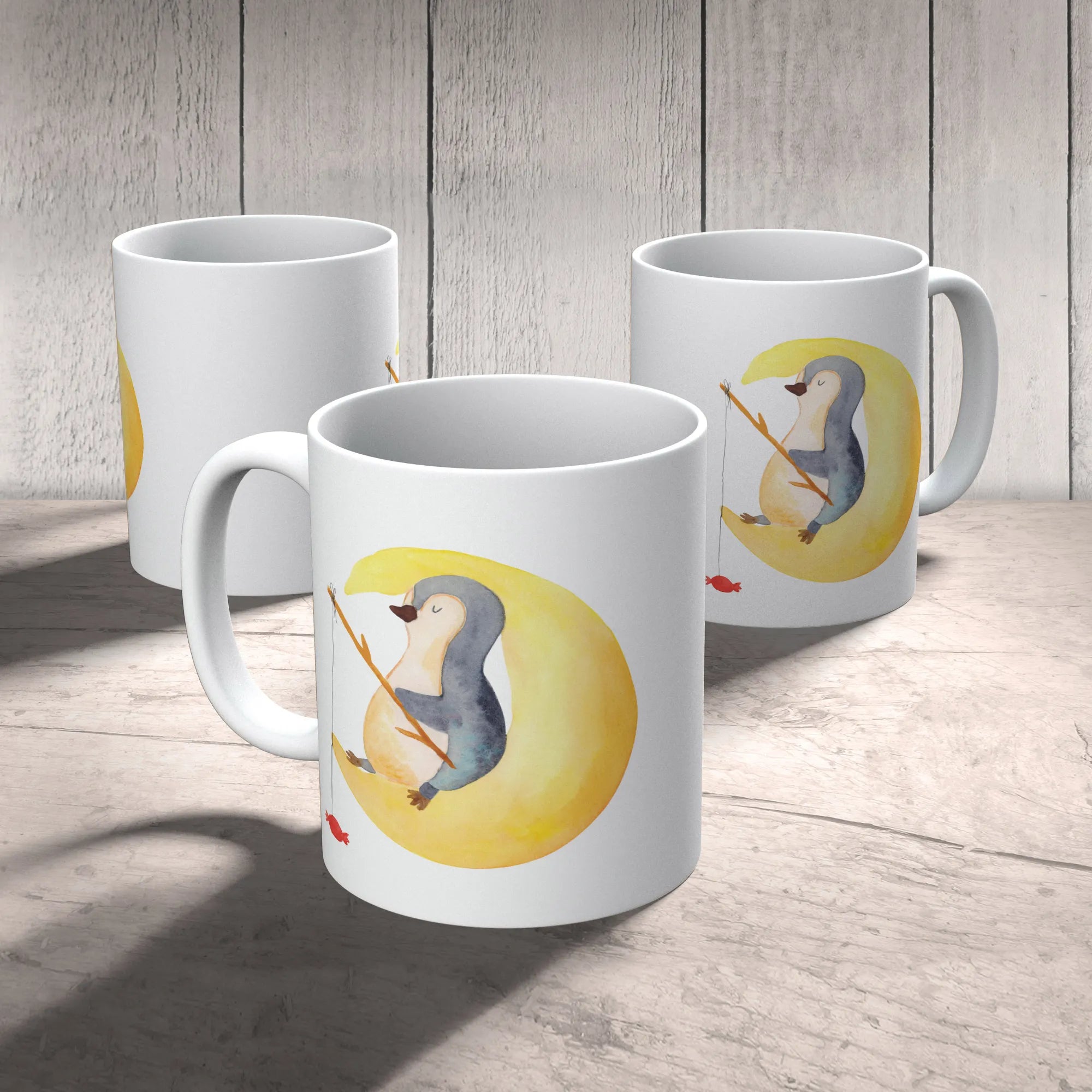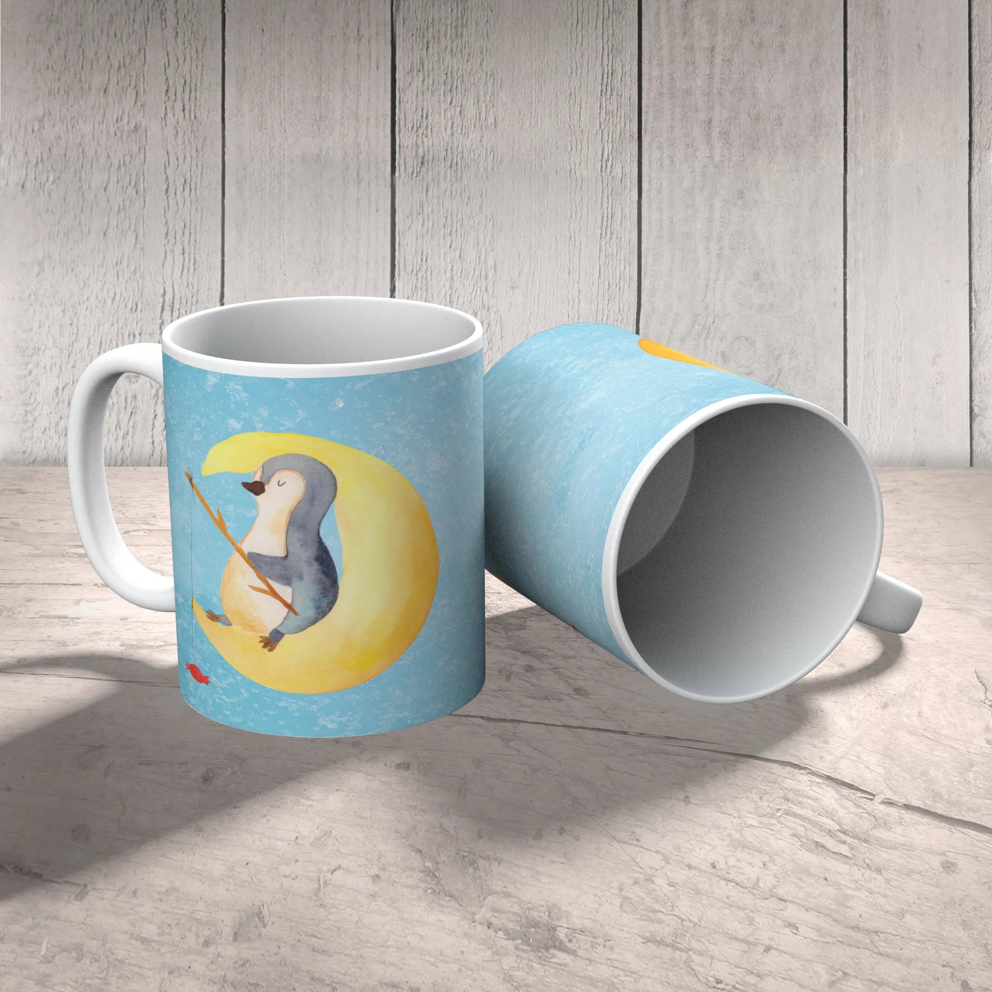 Kubek pingwin księżyc Keramiktasse, Geschenktasse, Tasse, Bürotasse, Teetasse, Tasse mit Zitaten, Tasse mit Motiven, Kaffeetasse, Porzellantasse, Pinguin, Schlafstörungen, Nachtruhe, Gästezimmer, Schlafzimmer, schlafen, Spruch, Pinguine, Einschlafen