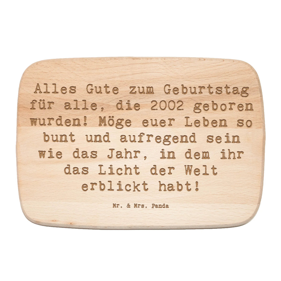 Das Frühstücksbrett '2002 Geburtstag' von Mr. & Mrs. Panda ist das perfekte Geschenk für alle, die 2002 das Licht der Welt erblickt haben! Mit unserem liebevoll gestalteten Holzbrett aus robustem Birkenholz bringst du Freude in jeden Frühstückstisch.
