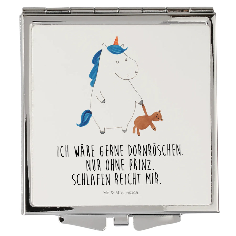 Kwadratowe lusterko do torebki Jednorożec Miś - z napisem - biały