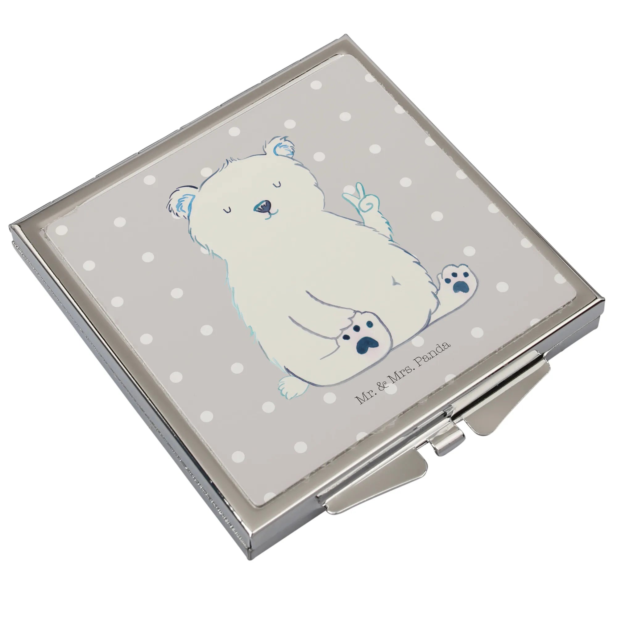 Kwadratowe lusterko do torebki Niedźwiedź polarny leniwy - z napisem - Pastelowy szary