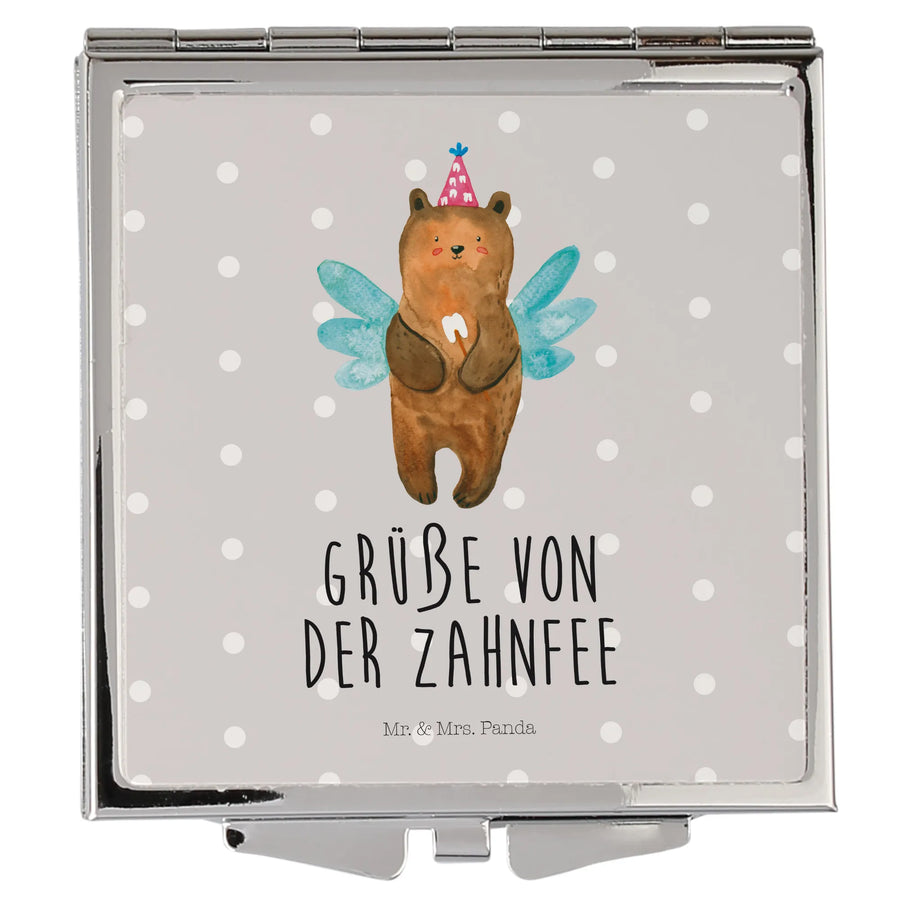 Kwadratowe lusterko do torebki niedźwiedź Wróżka zębów - z napisem - Pastelowy szary