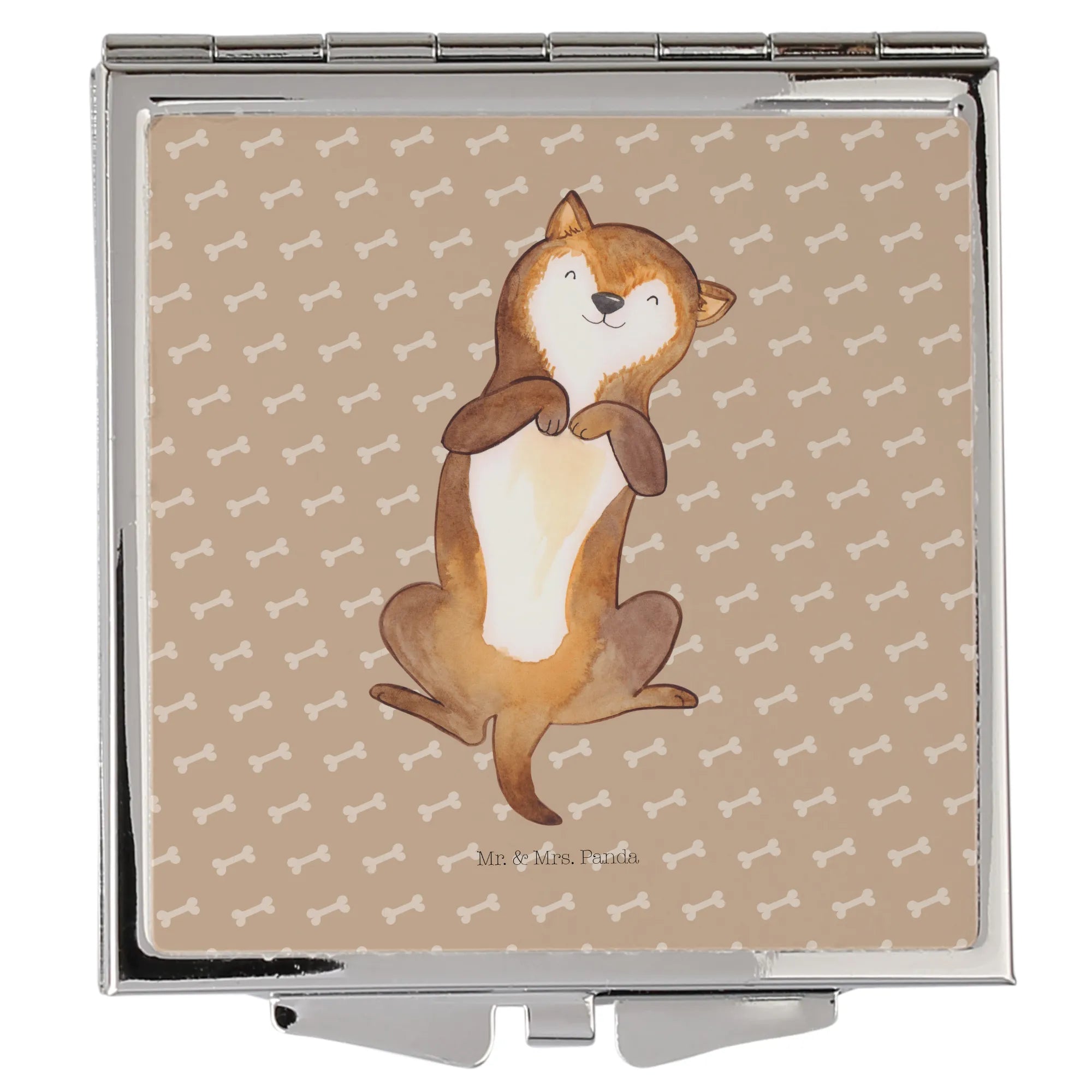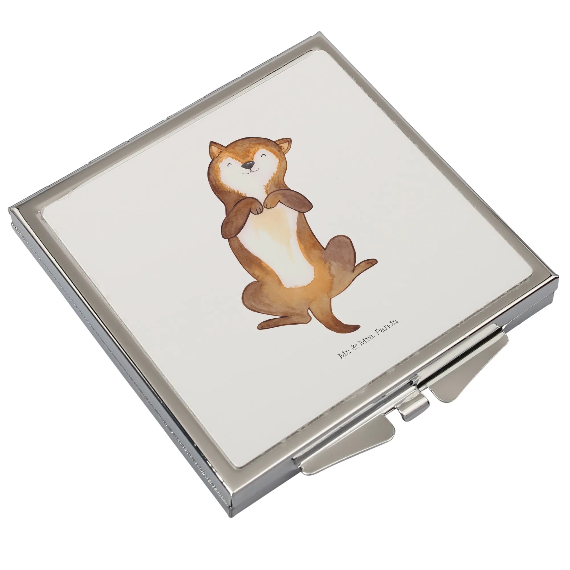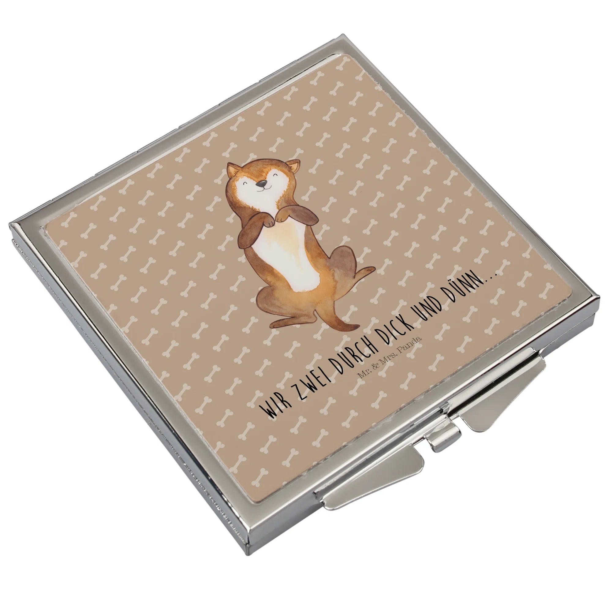 Kwadratowe lusterko do torebki pies głaskać - z napisem - Hundeglück